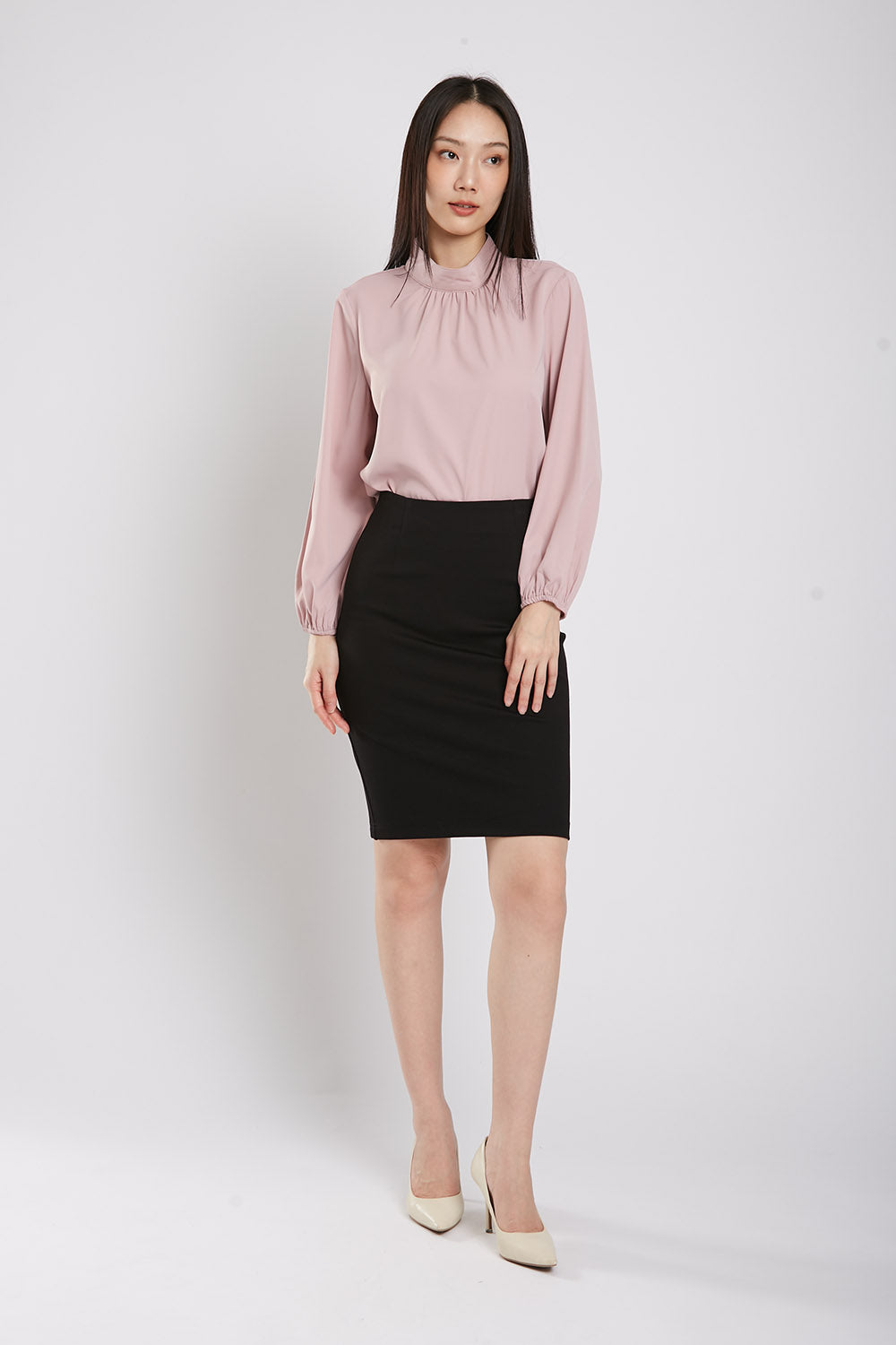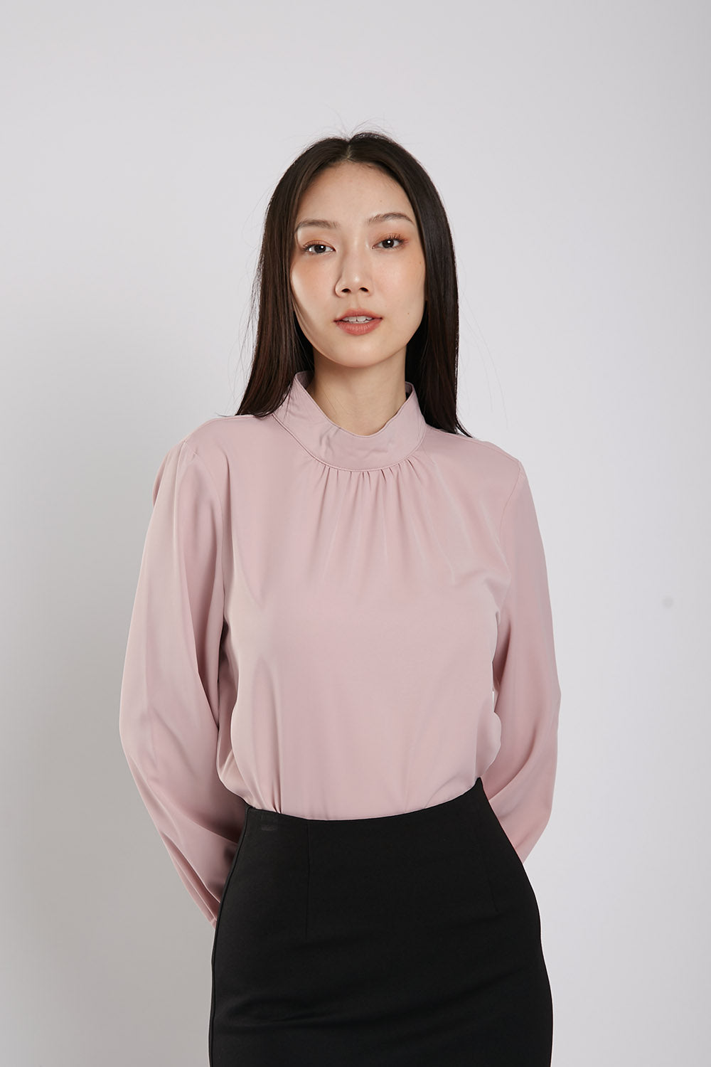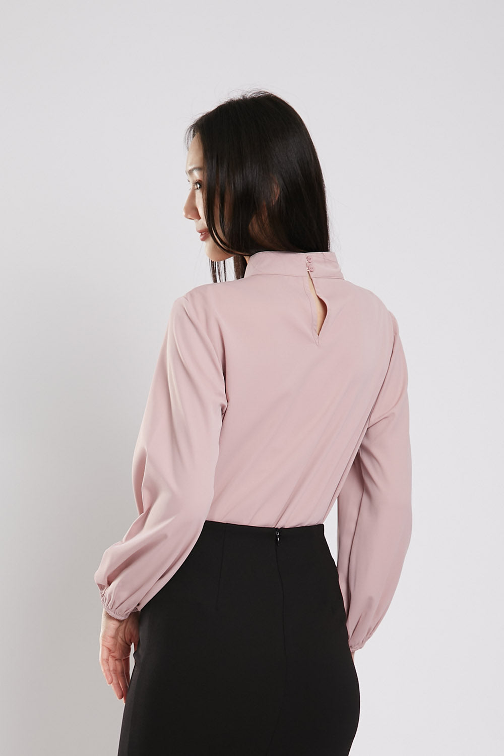 The Astie Blouse features a round neckline and long puffy sleeves with elastic cuffs for added comfort. The easy iron fabric makes for effortless maintenance while the ruched detail around the neckline adds a touch of elegance. Complete with a back button closure, this blouse is the perfect addition to any wardrobe.