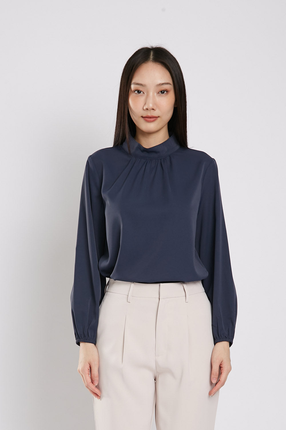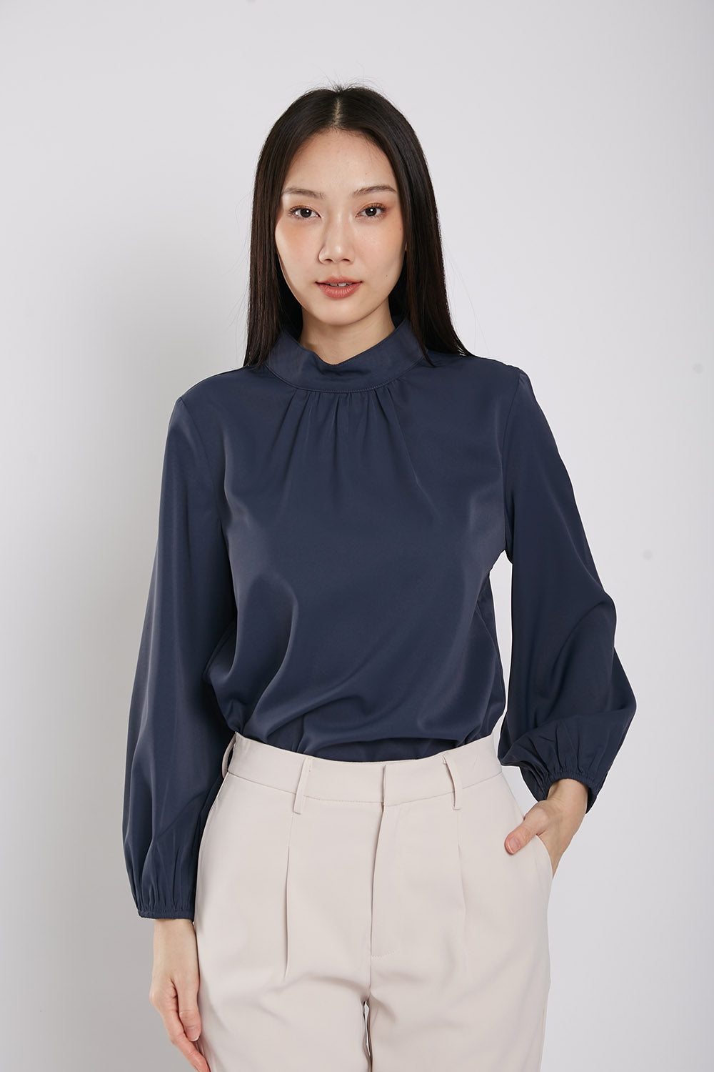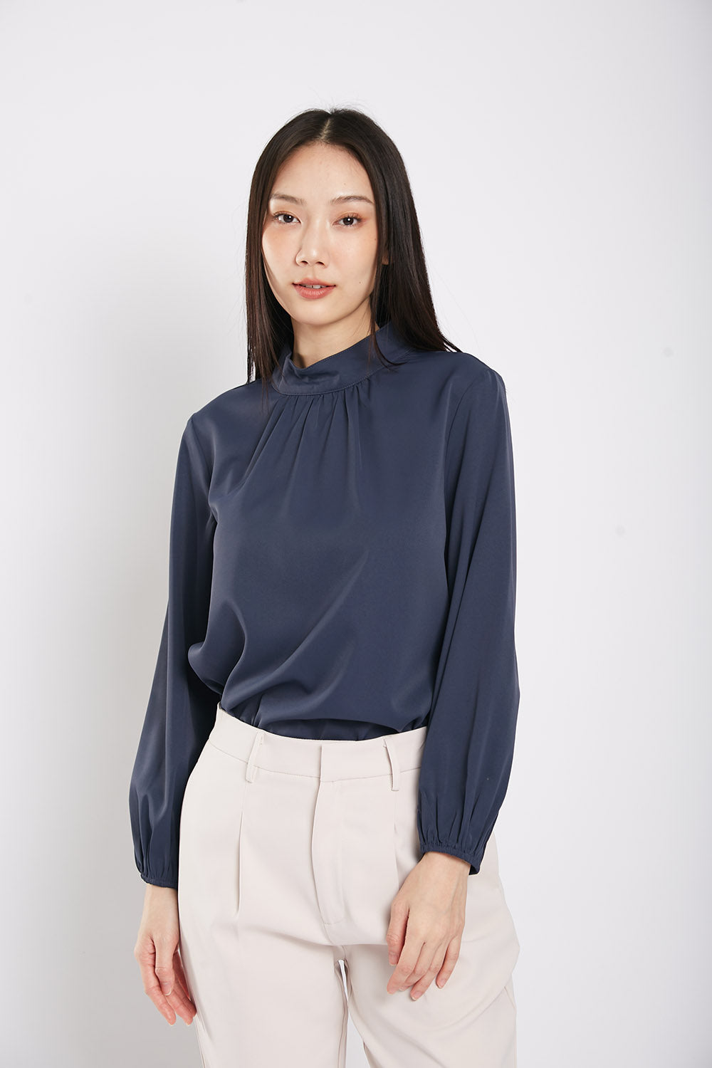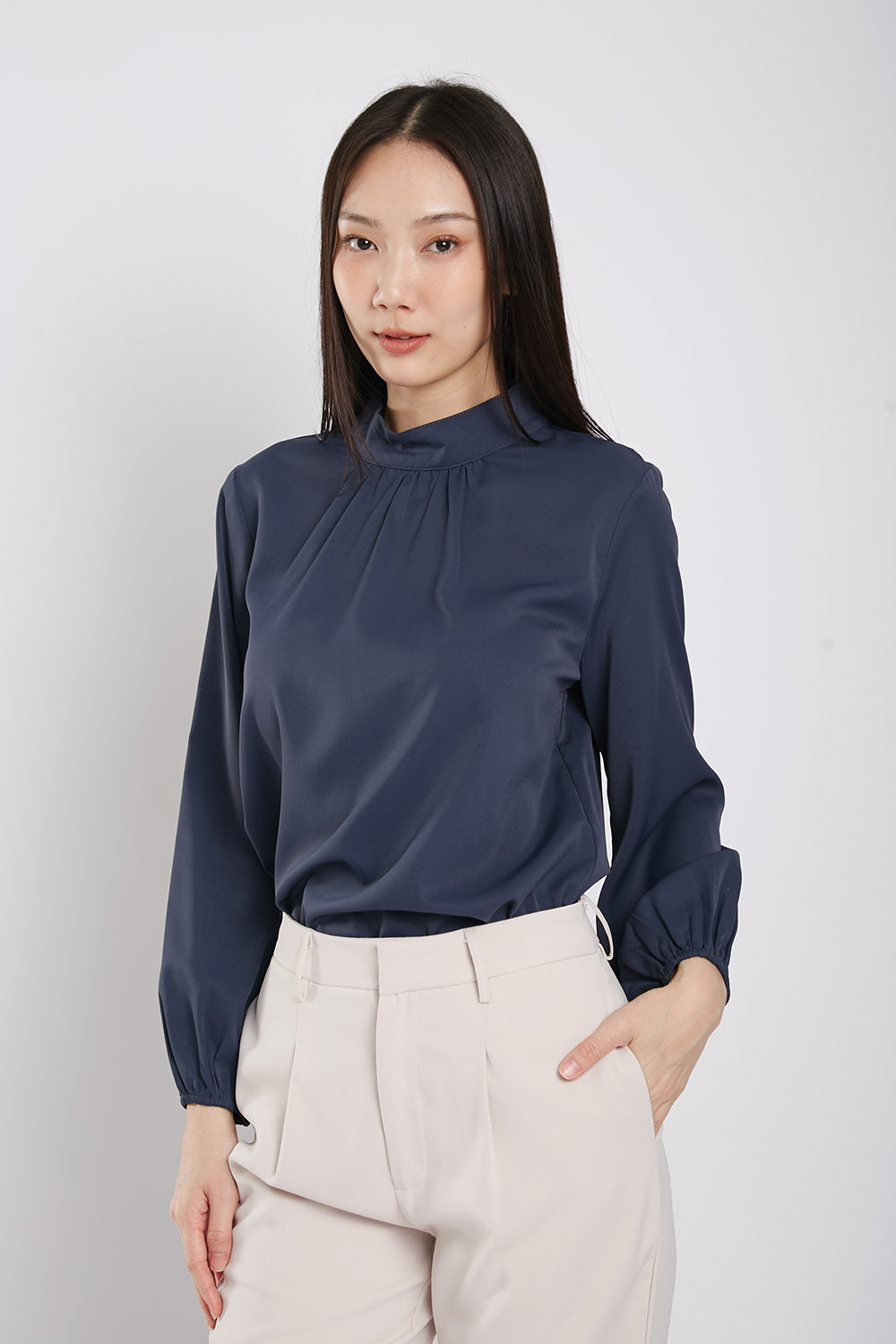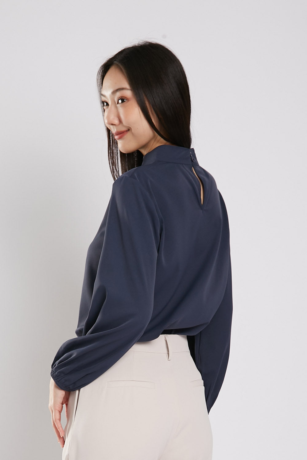 Astie Long Sleeves Blouse in Navy Blue