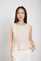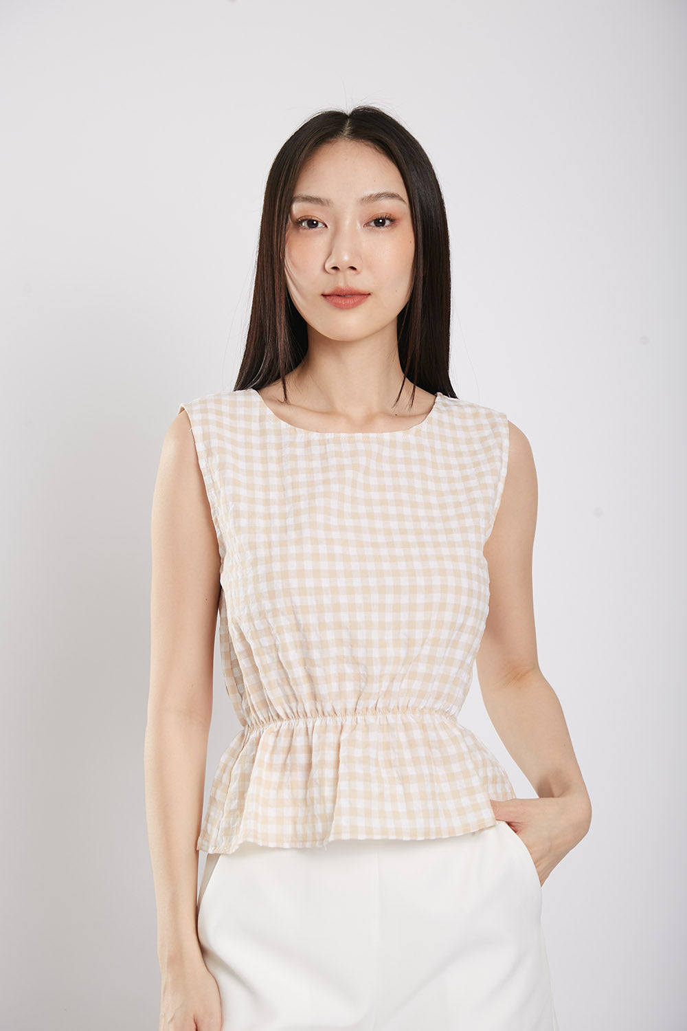 Take on the day in our Sleeveless Gingham Cotton Top! Made with lightweight cotton material, this top offers a comfortable and breathable fit. Slip it on for effortless style and conquer your day with confidence.