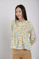 Expertly designed for comfort and style, the Raiza Blouse in Yellow Blue Floral features a convenient back button closure and slip on wear that makes dressing effortless. The elasticised wrist band ensures a perfect fit, while the front pleated detailing adds a touch of sophistication. Crafted with smooth polyester fabric, this blouse is a must-have for any fashion-forward wardrobe.