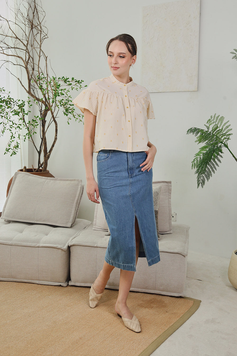 Pair it with your favourite blouses for a look that’s effortlessly chic — we especially love it with the Emari Embroidered Stripe Blouse in Honey Cream for a fresh, casual ensemble.