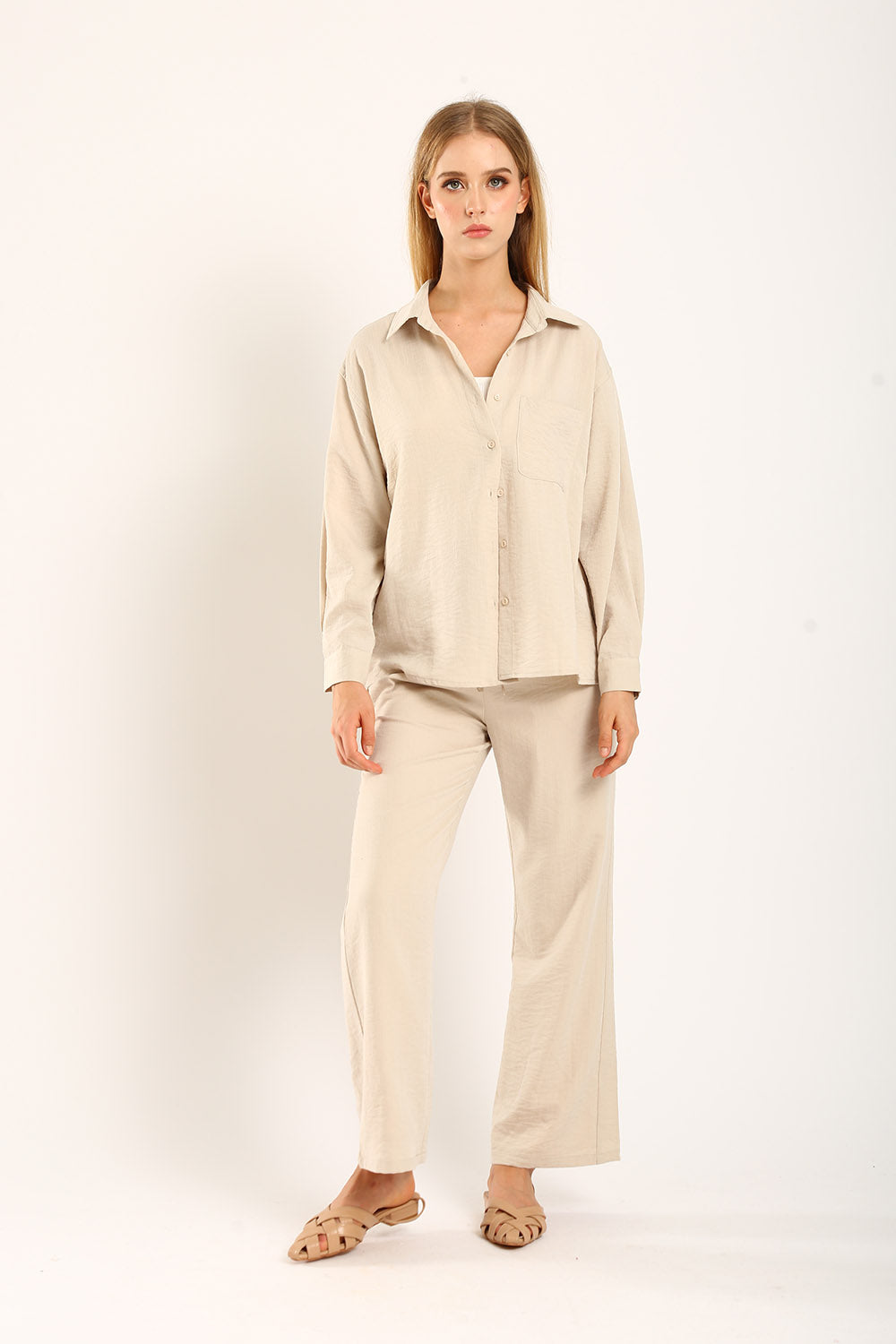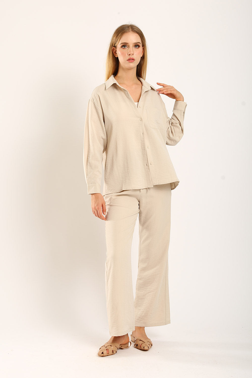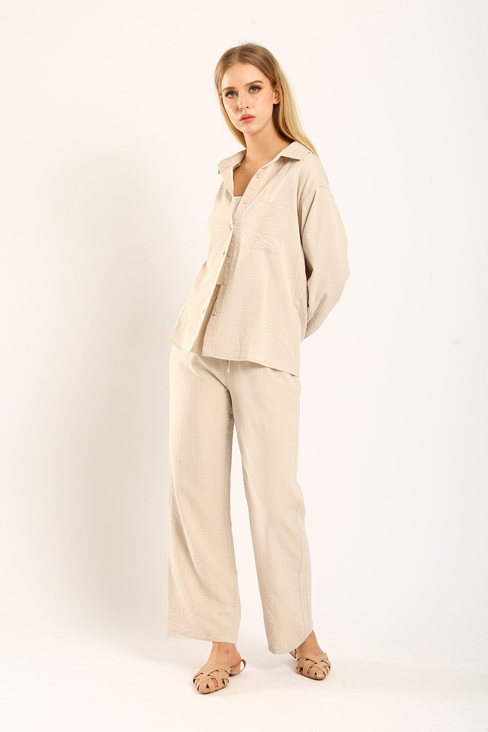 The Claudette Relaxed Tailored Pants in Khaki bring a warm, earthy tone to your wardrobe, perfect for versatile styling. Designed with a high-waist fit and delicate pleats, these pants offer a relaxed silhouette that combines elegance and comfort. Ideal for transitioning from office to weekend outings, the khaki color adds a refined touch to any outfit. Pair with a neutral top for a sophisticated look or a pop of color for a bolder statement. Experience timeless style with these essential trousers, crafted for the modern individual.