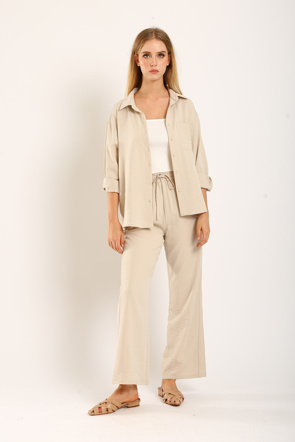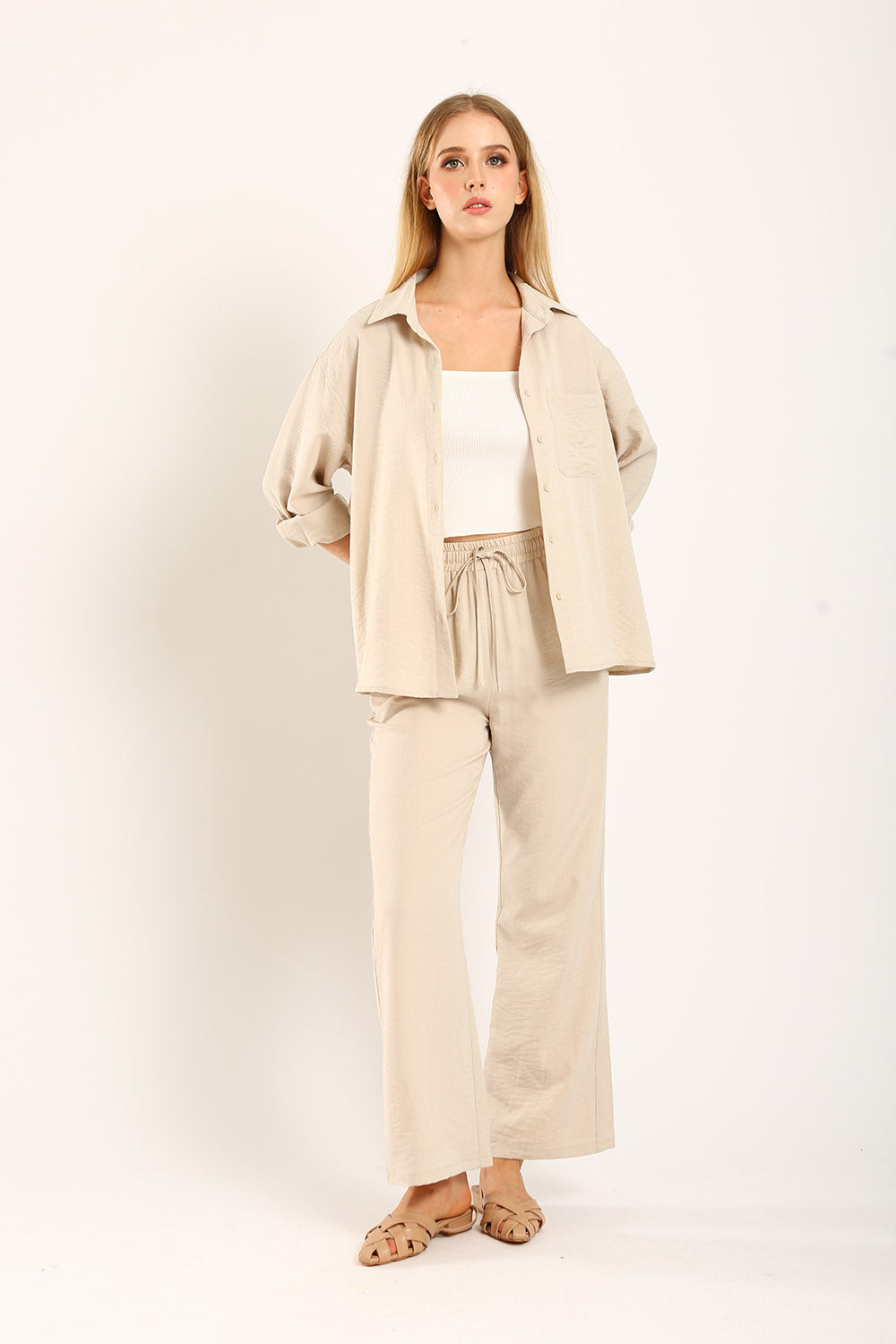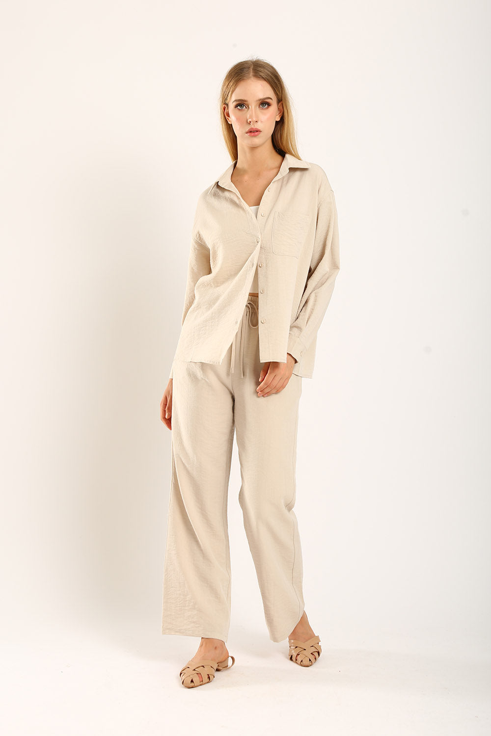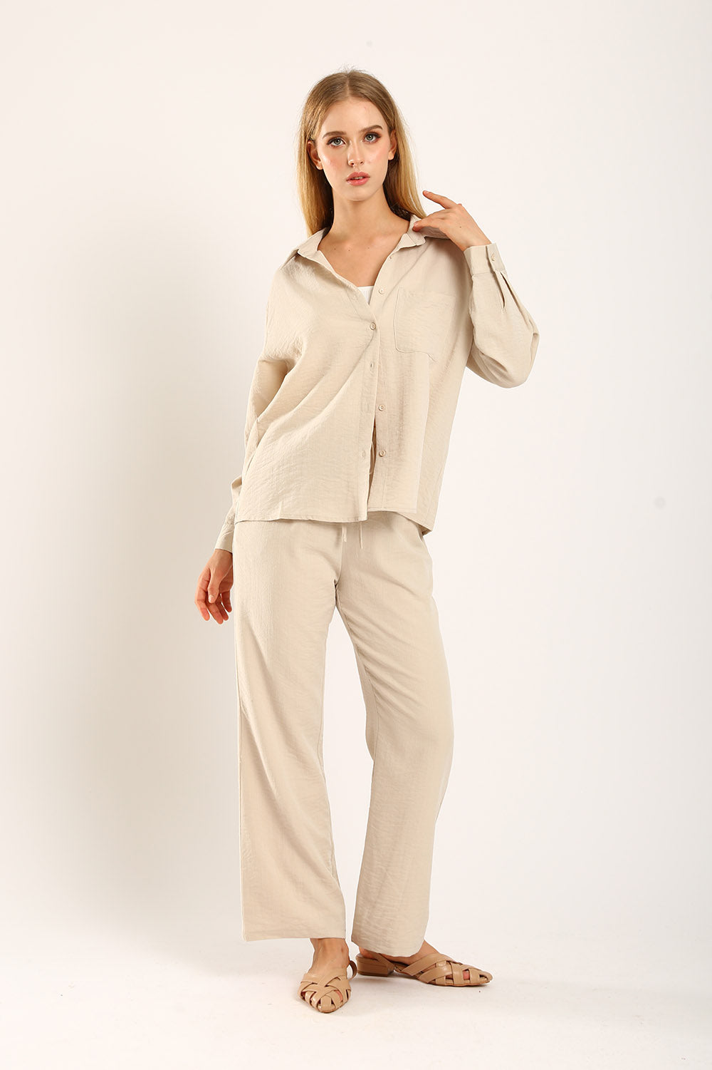 The Claudette Relaxed Tailored Pants in Khaki bring a warm, earthy tone to your wardrobe, perfect for versatile styling. Designed with a high-waist fit and delicate pleats, these pants offer a relaxed silhouette that combines elegance and comfort. Ideal for transitioning from office to weekend outings, the khaki color adds a refined touch to any outfit. Pair with a neutral top for a sophisticated look or a pop of color for a bolder statement. Experience timeless style with these essential trousers, crafted for the modern individual.