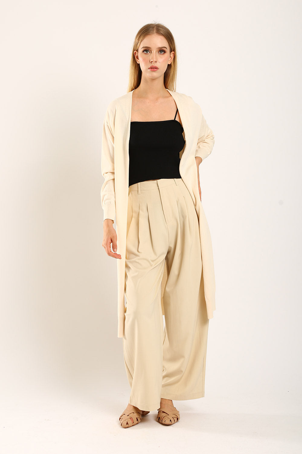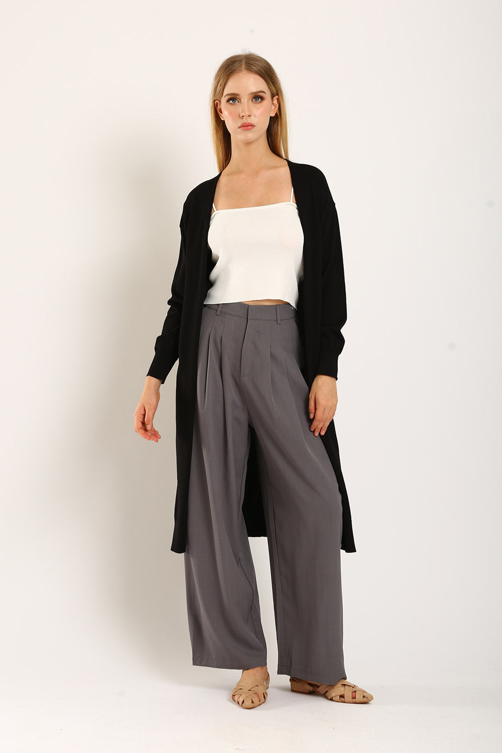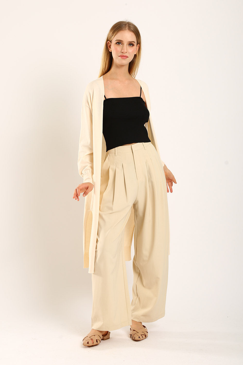 Add a layer of sophistication to your wardrobe with the Tonie Long Knit Cardigan. Crafted from a lightweight yet cozy knit fabric, this versatile piece features a sleek, open-front design that effortlessly drapes over any outfit. The longline silhouette and subtle side slits provide a modern, elongating effect, making it perfect for both casual and semi-formal looks. Whether paired with wide-leg trousers for an elevated ensemble or layered over a casual top and jeans for relaxed days, the Tonie Cardigan is your go-to for timeless style and comfort.