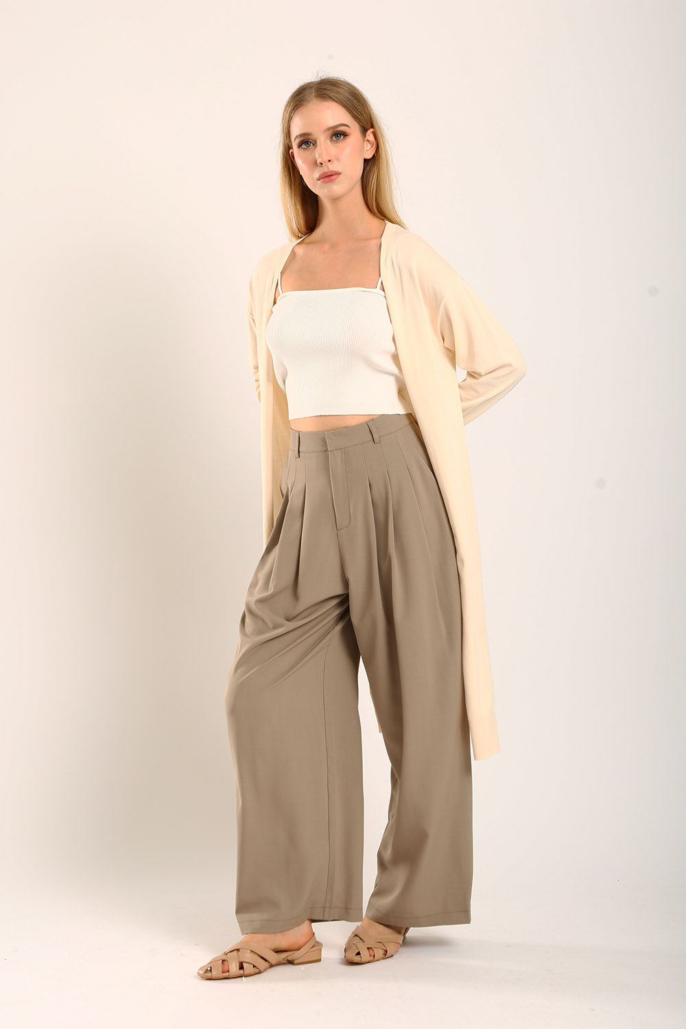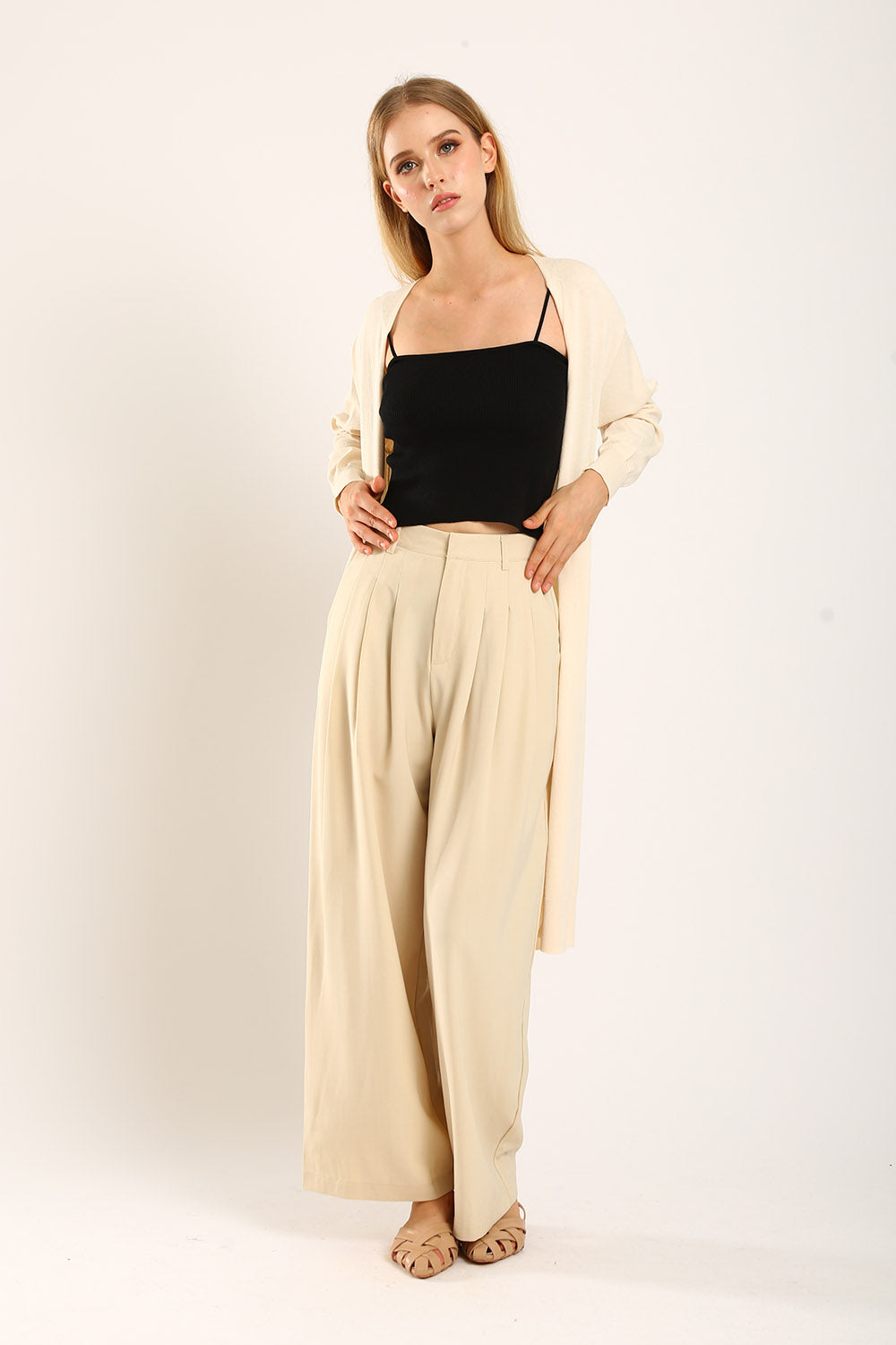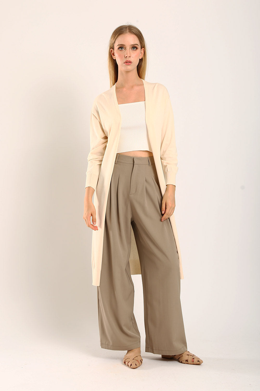 Add a layer of sophistication to your wardrobe with the Tonie Long Knit Cardigan. Crafted from a lightweight yet cozy knit fabric, this versatile piece features a sleek, open-front design that effortlessly drapes over any outfit. The longline silhouette and subtle side slits provide a modern, elongating effect, making it perfect for both casual and semi-formal looks. Whether paired with wide-leg trousers for an elevated ensemble or layered over a casual top and jeans for relaxed days, the Tonie Cardigan is your go-to for timeless style and comfort.
