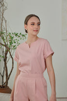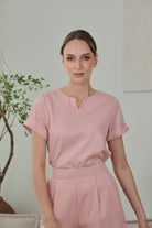 Lumi Notched Relaxed Fit Top in Blush Rose