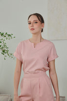 Effortlessly elevated. The Lumi Top features a modern notched neckline and relaxed silhouette, making it the perfect go-to for smart casual days. Crafted in a blush rose, it's versatile enough for both work and weekend plans.