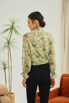 Fresh and refined, the Aureline Tie-Neck Blouse in Moss Green Floral offers a timeless silhouette with a contemporary twist. Designed with billowy sleeves, smocked cuffs, and a tie-neck detail, it embodies effortless sophistication. The moss green floral print with golden threads adds a touch of subtle glamour while staying versatile for every occasion.