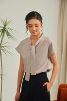Refined and versatile, the Graciela Blouse is crafted from premium lightweight fabric in a soft slate grey tone. Designed with a detachable sash that can be styled as a tie or removed for a minimalist look, this blouse offers endless styling possibilities for both work and weekend. Featuring a relaxed fit with short sleeves and a clean collar, it embodies effortless sophistication while ensuring all-day comfort.