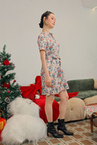 Lainey Floral Print Midi Dress in Ivory Multi