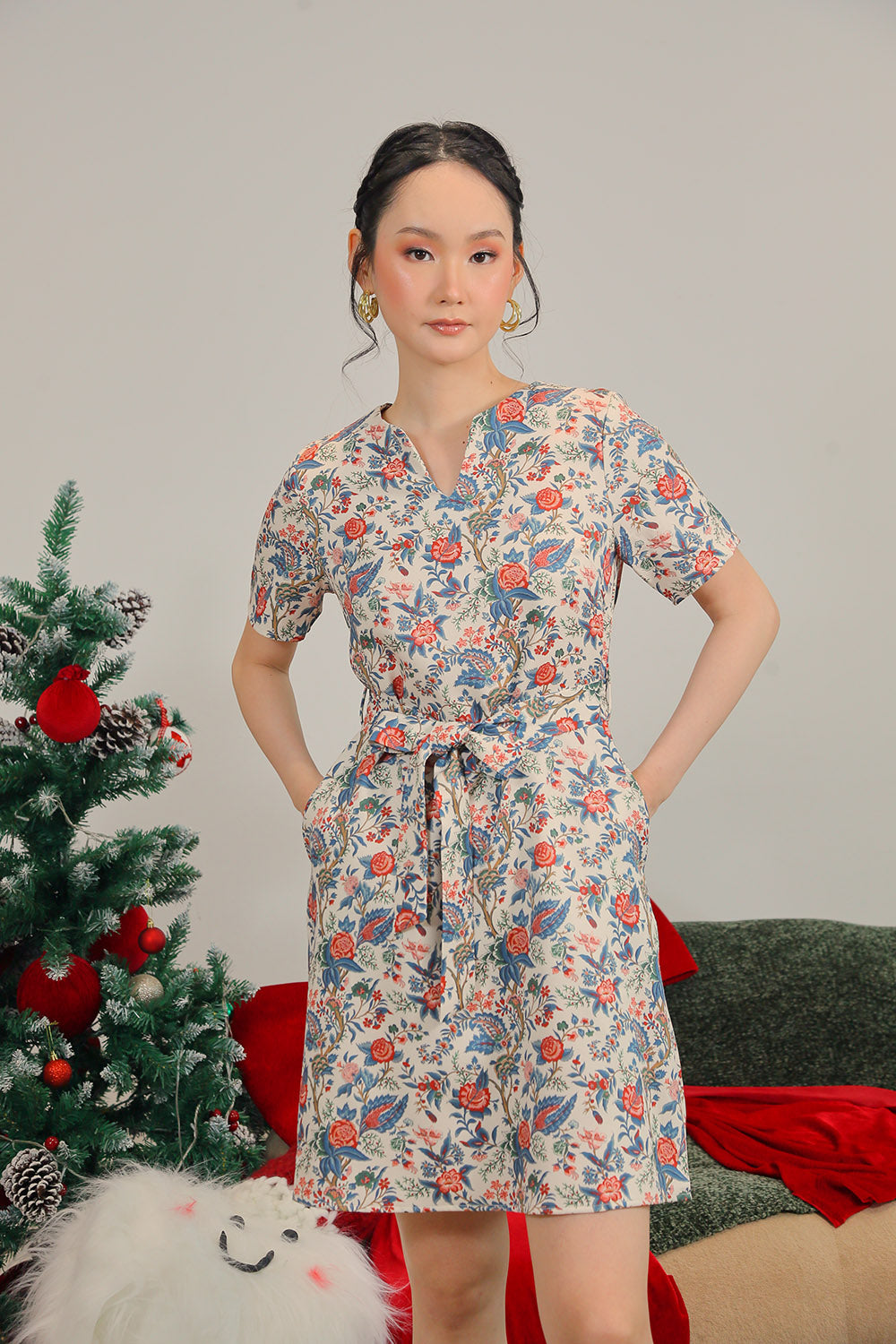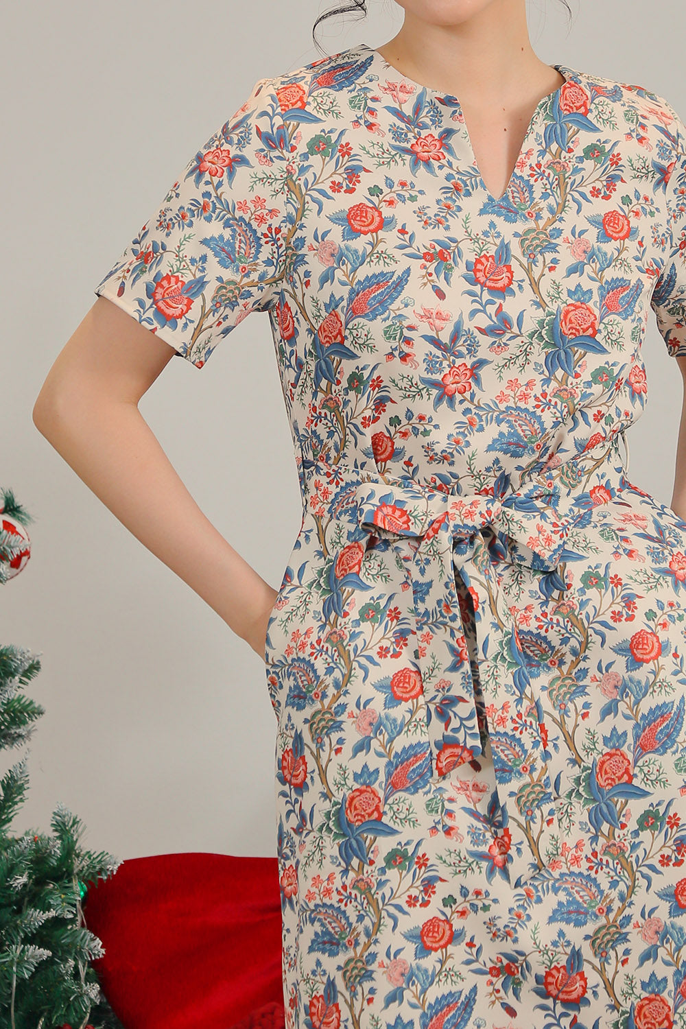 A matching detachable sash allows you to define the waist for a flattering shape, while functional side pockets add everyday practicality. Crafted from a breathable cotton-blend fabric and fully lined, Lainey ensures all-day comfort without compromising style.
