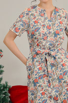 The Lainey Floral Print Midi Dress brings effortless femininity to every occasion, featuring a charming ivory base adorned with vibrant floral motifs. Designed with a soft V-notch neckline, short sleeves, and a gently tailored silhouette, it strikes the perfect balance between comfort and elegance.