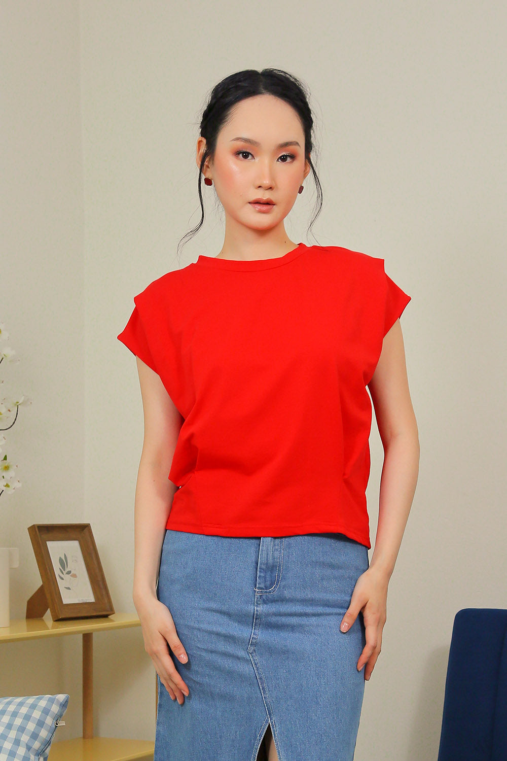 Lyra Relaxed Shoulder Tee in Crimson Red