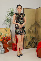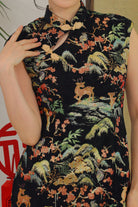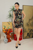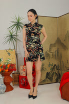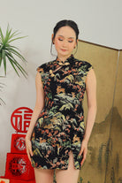 Marcelline Brocade Cheongsam Dress in Black Scenic
