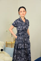 Crafted from 100% breathable cotton, this piece offers a soft yet structured feel that keeps you comfortable throughout the day. The classic shirt collar and front button detailing create a refined, smart-casual look, while the adjustable waist tie beautifully defines the waist. The tiered midi skirt flows gracefully with every step, giving it feminine movement without compromising on sophistication.