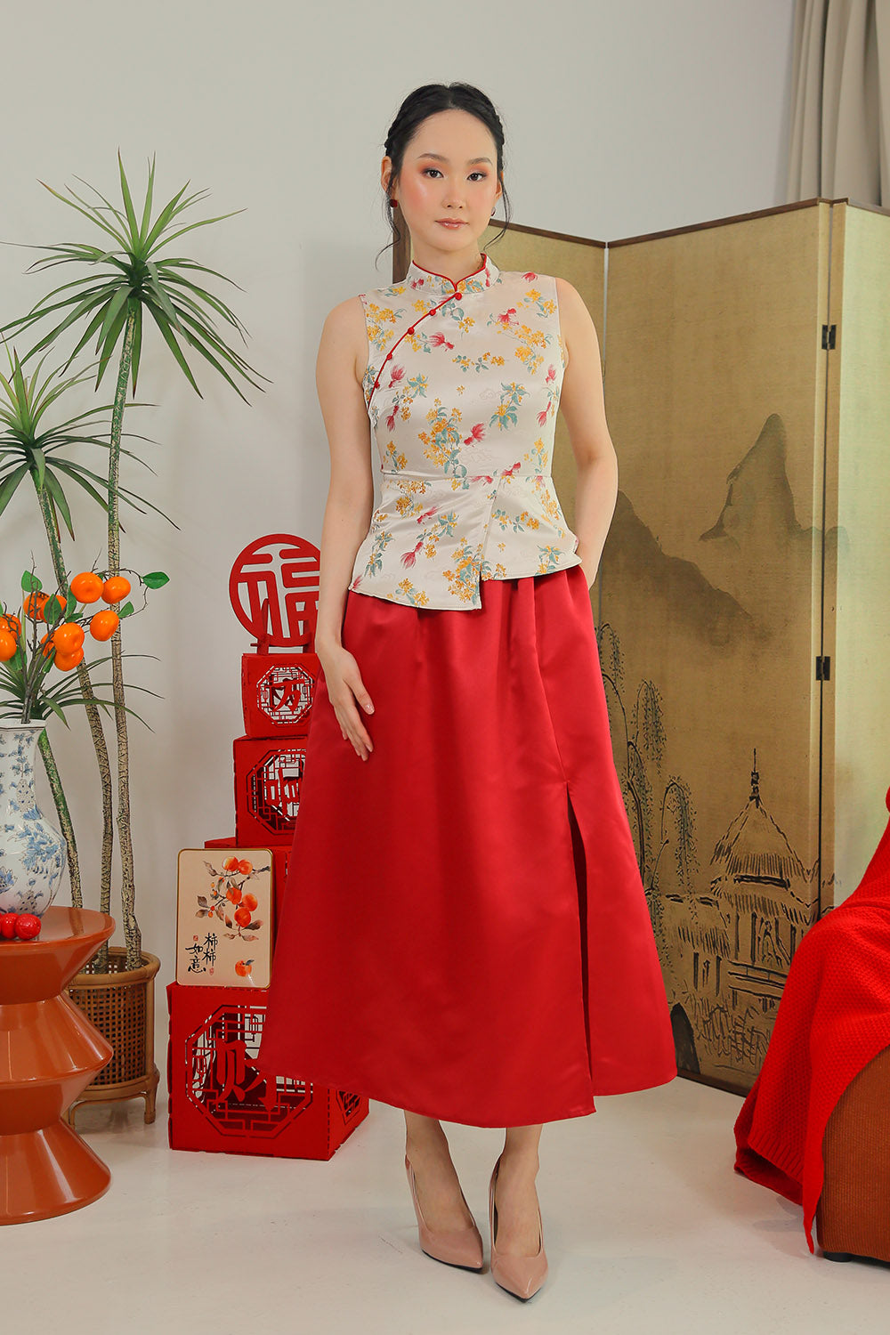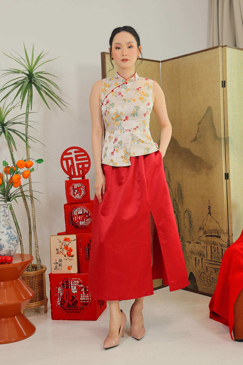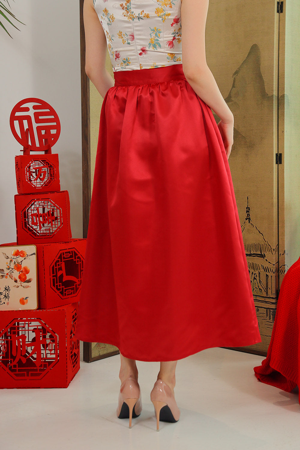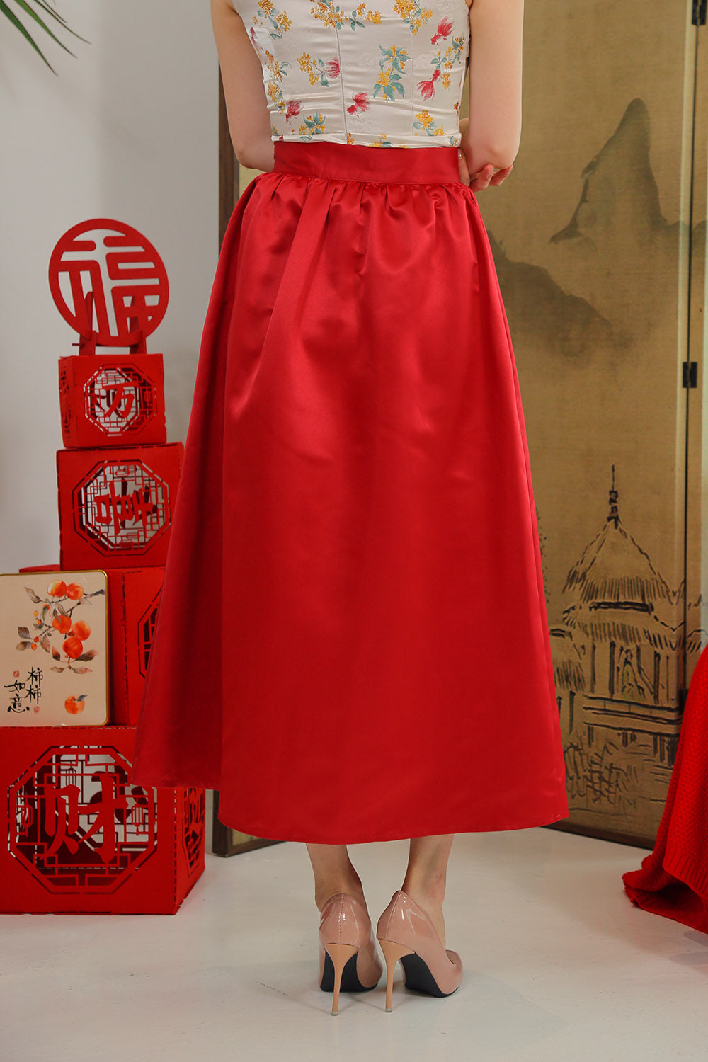The Sayuri Slit Skirt is a refined midi skirt designed for effortless festive elegance. Crafted in a rich Mulberry Red, it features a clean silhouette with a subtle side slit for graceful movement and a polished finish — perfect for Lunar New Year and special occasions.