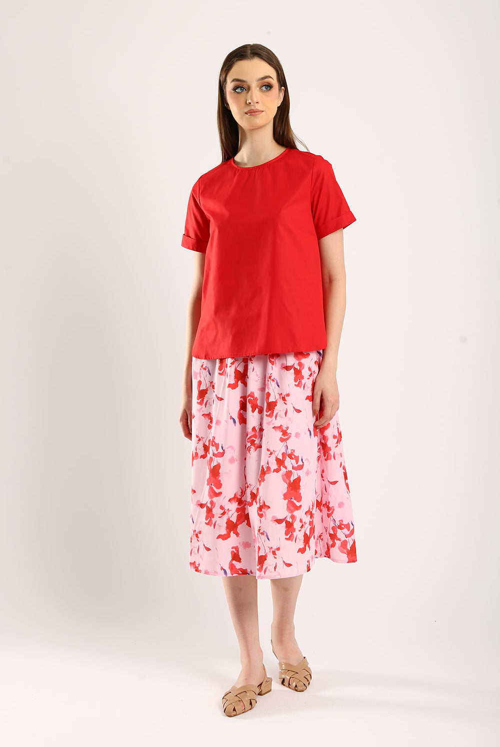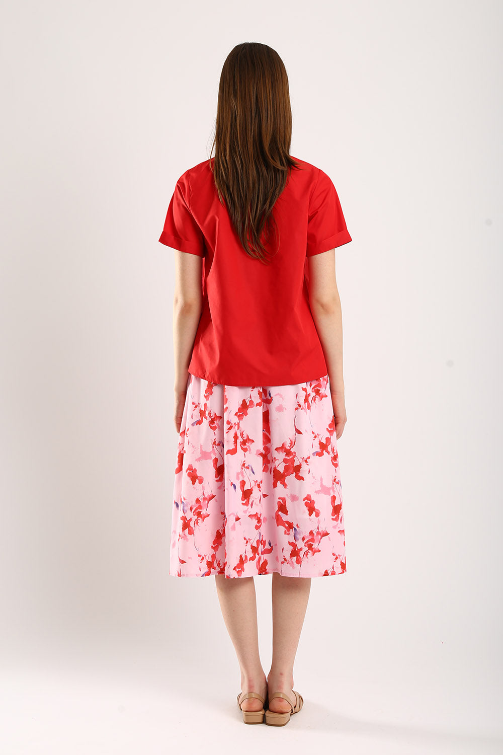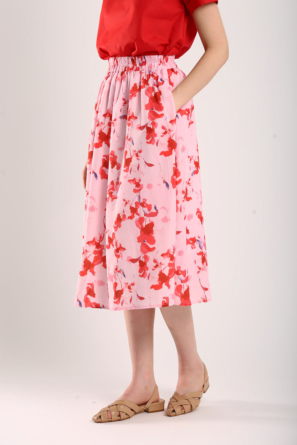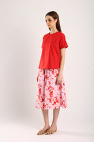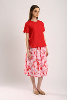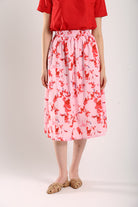 Crafted from a soft cotton-blend fabric, the Helja Skirt combines comfort and elegance. Its vibrant floral print on a pastel pink base adds a playful touch, while the elasticated waistband ensures a flexible, snug fit. The flattering A-line silhouette provides a breezy, flowy feel, perfect for warm-weather outings or semi-formal occasions.