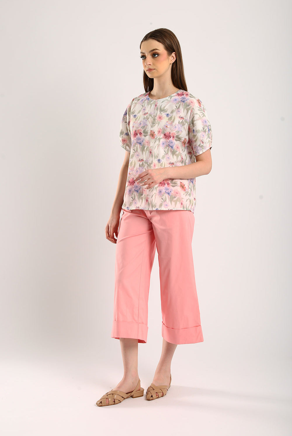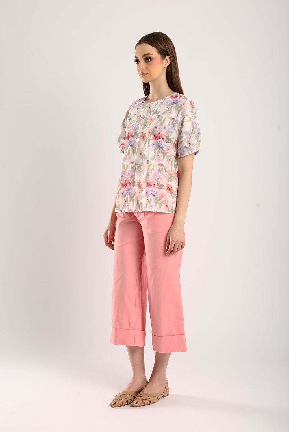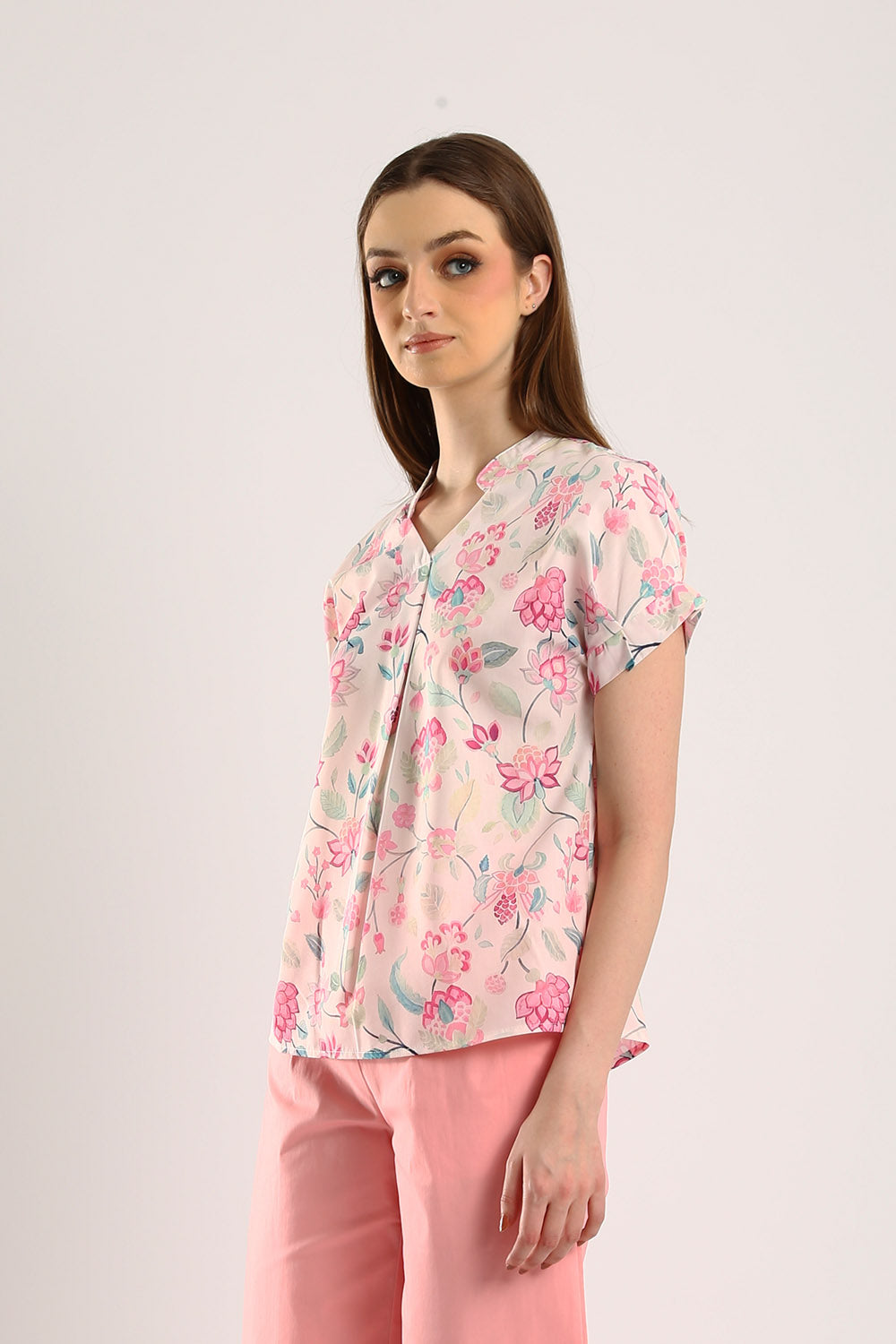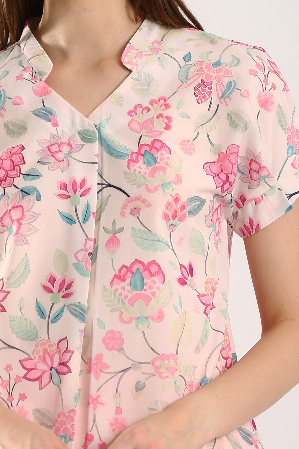 Elevate your everyday wardrobe with the Novi Cotton-Linen Blouse in Pink Floral. Crafted from a blend of lightweight cotton and linen, this blouse showcases a delicate floral print in soft pink hues, perfect for adding a touch of femininity to your outfit. Designed with a flattering V-neckline and charming rolled sleeves, it combines elegance with comfort. Pair it effortlessly with tailored pants, skirts, or shorts for versatile styling options that transition from casual to chic.