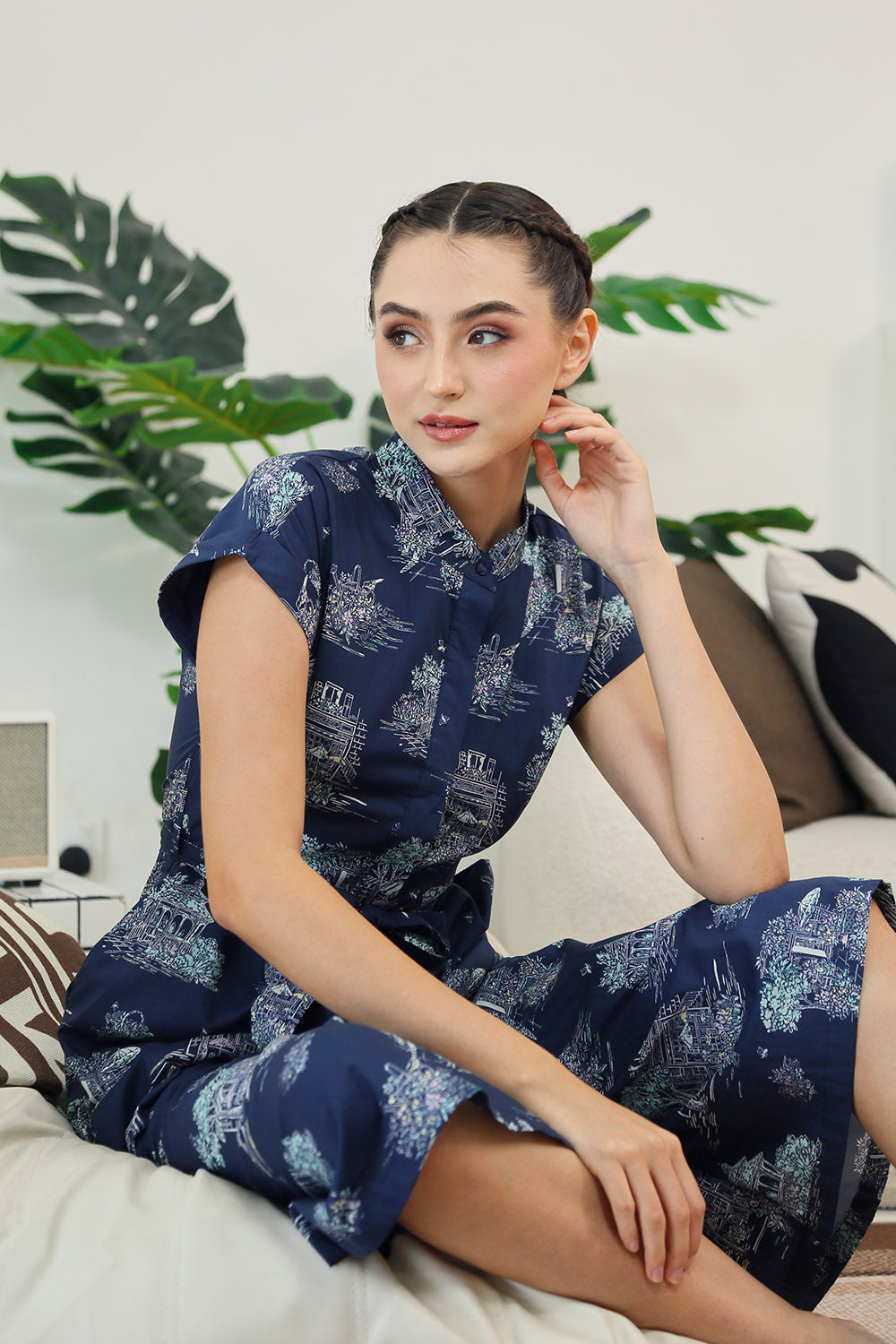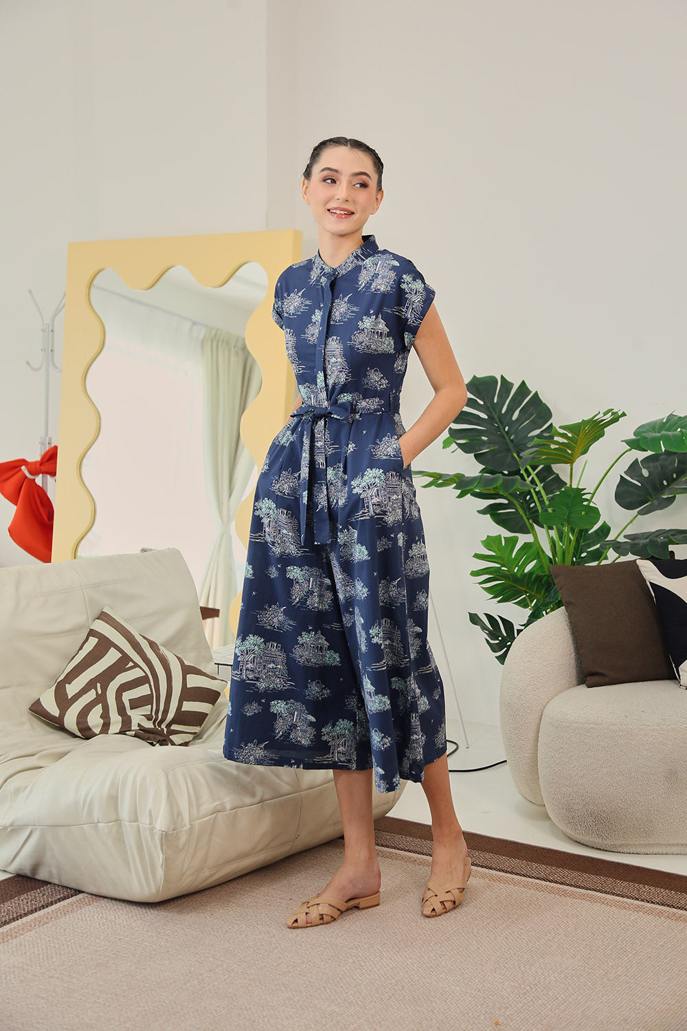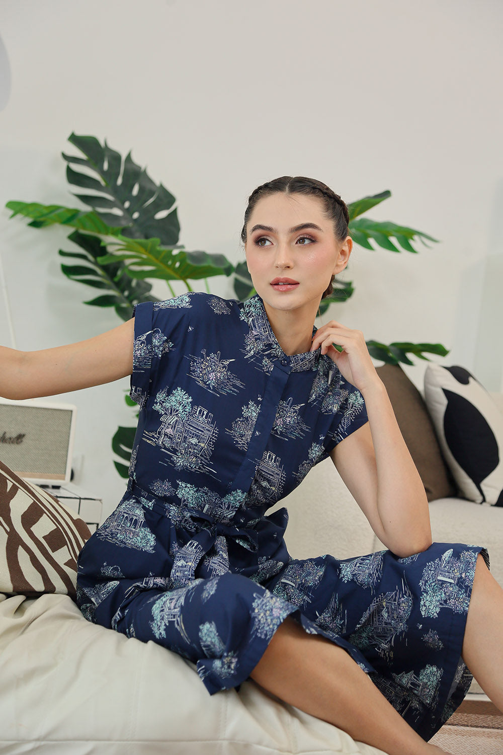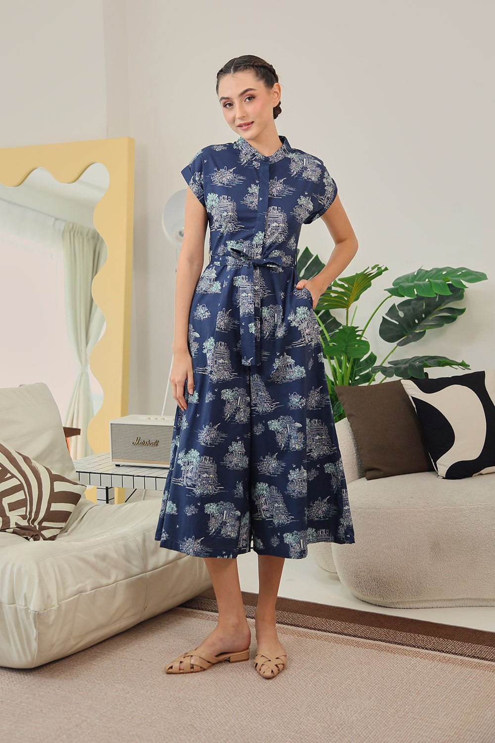 Sofina Sashed Jumpsuit in Midnight Countryside