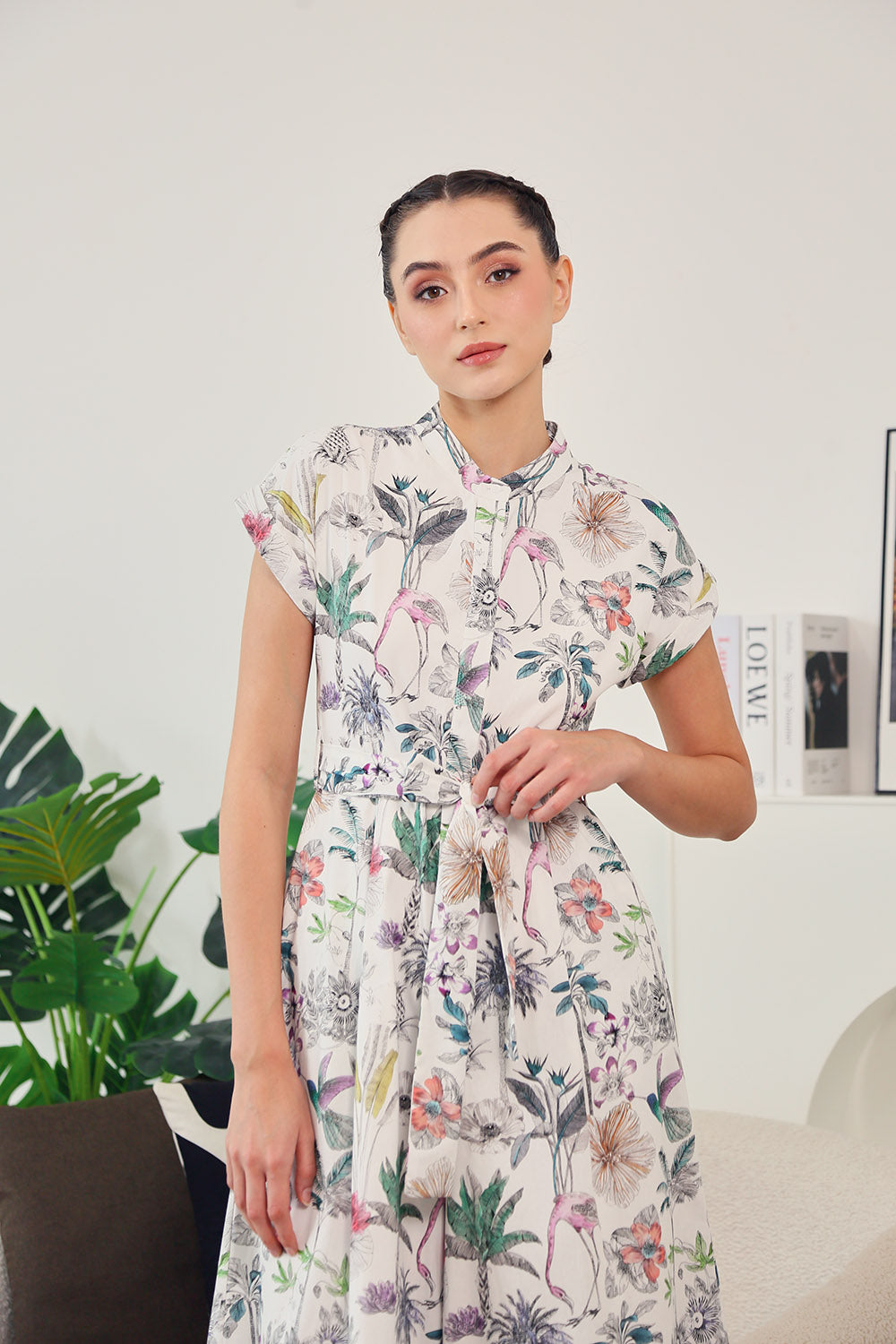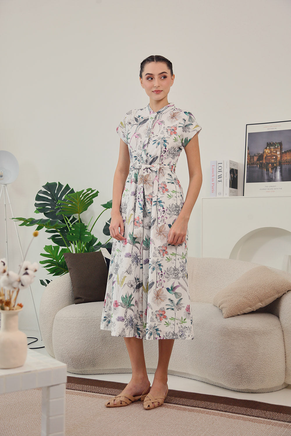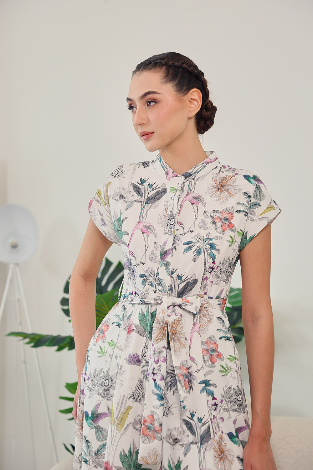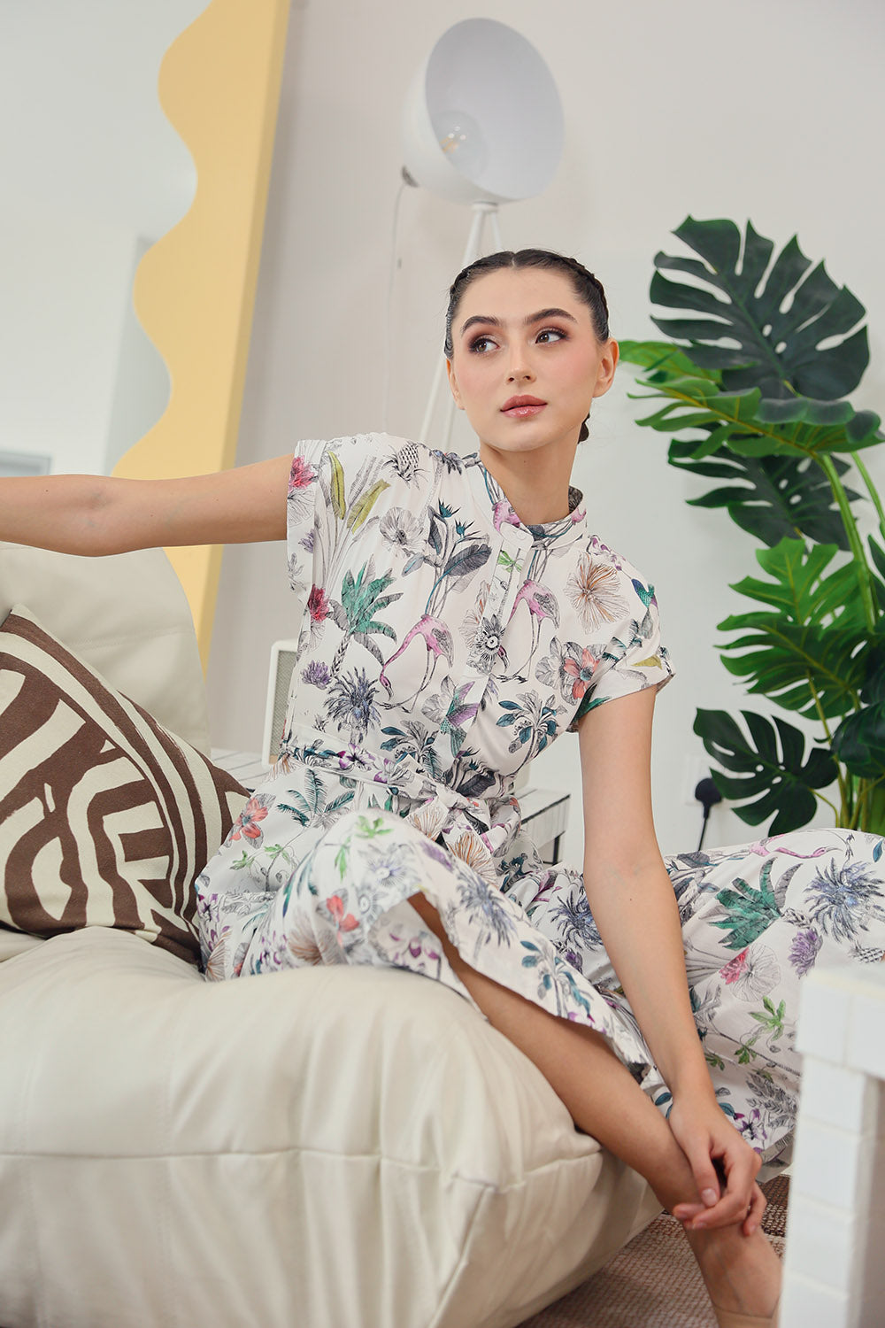 Sofina Sashed Jumpsuit in Tropical Garden