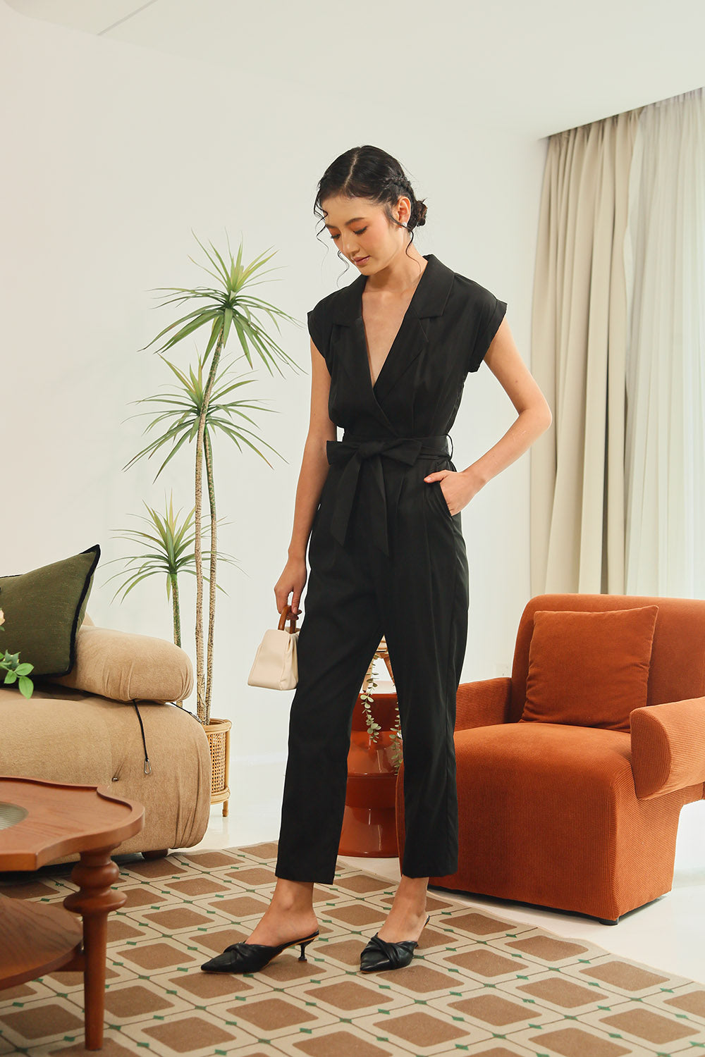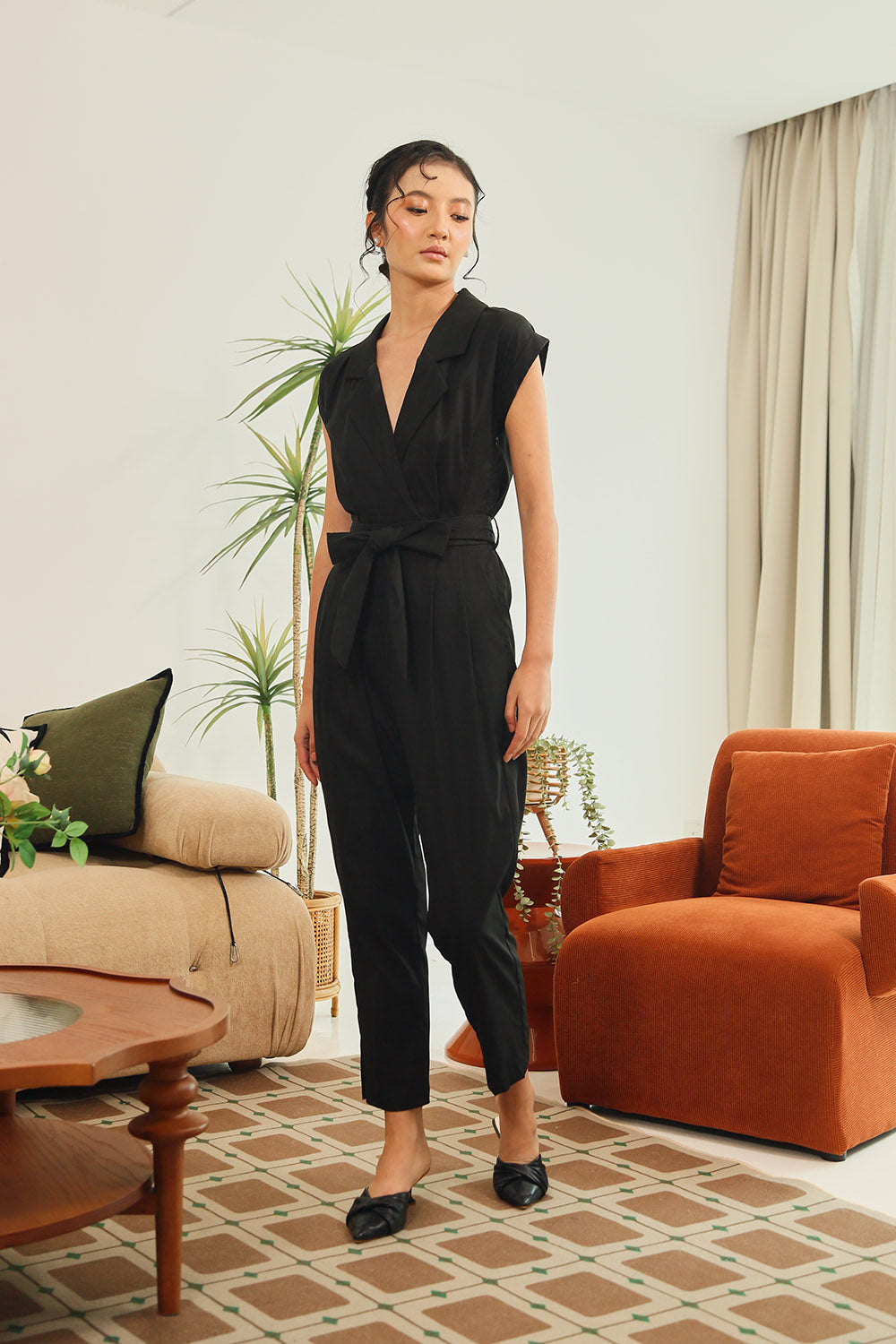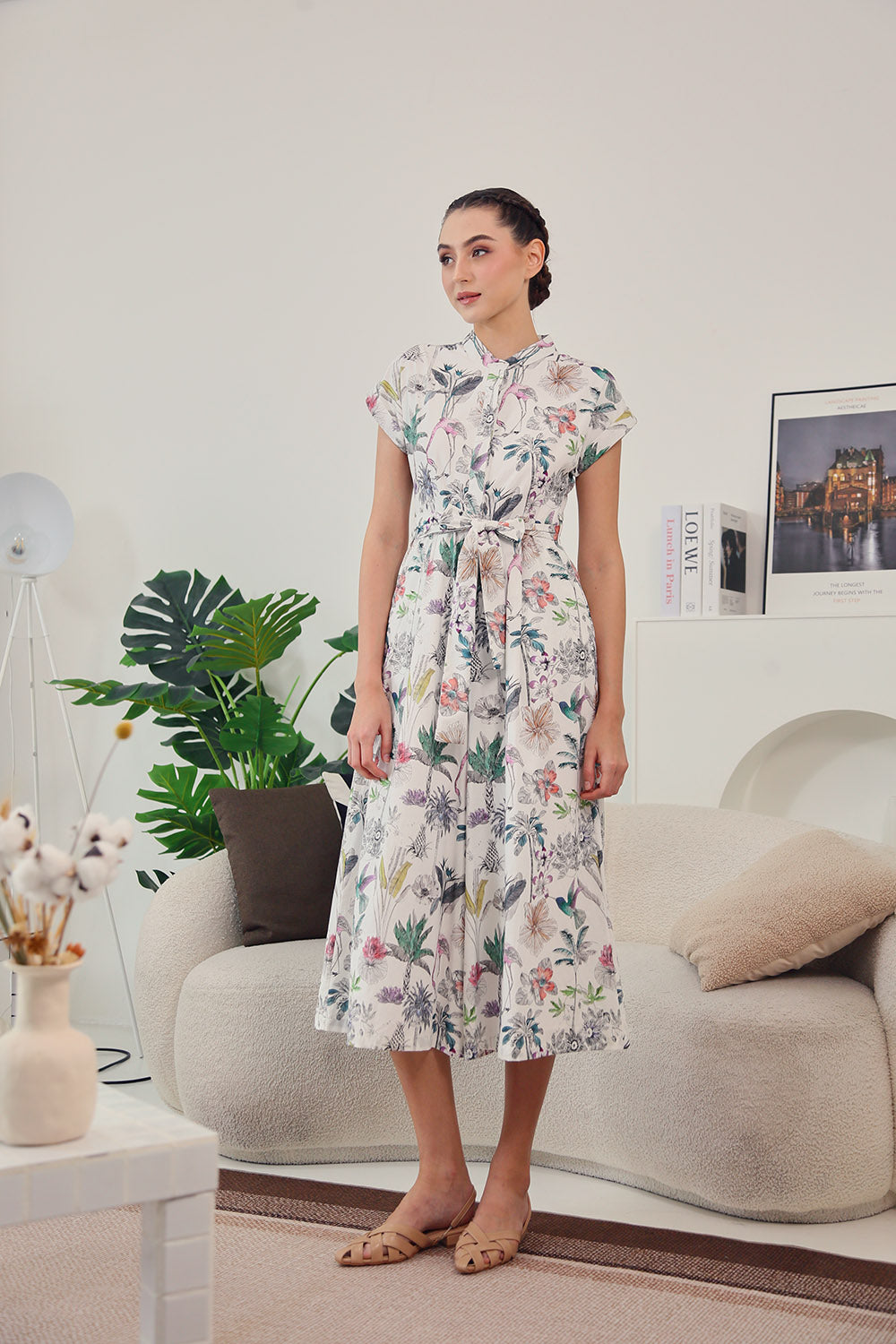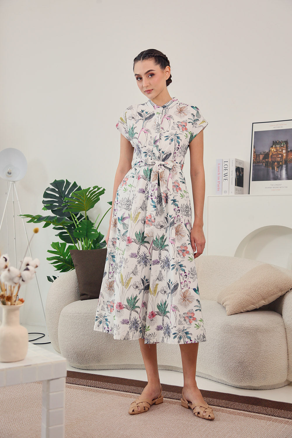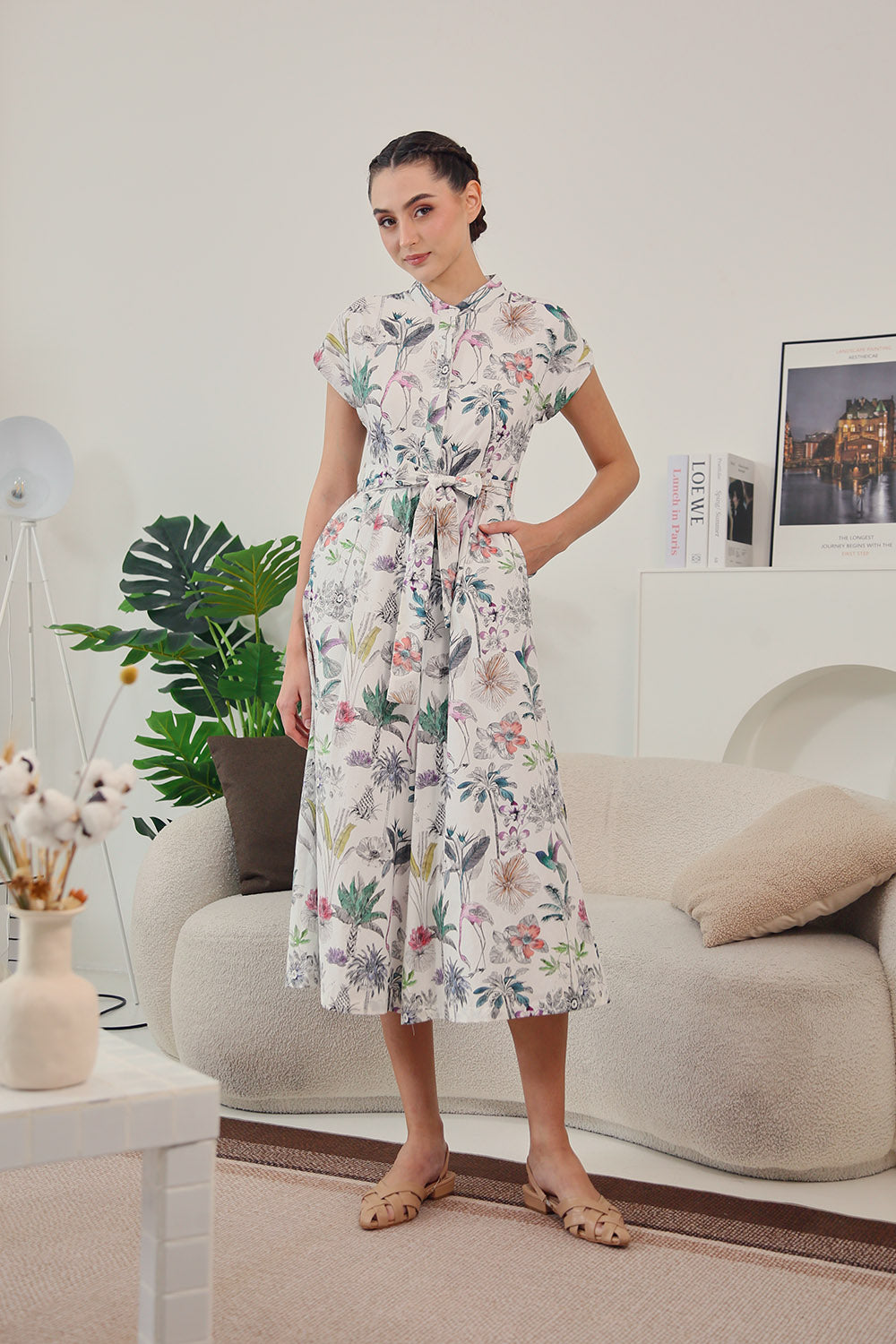 Sofina Sashed Jumpsuit in Tropical Garden