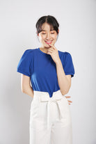 Slip into the effortless style of our Agnes Top in Blue. Designed for easy wear, this top is made from a weighted cotton material that provides stretch for all-day comfort. Plus, it's non-lined for a breezy feel. Perfect for any occasion, this top will become your new go-to!