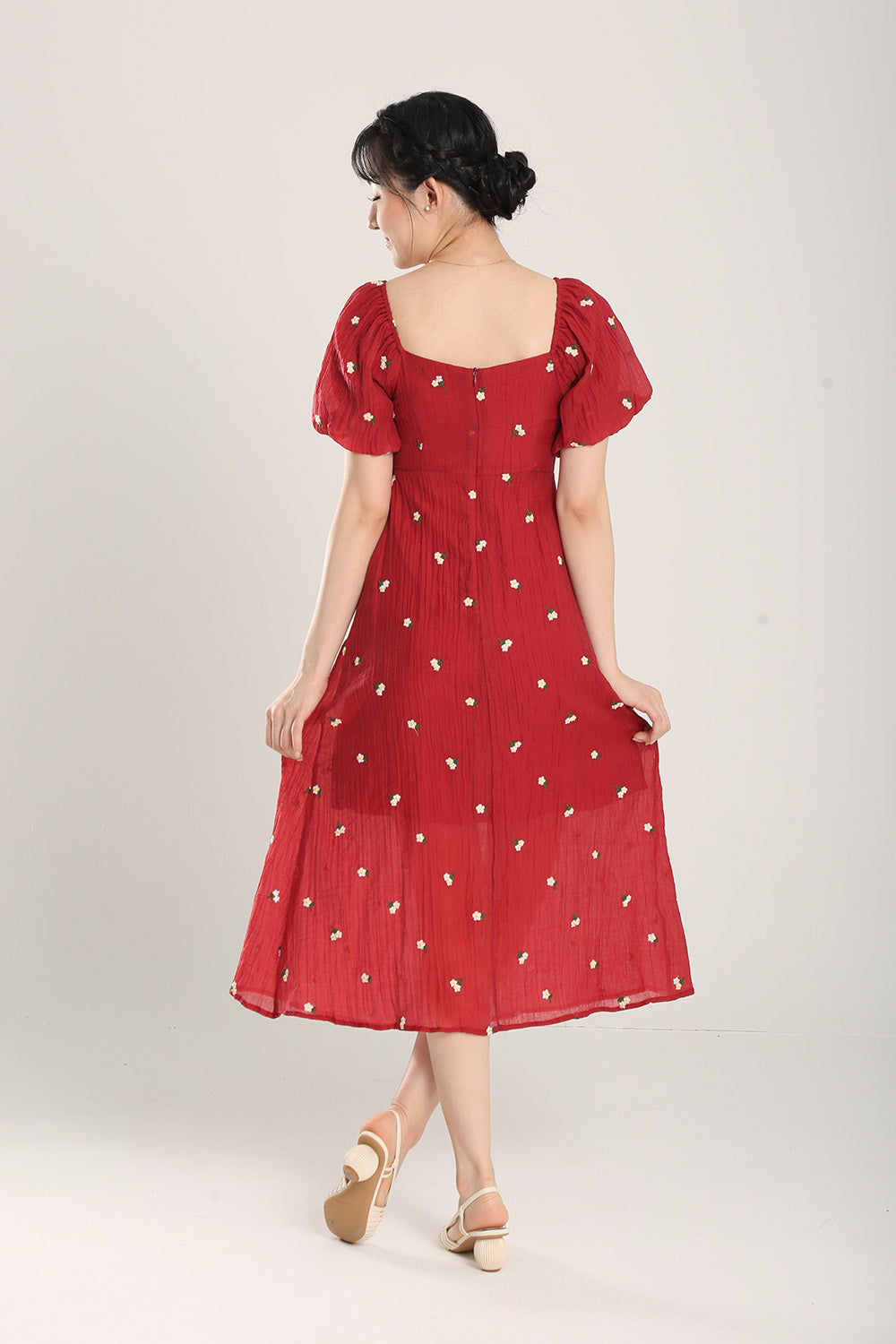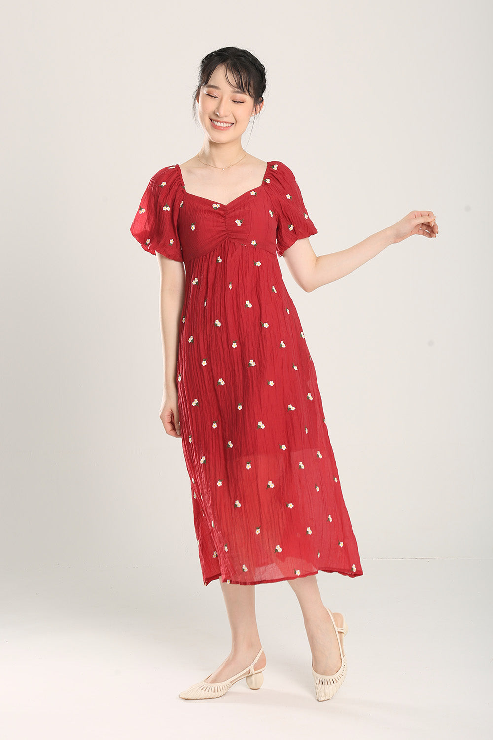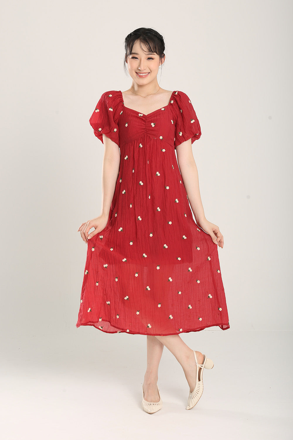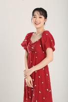 Sasha Floral Embroidered Dress in Red