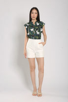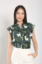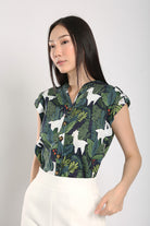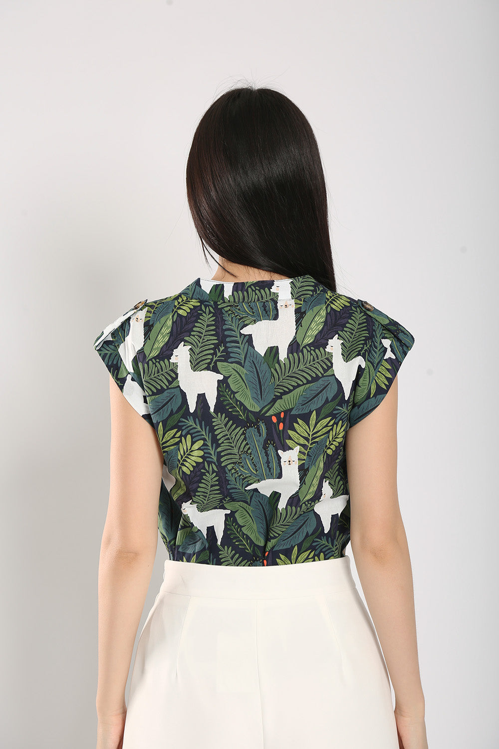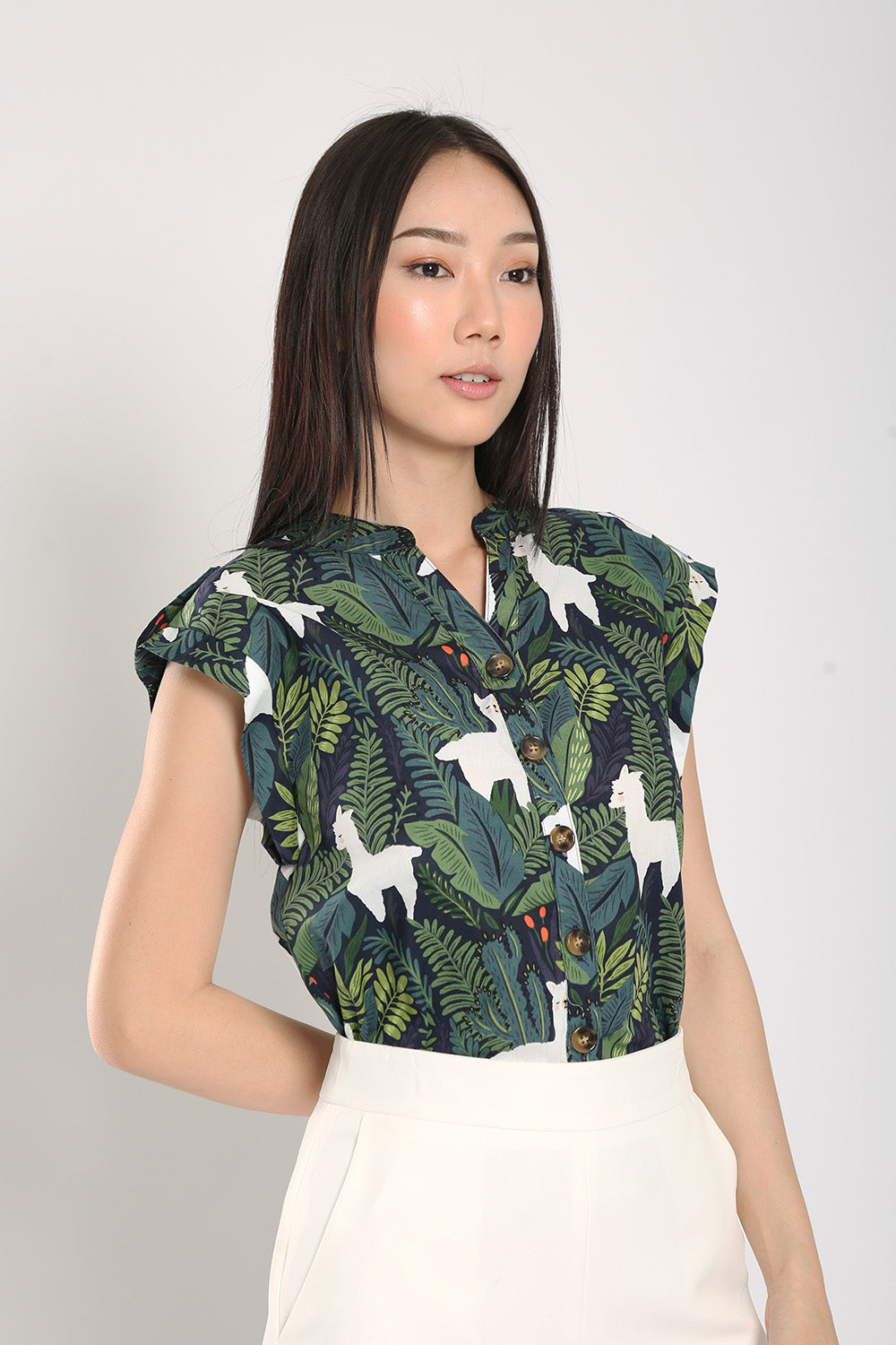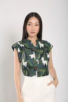 Get ready to make a statement in our Felizia Cotton Top! Featuring a playful alpaca print (note: placement may vary), this non-lined top boasts a front button closure for added style. Made with a non-stretchable cotton blend material, it's perfect for any occasion.