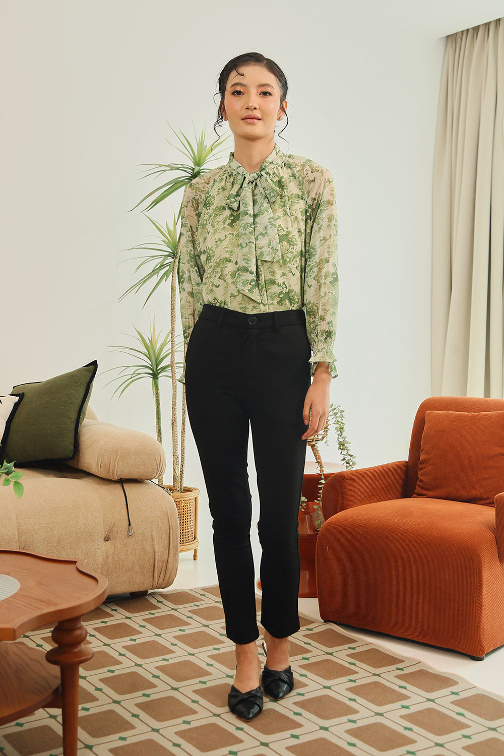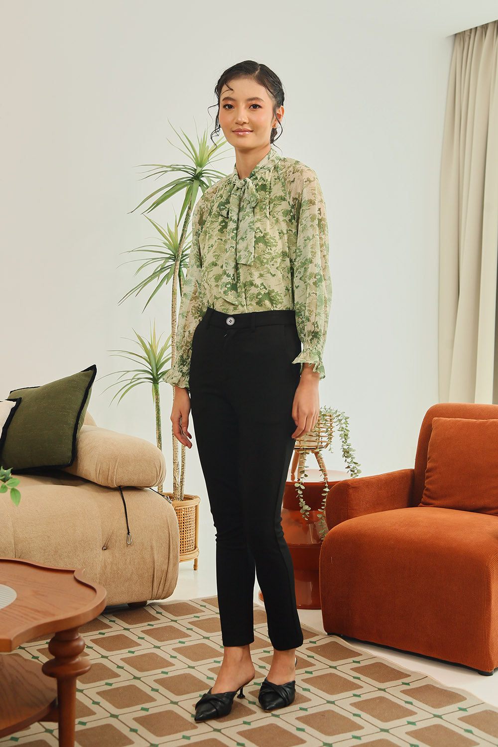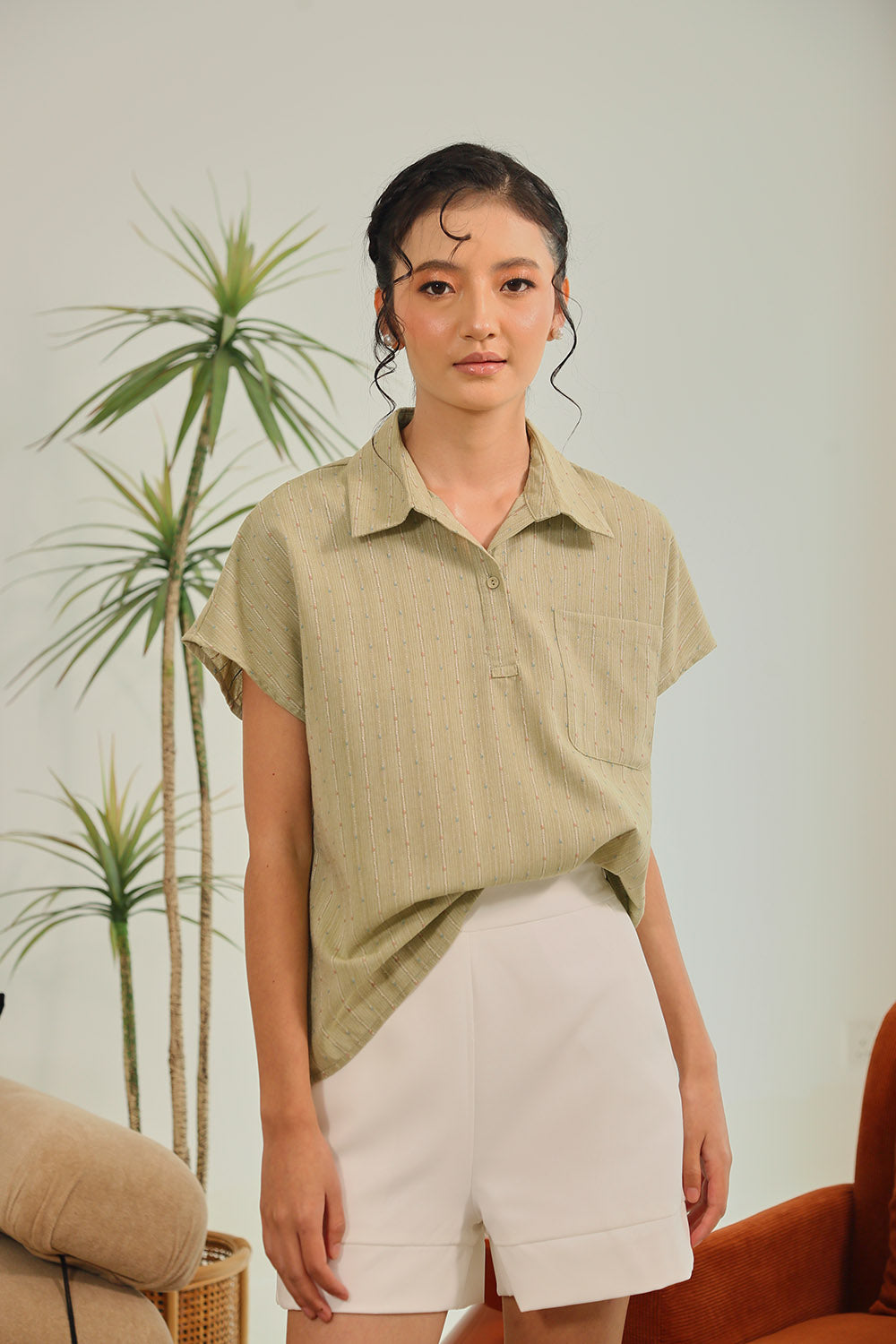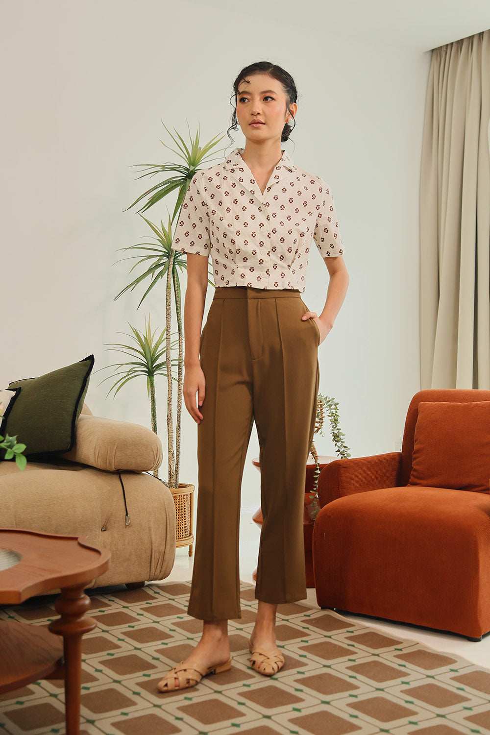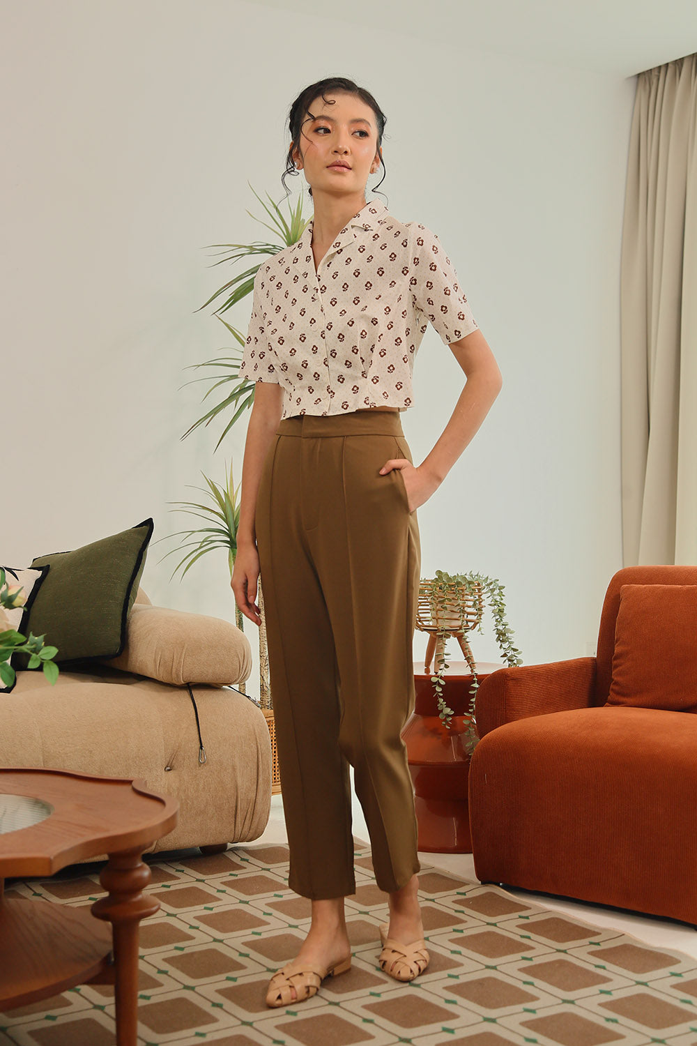 Tan Polka Dot Grey Gingham Rania Forest Green Sage Gingham Rania Mandarin Floral Navy Check Wine Check +4