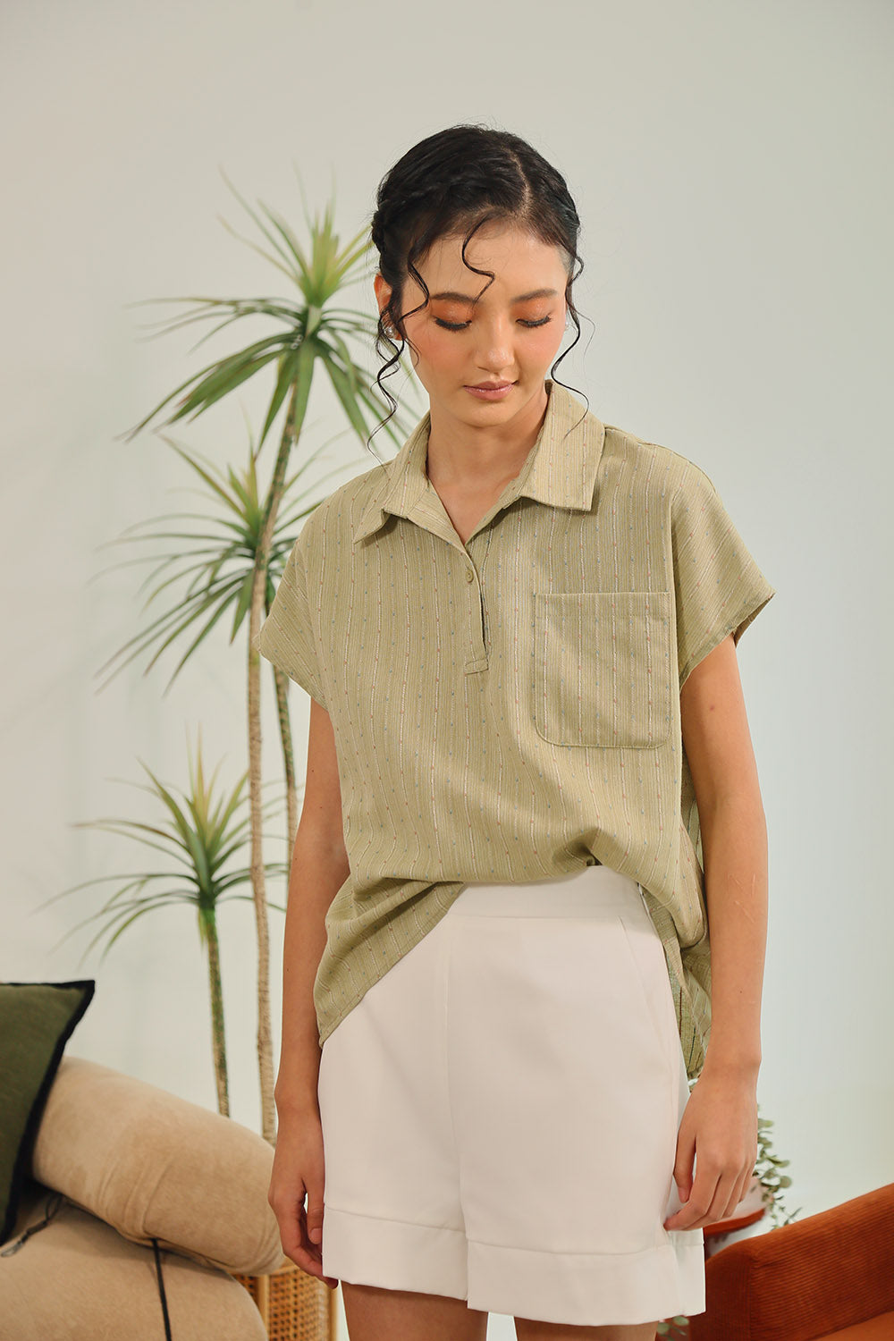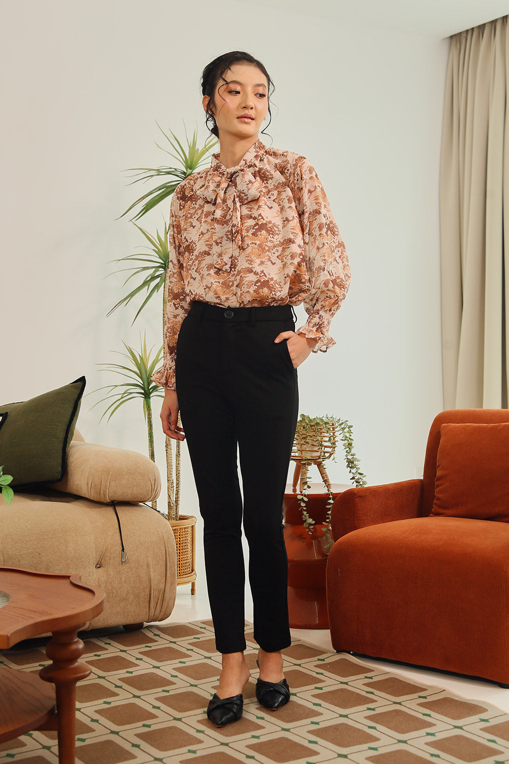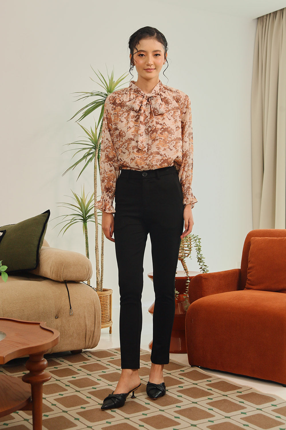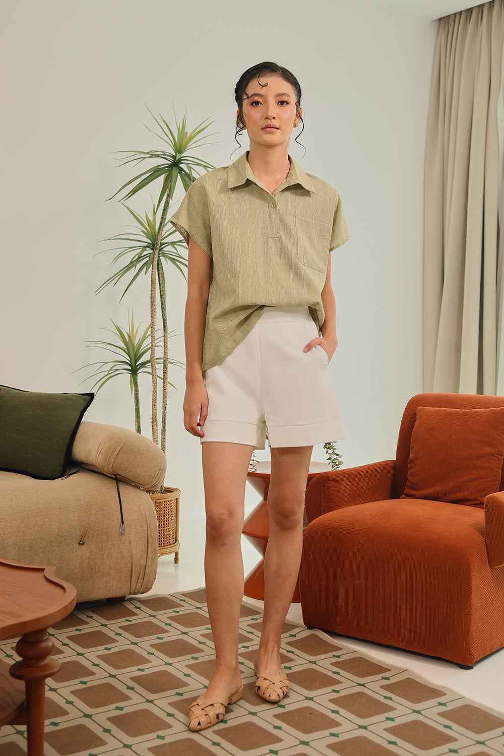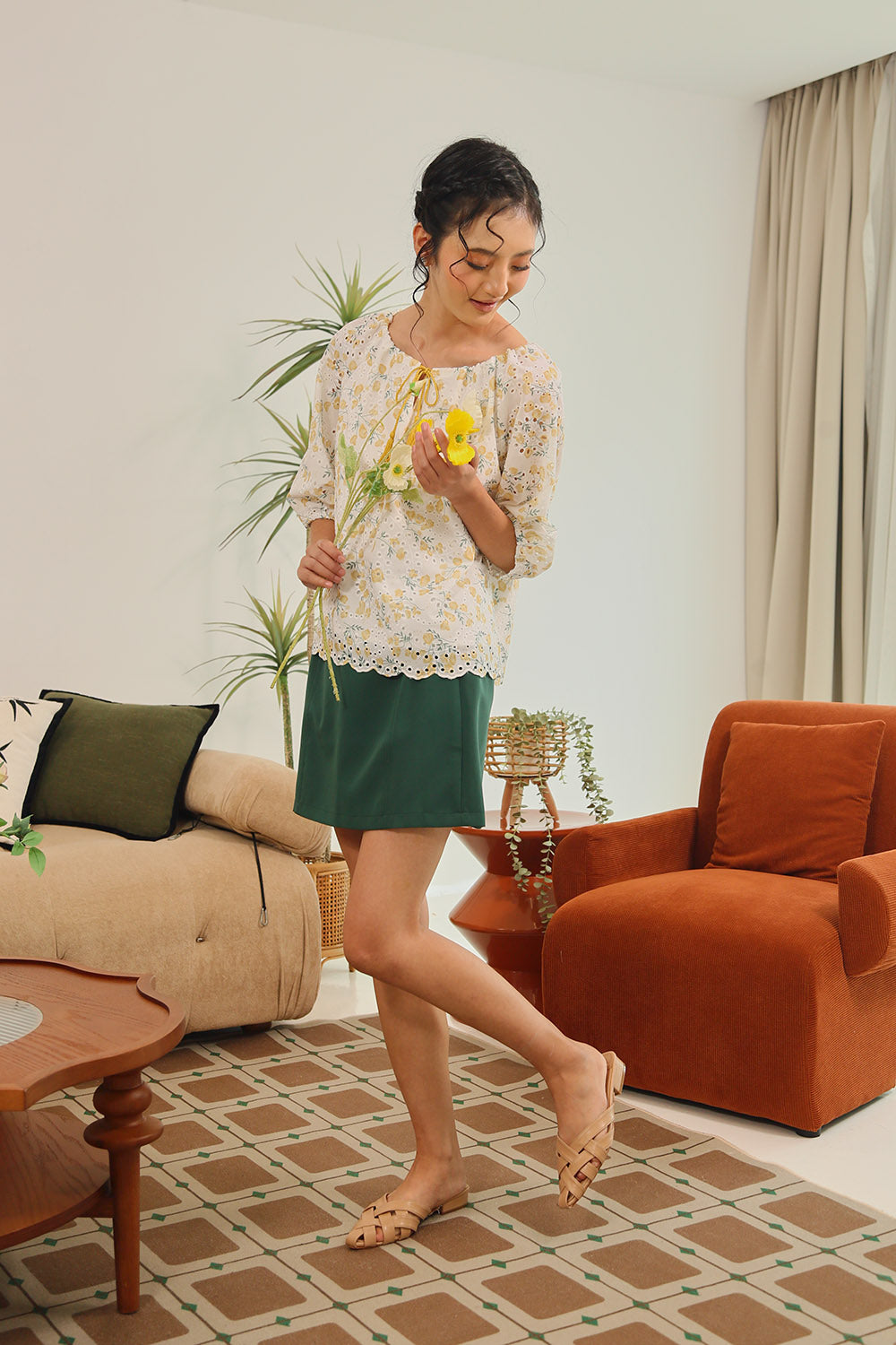 Tan Polka Dot Grey Gingham Rania Forest Green Sage Gingham Rania Mandarin Floral Navy Check Wine Check +4