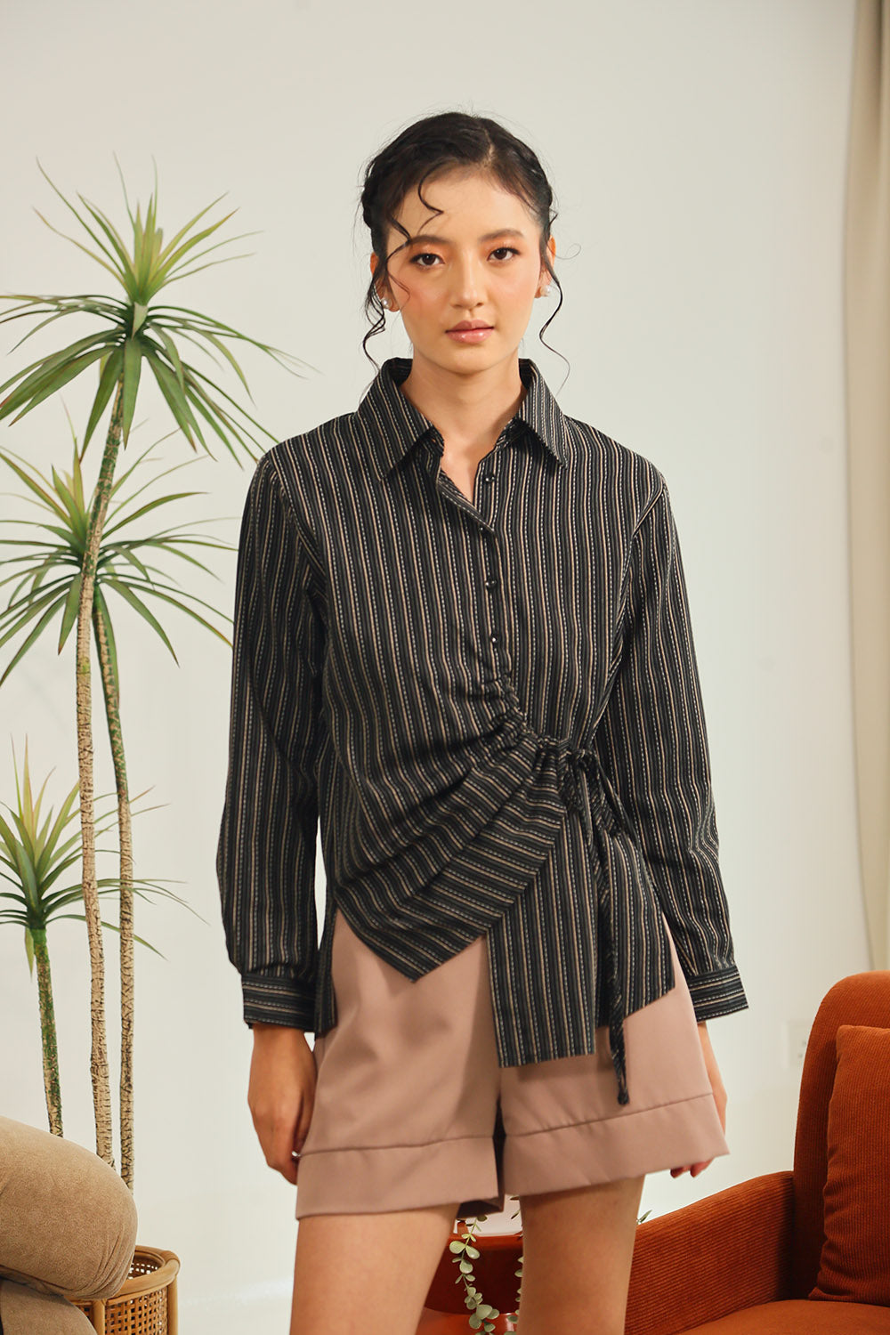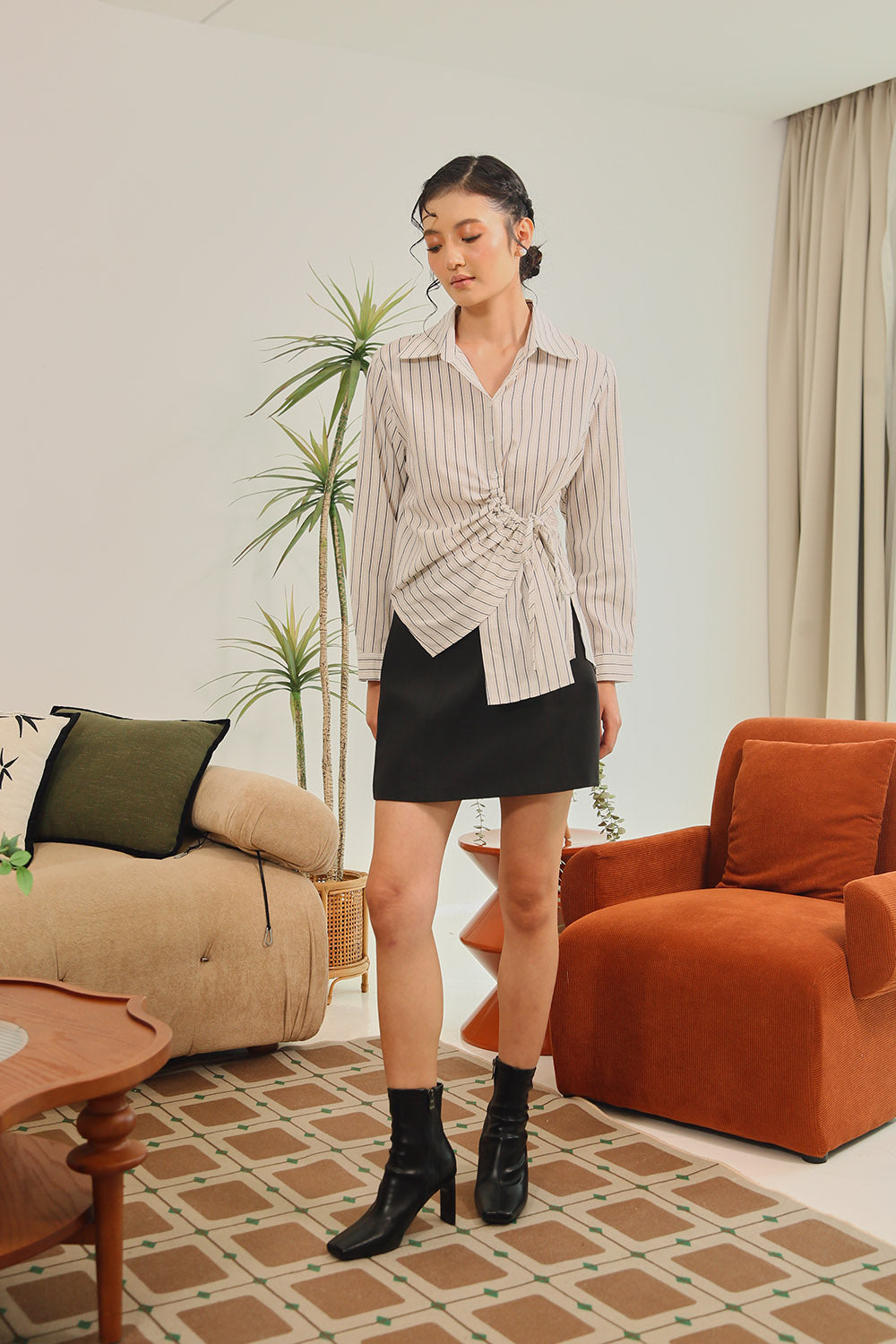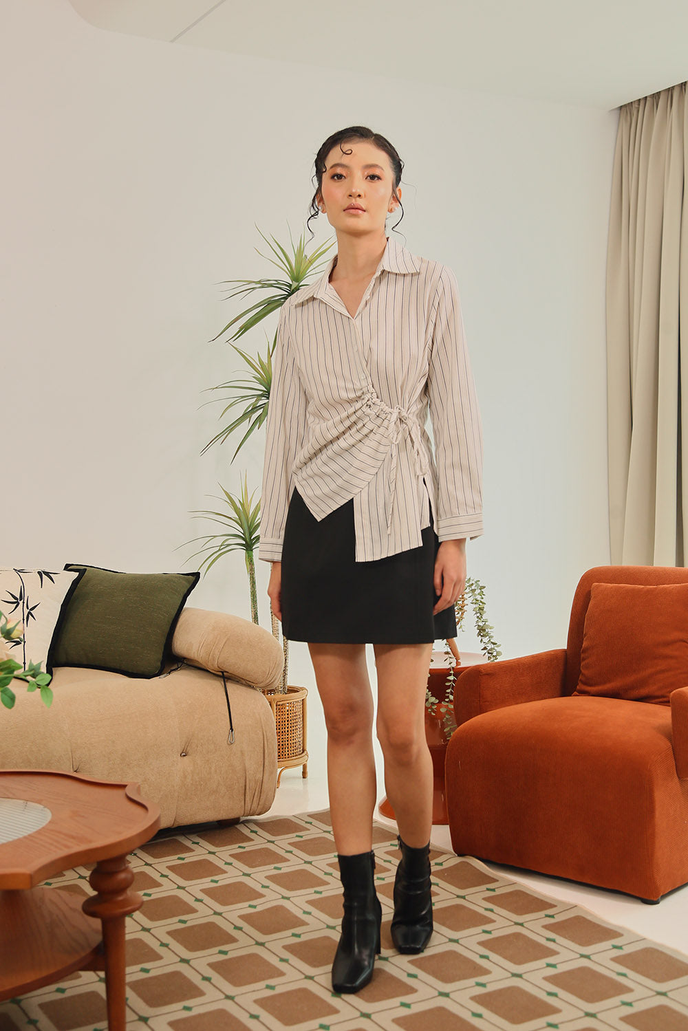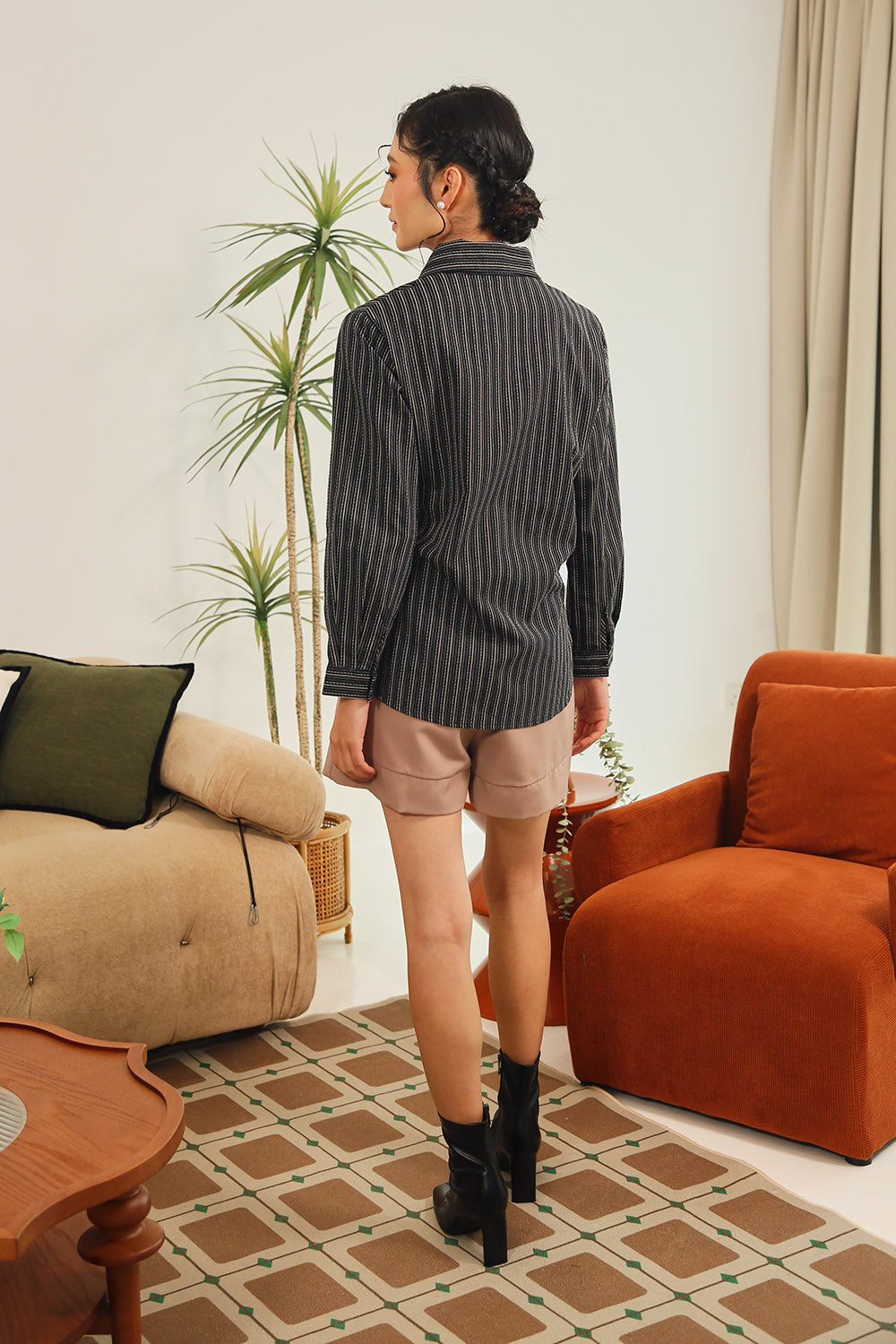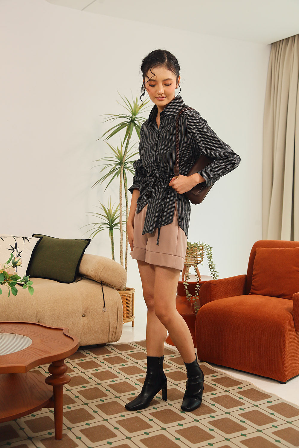 Tan Polka Dot Grey Gingham Rania Forest Green Sage Gingham Rania Mandarin Floral Navy Check Wine Check +4