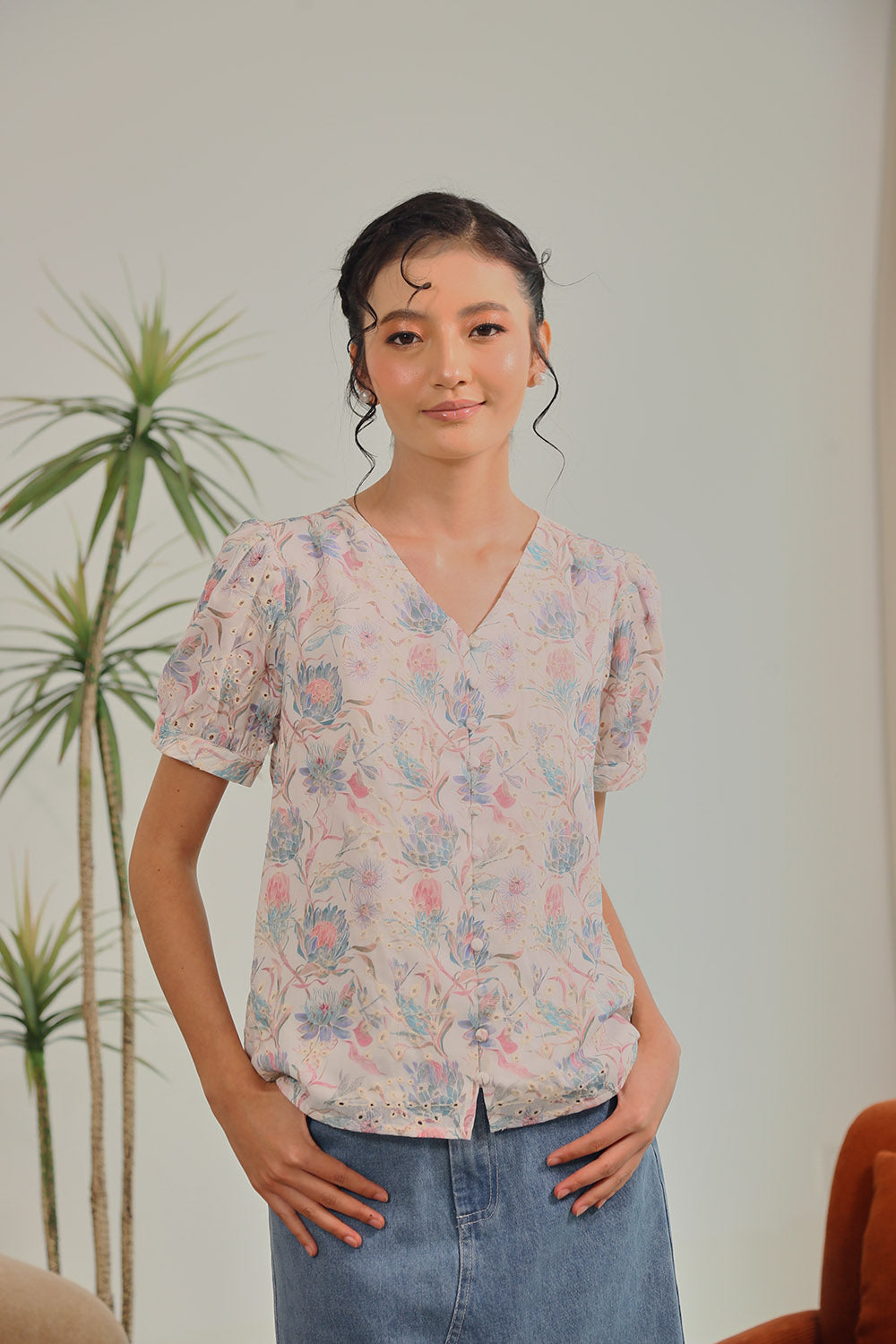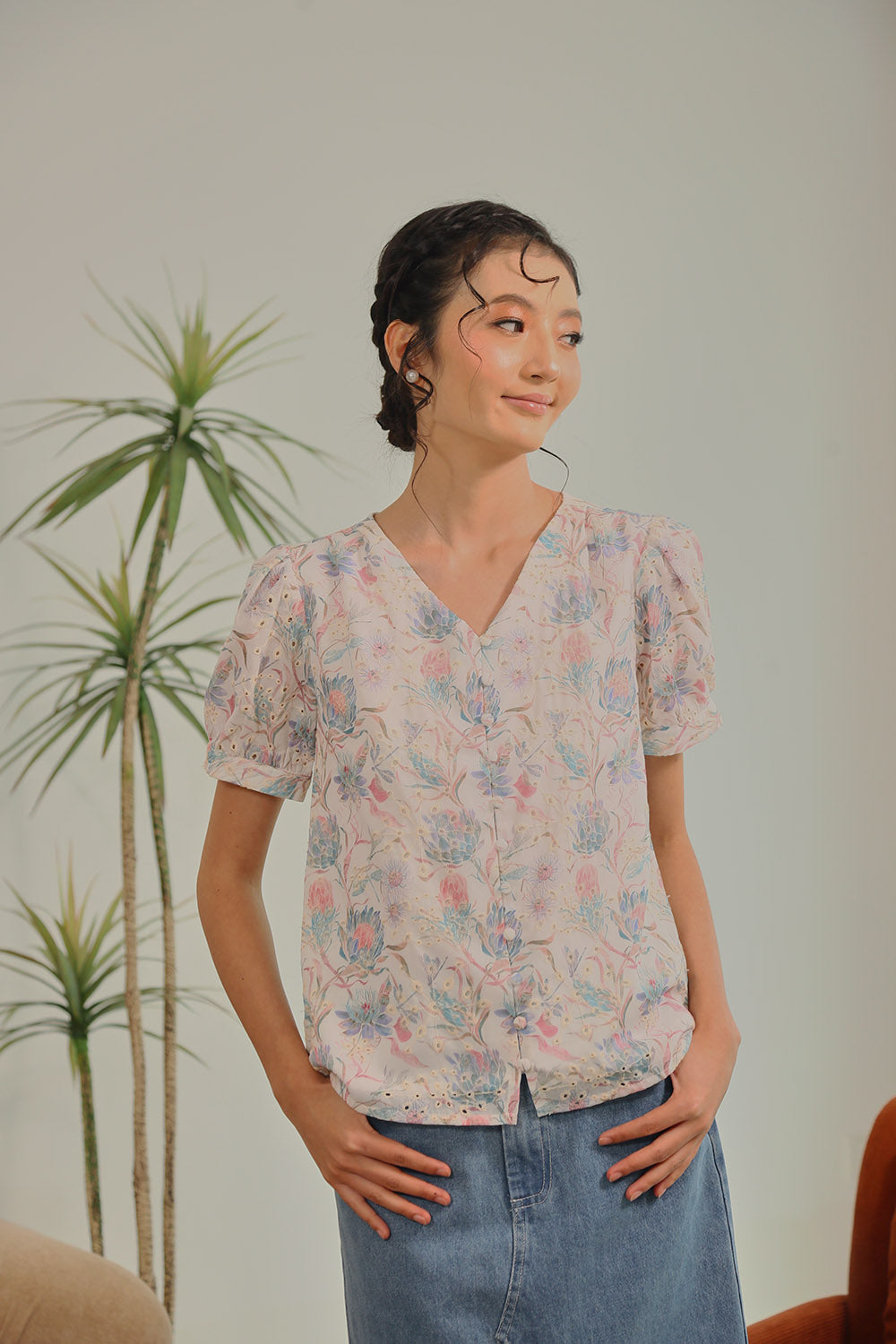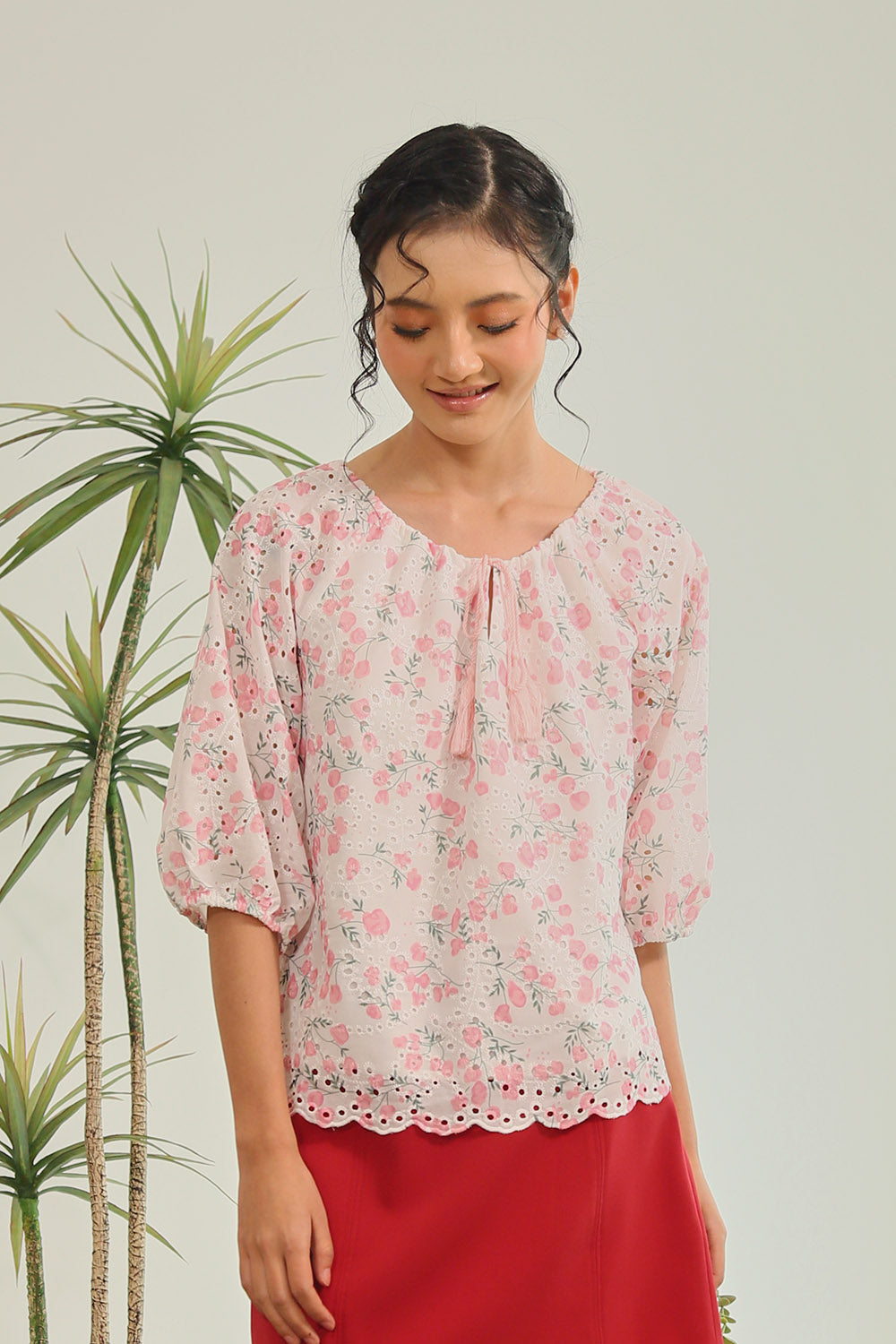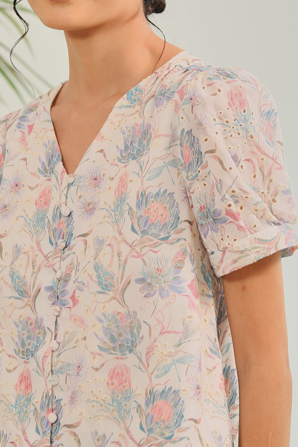Rania Floral Blouson Top in Pastel Bloom