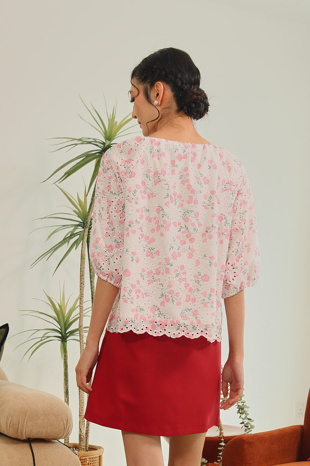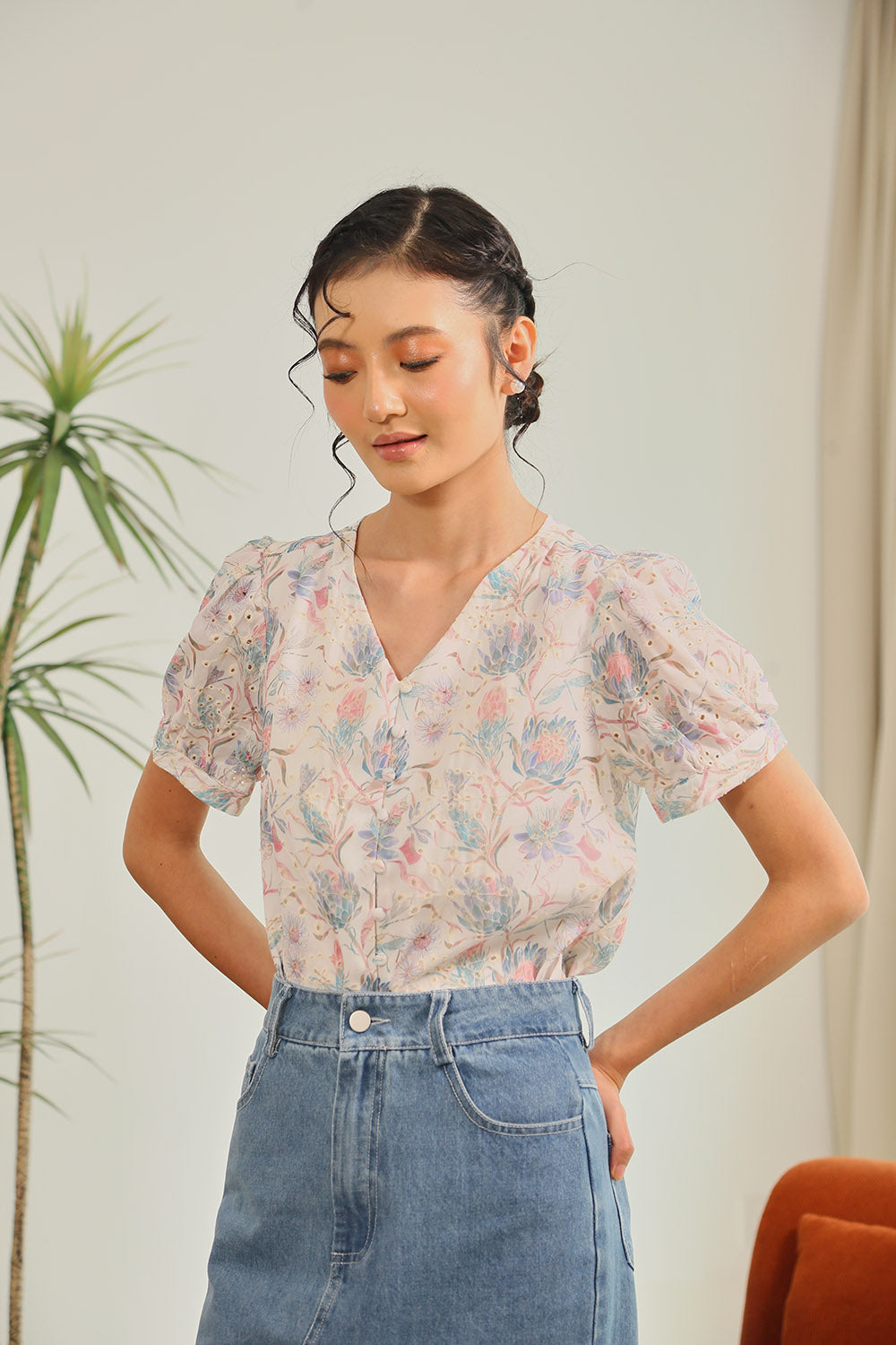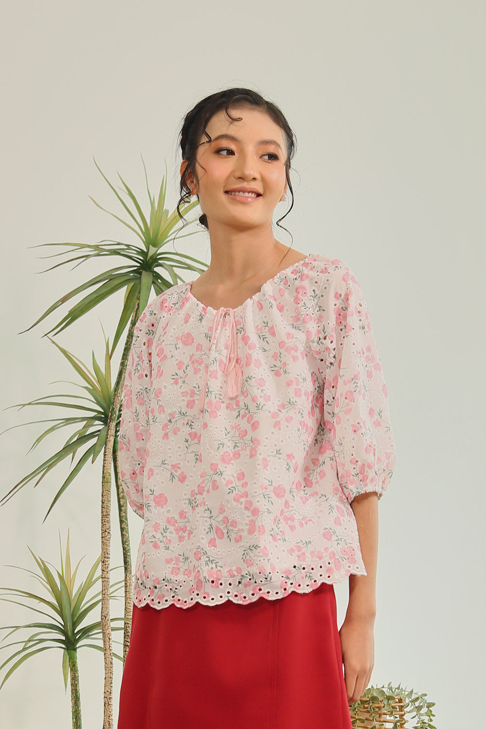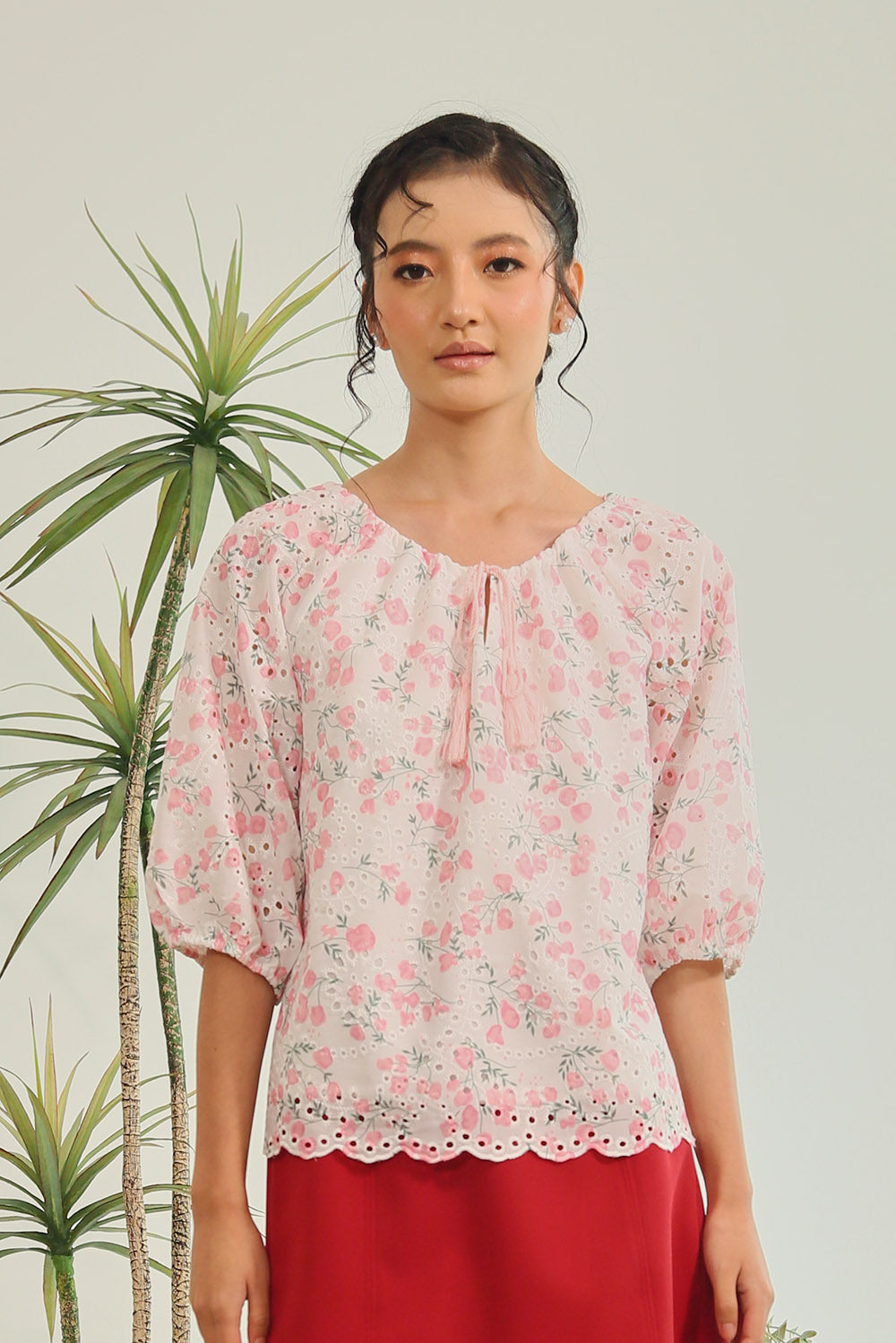 Rania Floral Blouson Top in Pastel Bloom