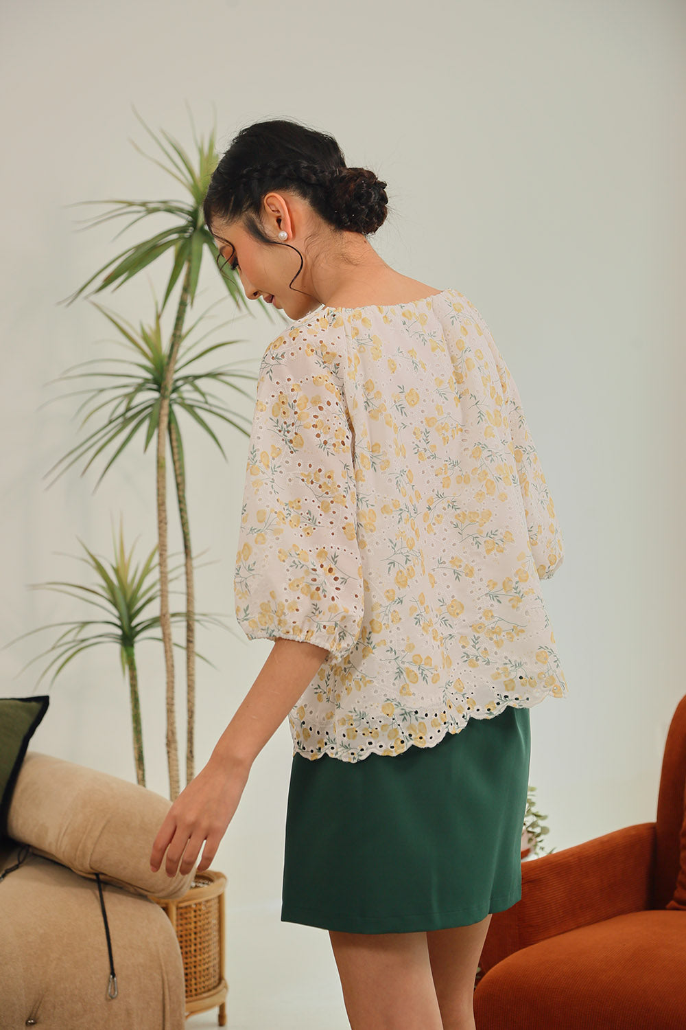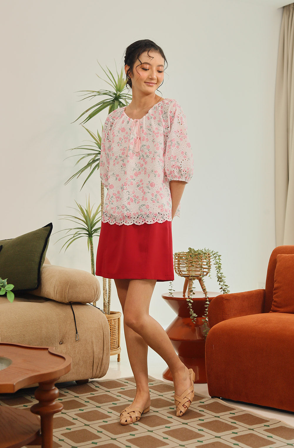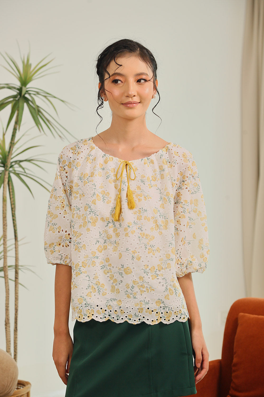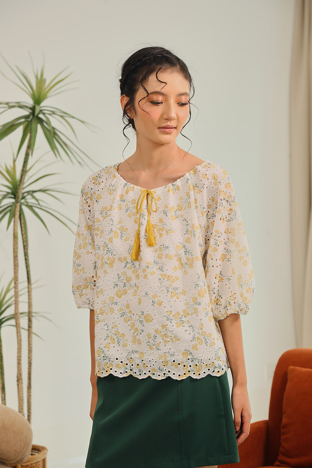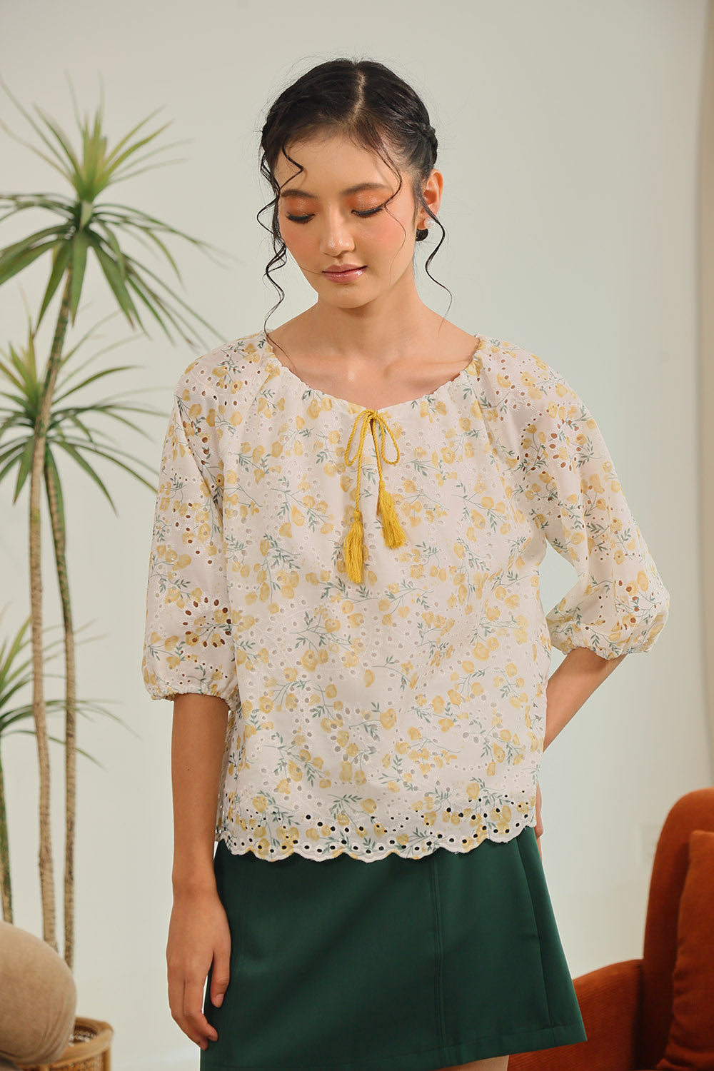 Rania Floral Blouson Top in Pastel Bloom