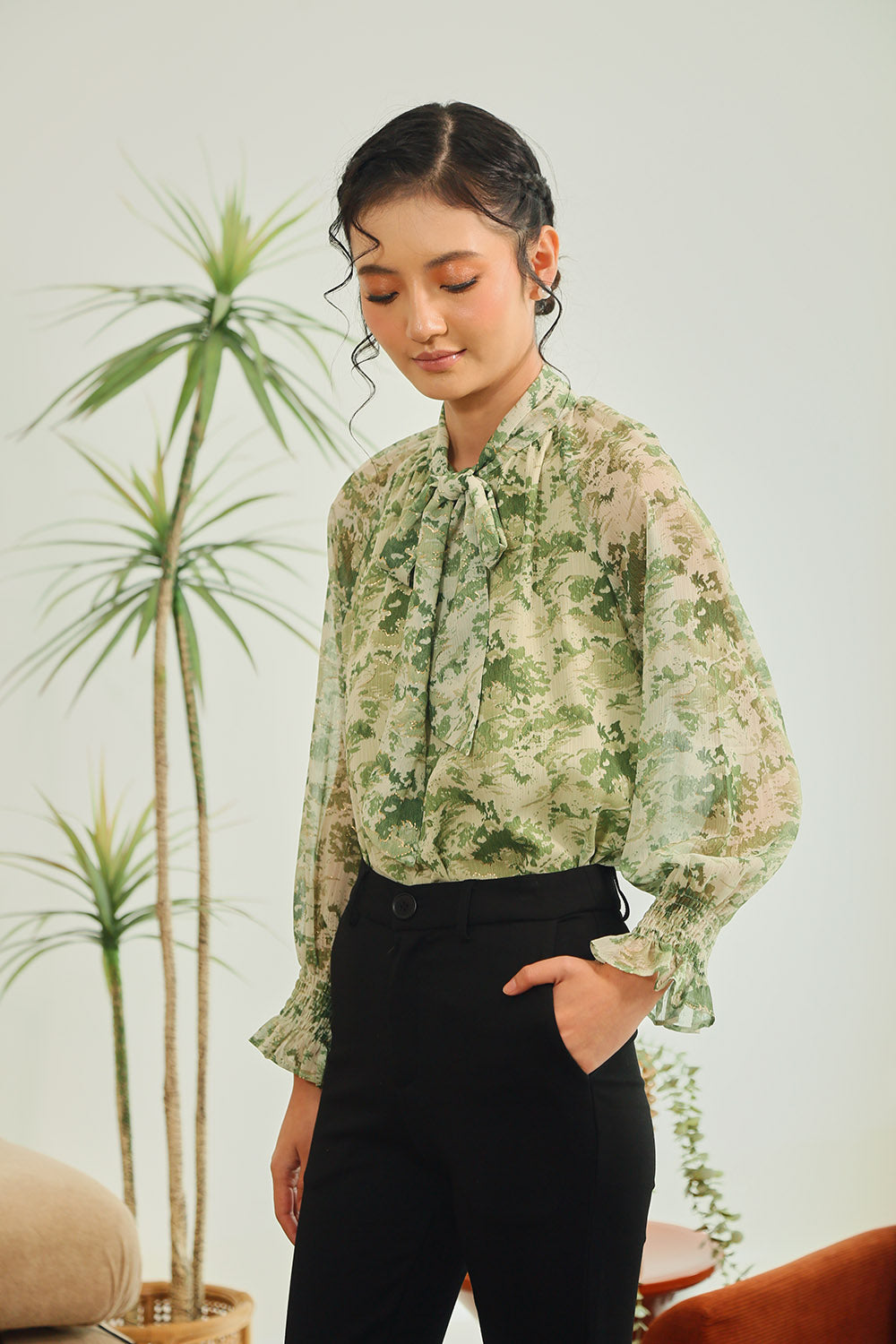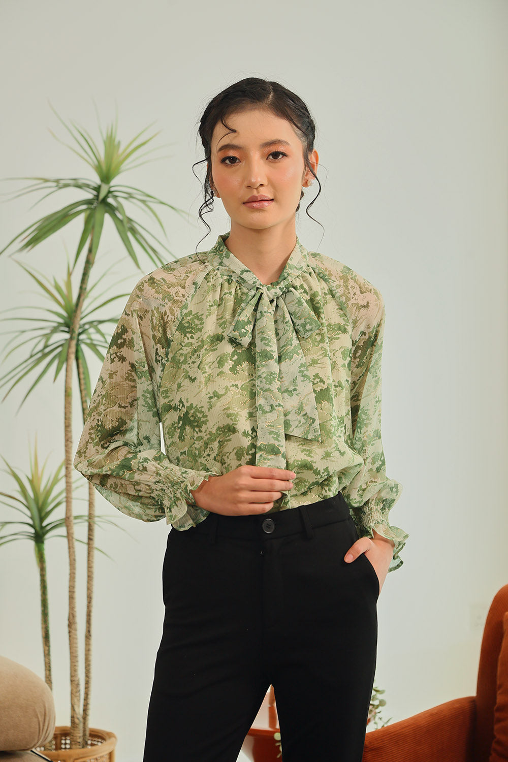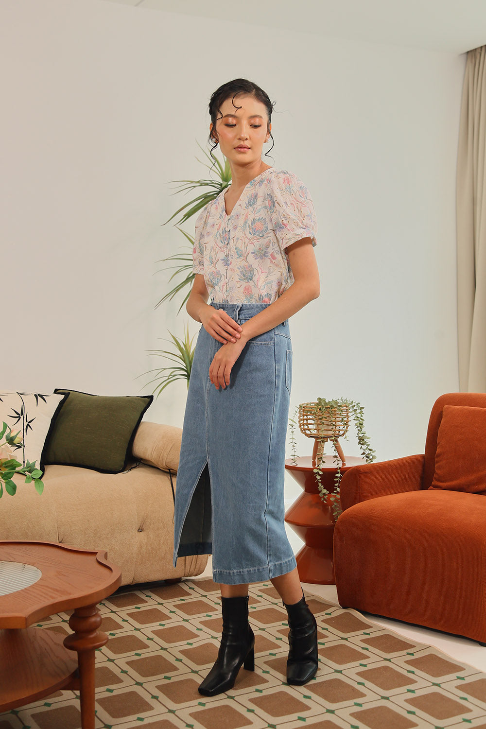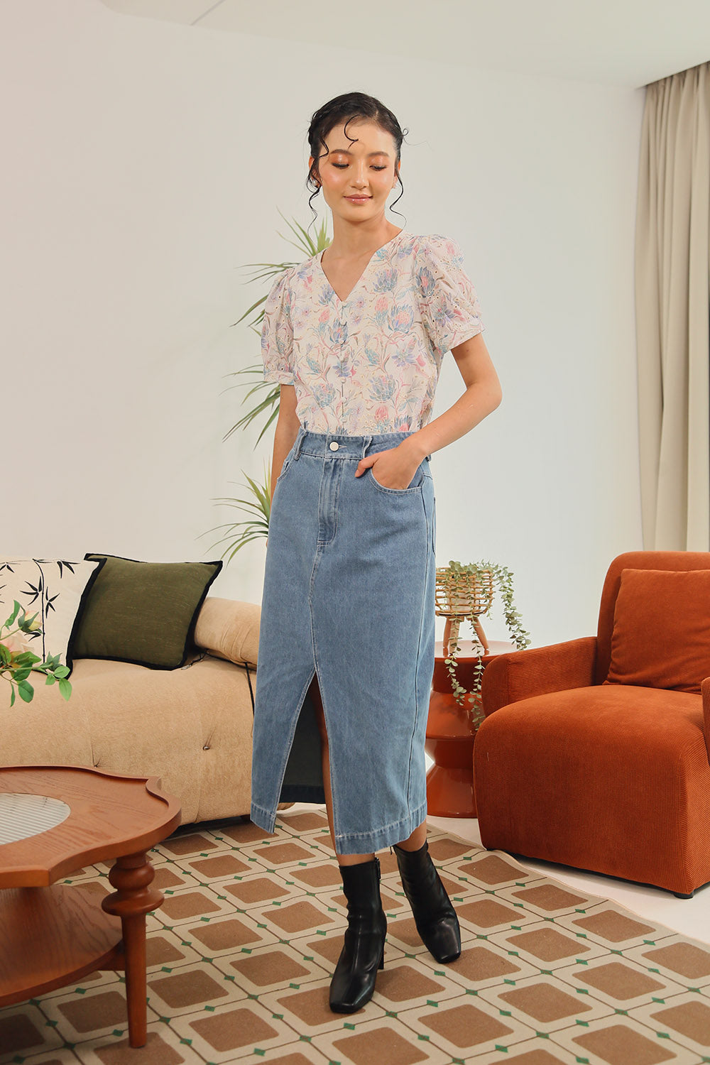 Rania Floral Blouson Top in Pastel Bloom