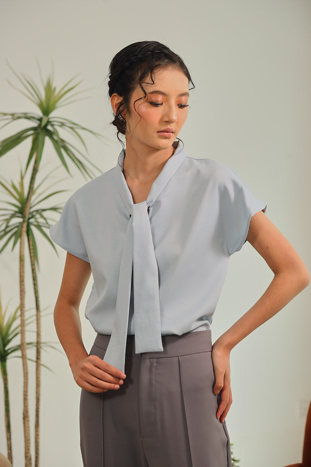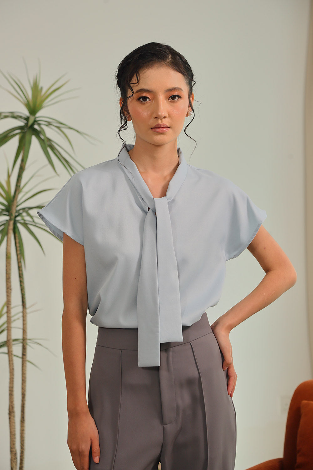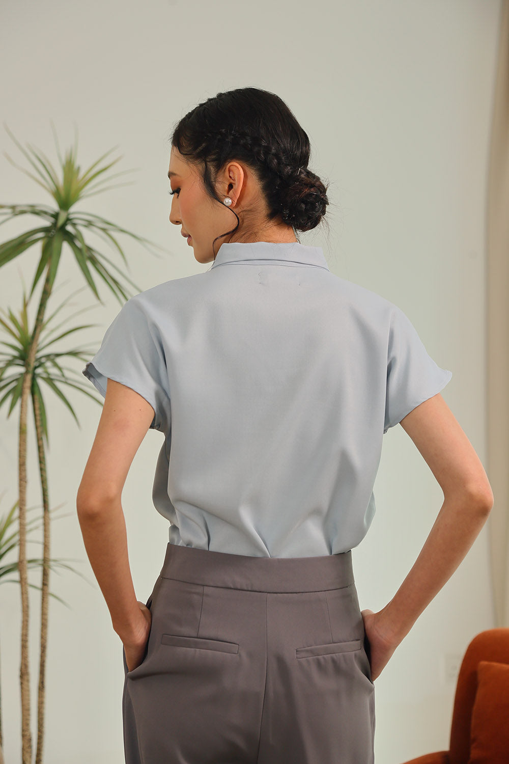 Amina Sleeveless Shirt in Blue Gingham Pop