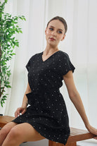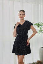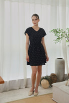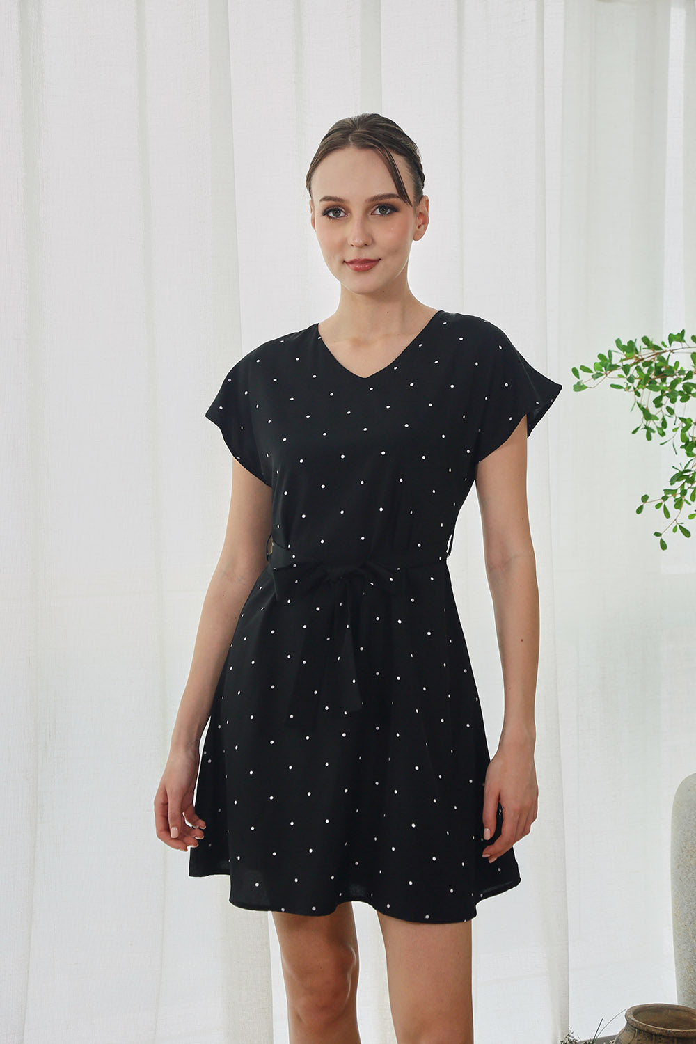 Effortlessly sweet and timeless, the Evelina Polka Dot Belted Dress is your go-to piece for everyday elegance. Designed in a black with charming white polka dots, it features a flattering V-neckline, soft flutter sleeves, and a detachable waist tie for a cinched silhouette.