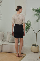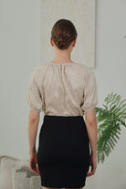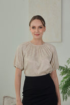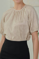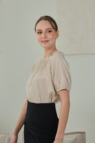 Melina Jacquard Puff Sleeve Top in Soft Sand