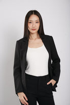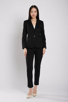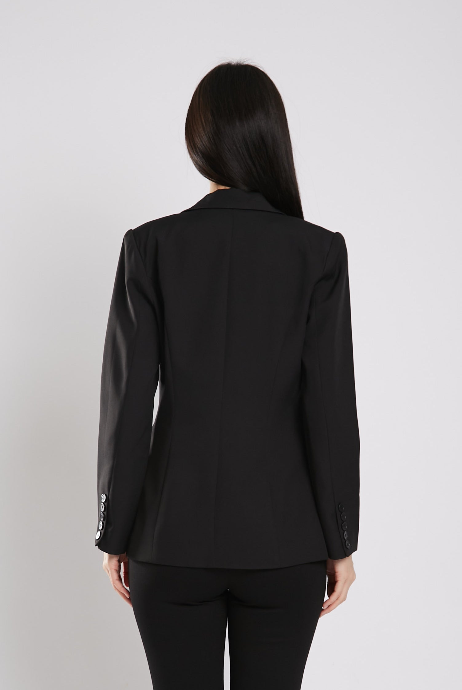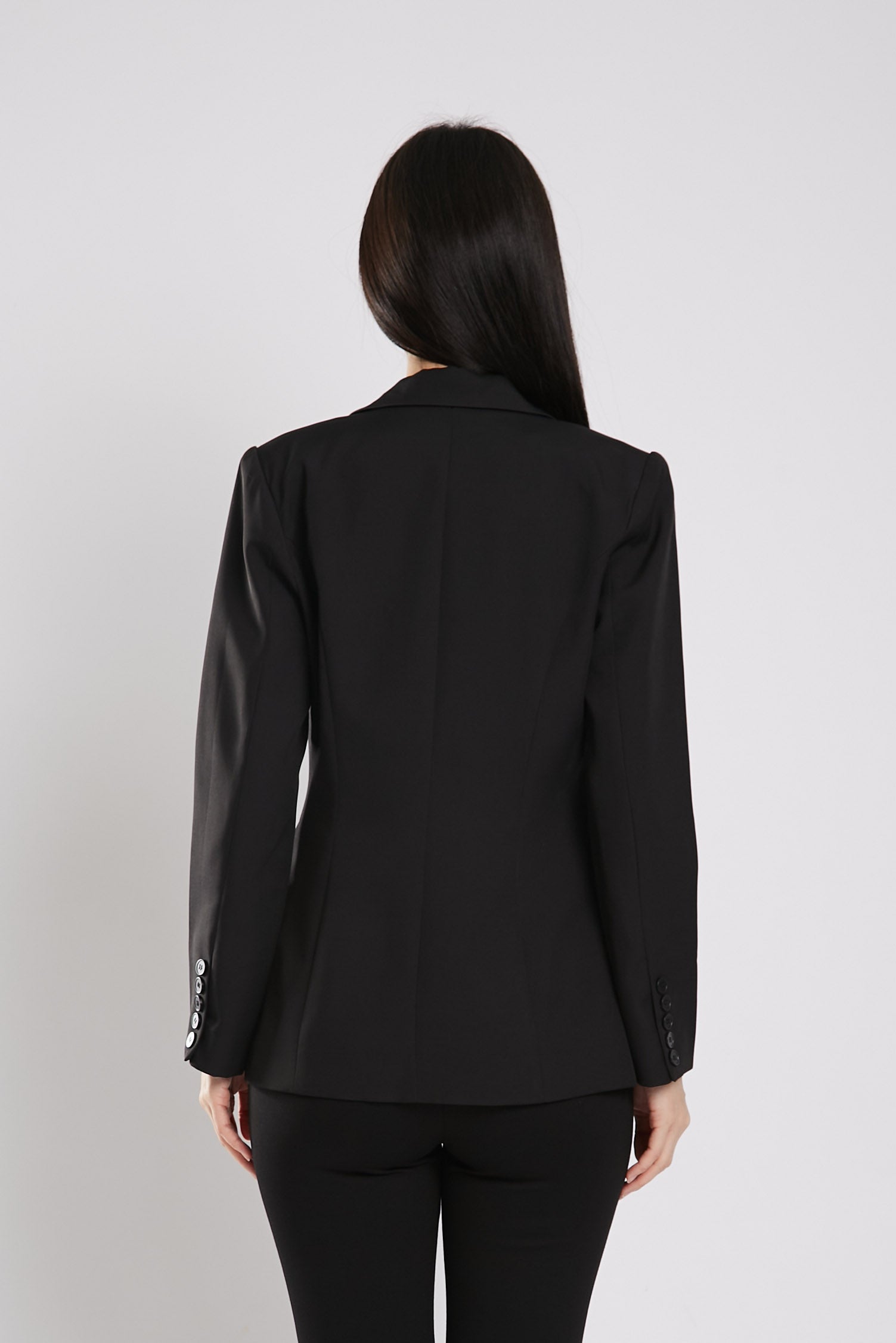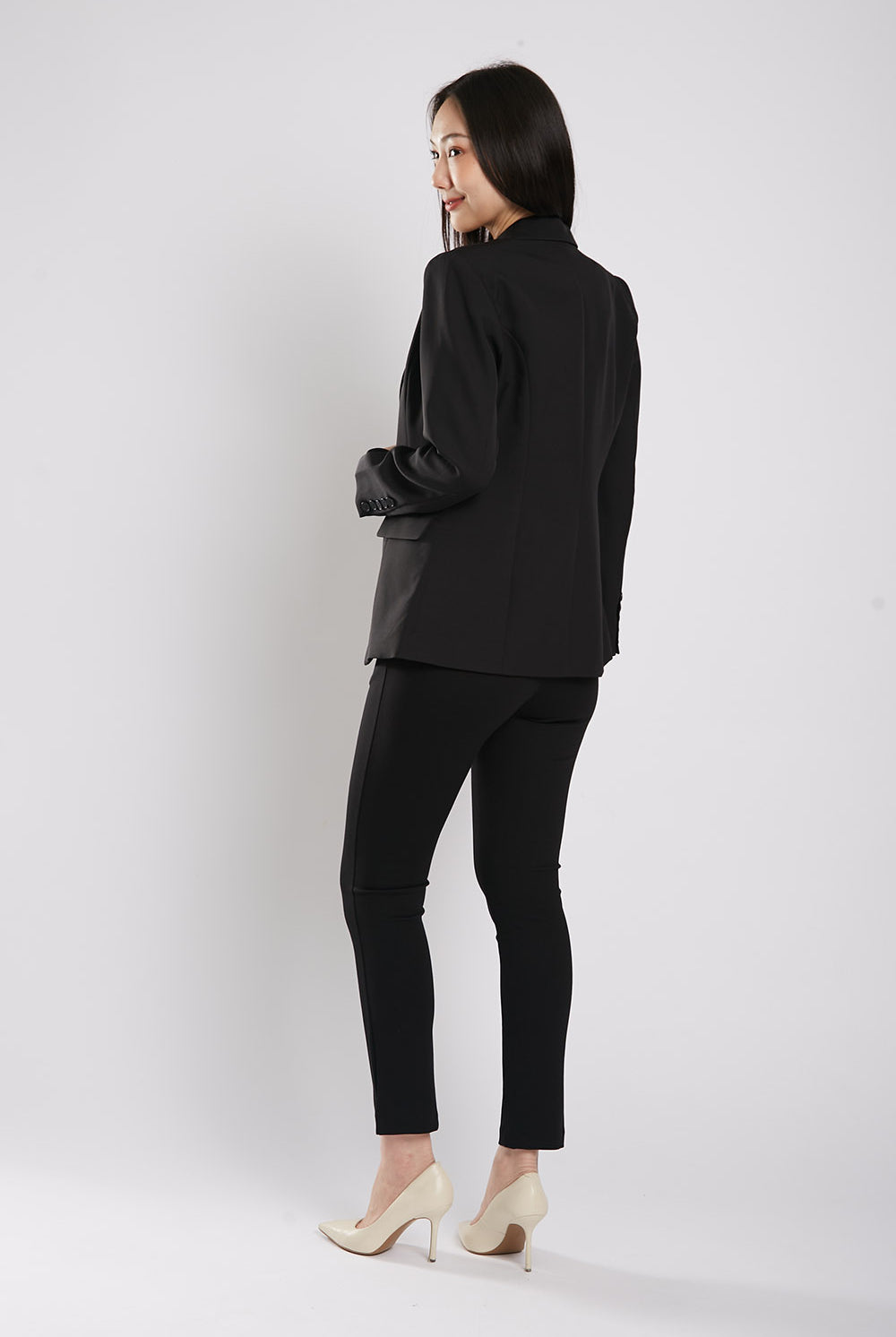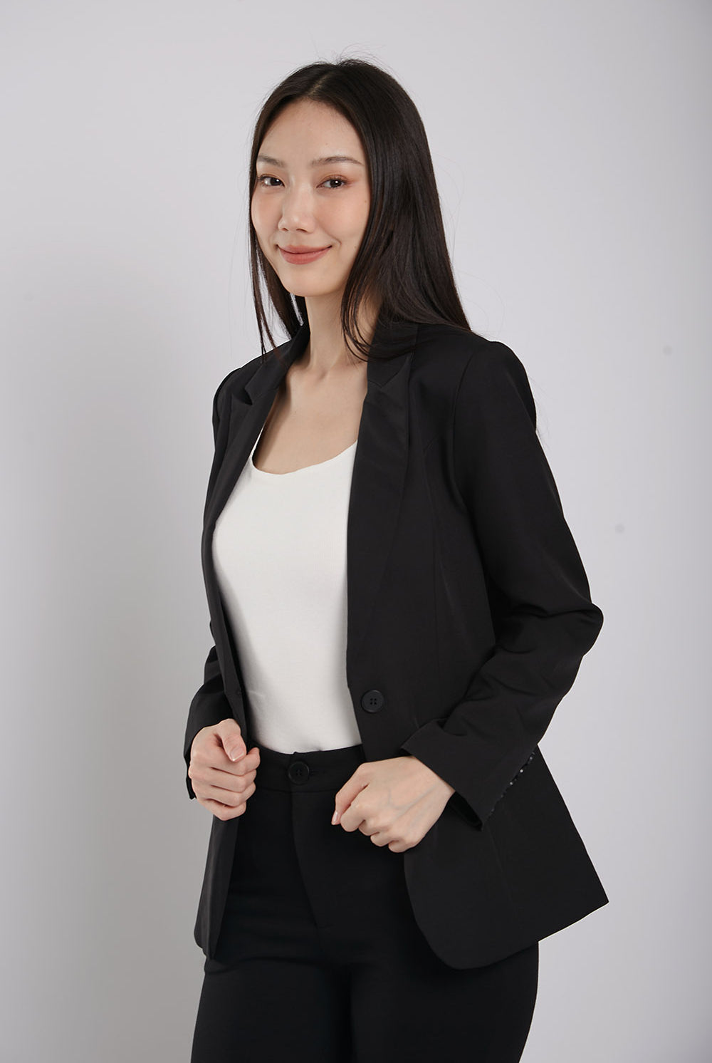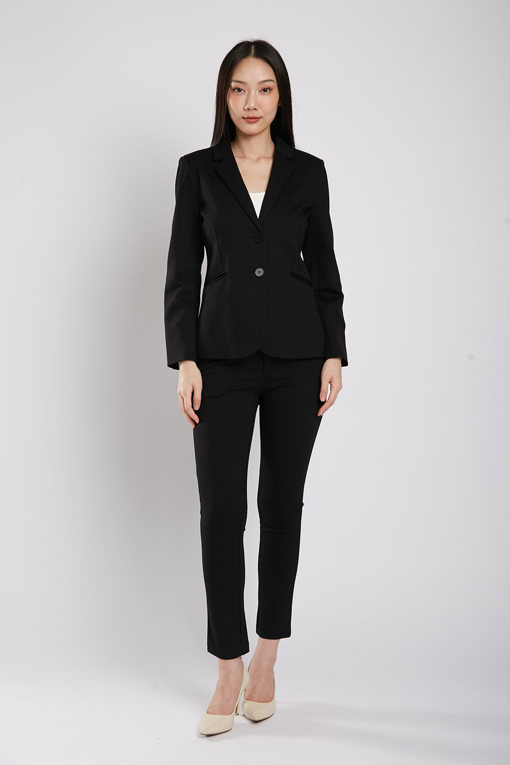 Introducing Albertha Ultra Stretchable Blazer in Black. Made with premium weight ultra stretchable fabric, this slim-cut blazer offers maximum comfort and style. Featuring front functional pockets and a two-button closure, it's the perfect addition to any professional wardrobe.