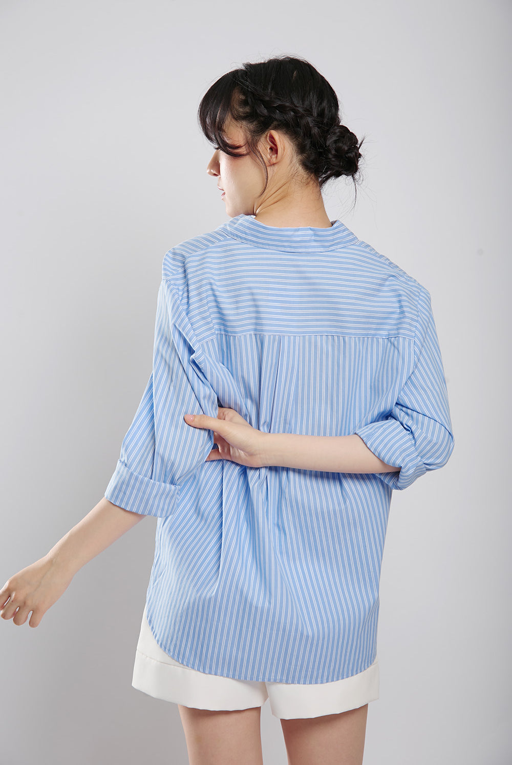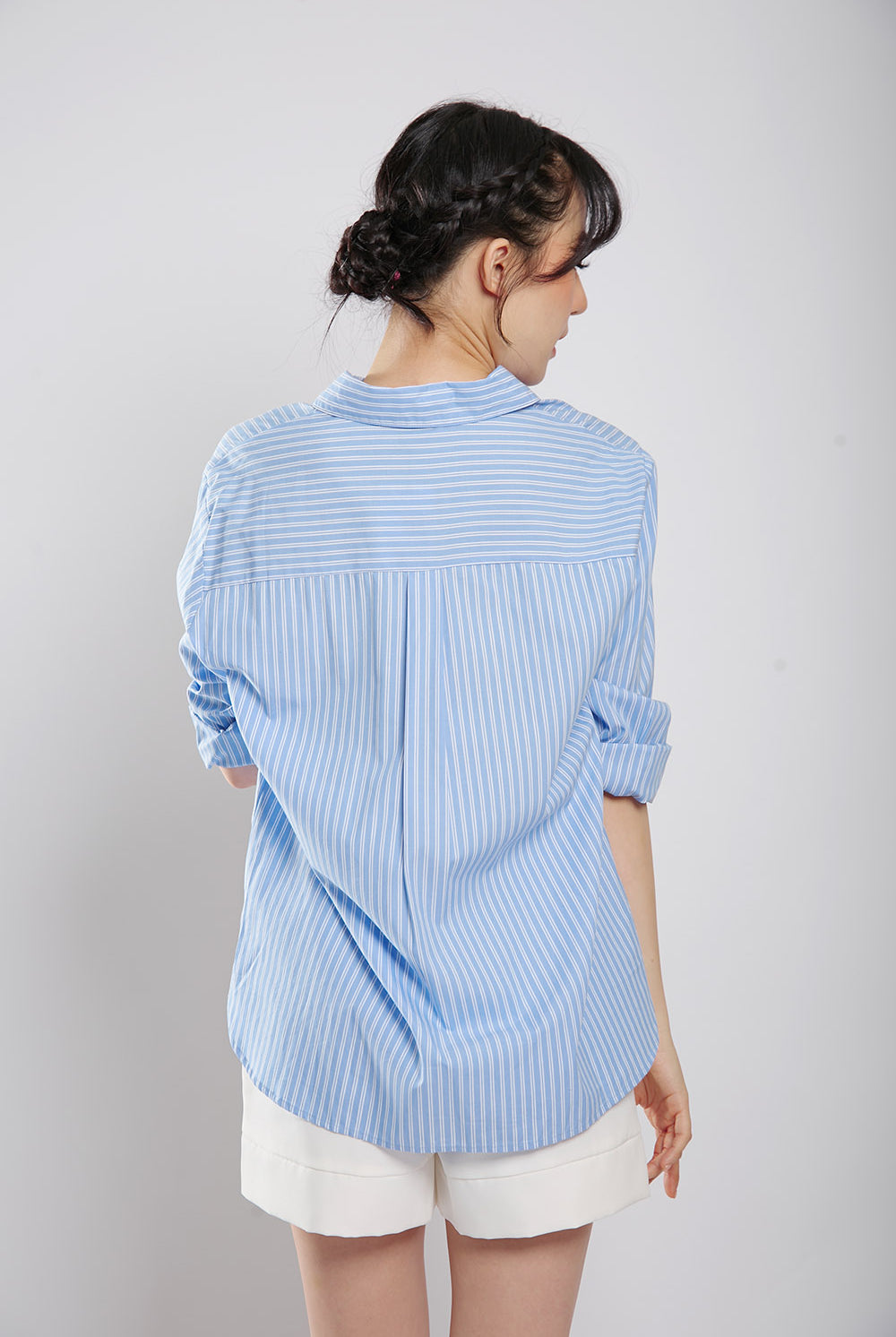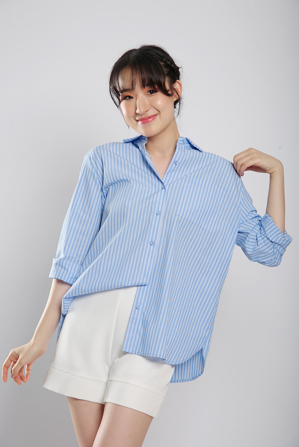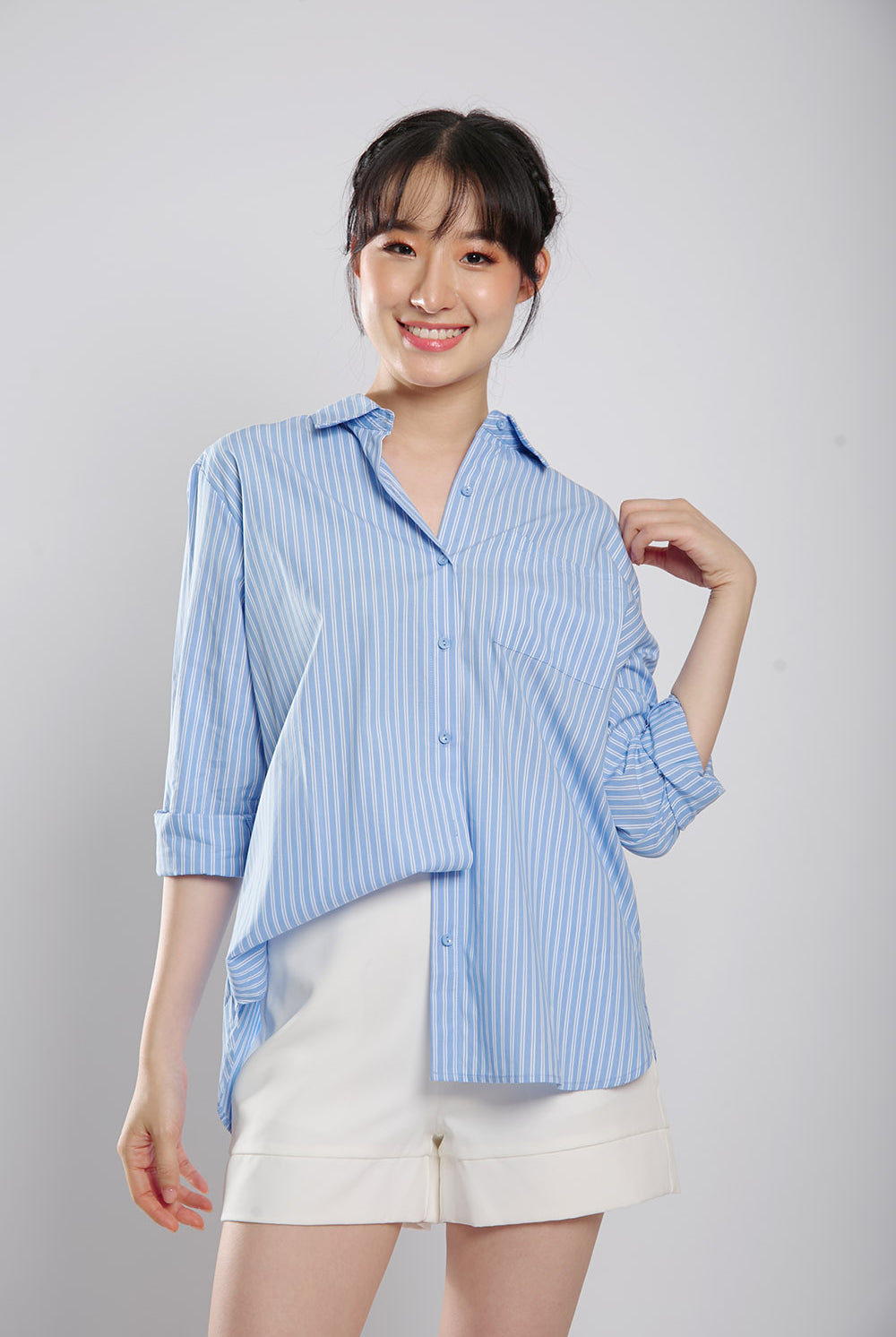 The Amilea Striped Shirt is a wardrobe essential designed for modern versatility. Crafted from 100% breathable cotton, it features a soft textured stripe pattern that brings both comfort and understated elegance.