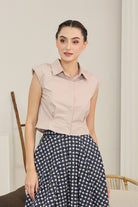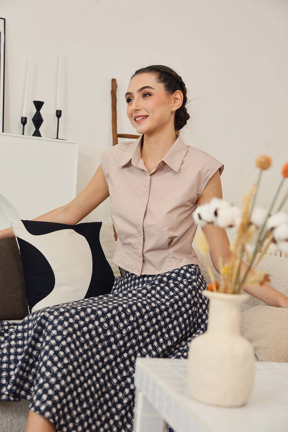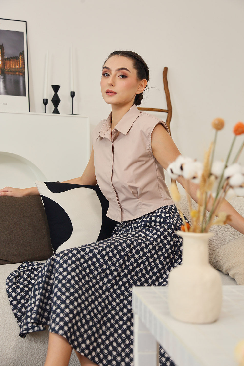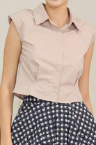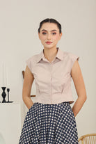 Effortlessly sleek and versatile, the Amira Sleeveless Shirt is a modern take on classic tailoring. Crafted from a comfortable cotton-blend fabric, it features a sharp collared neckline, a clean concealed button placket, and structured cap sleeves that add a polished touch. The cropped silhouette makes it perfect for pairing with high-waisted skirts or trousers, bringing balance to both casual and office-ready looks.