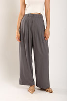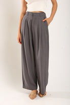 Effortlessly chic and designed for all-day comfort, the Claudette Relaxed Tailored Pants in Grey bring a touch of sophistication to your wardrobe. Crafted with precision, these pants feature a flattering high-waist silhouette with subtle pleats, giving you a relaxed fit that flows gracefully. Perfect for both office wear and weekend outings, they offer versatile styling options. Pair with a fitted blouse or a casual knit top to elevate your look. Embrace the blend of comfort and elegance with these timeless trousers, made for the modern woman.