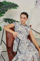 Dezza Midi Dress in Grey Scenic Prints