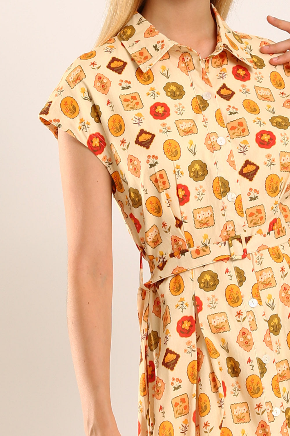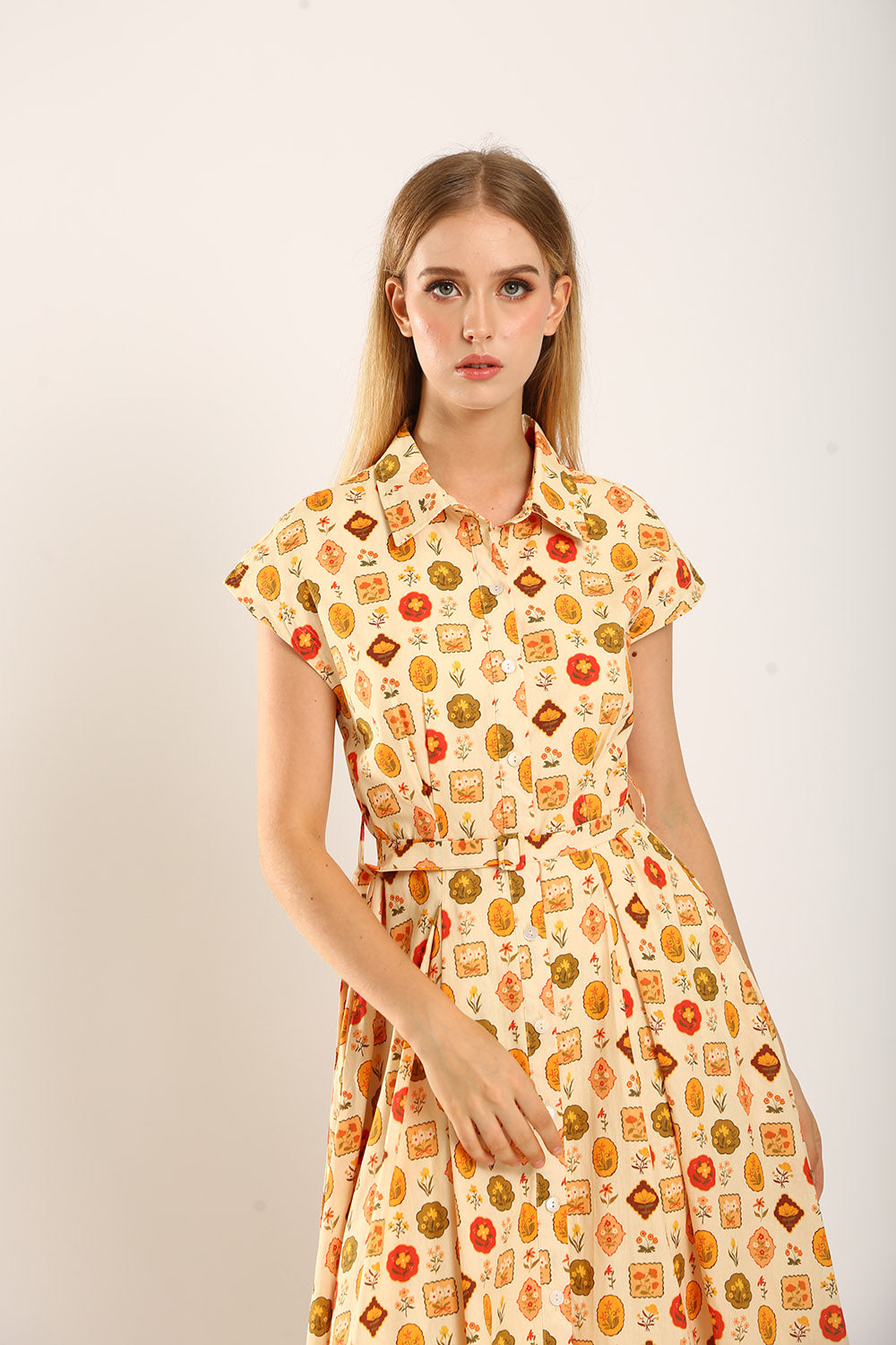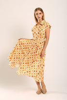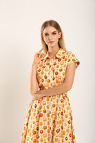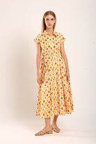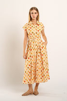 Embrace timeless elegance with the Dezza Dress, crafted from 100% premium cotton for unmatched comfort and breathability. Fully lined for ease of wear, this dress features a playful floral print in warm, earthy tones, making it the perfect choice for casual outings or semi-formal occasions.