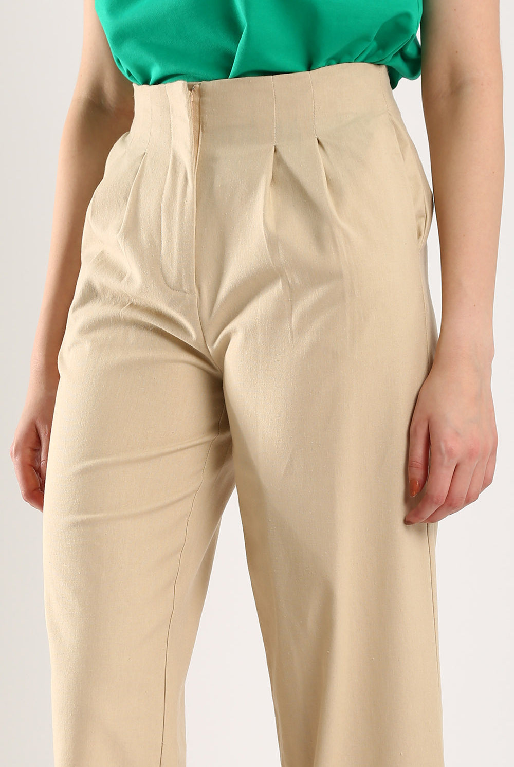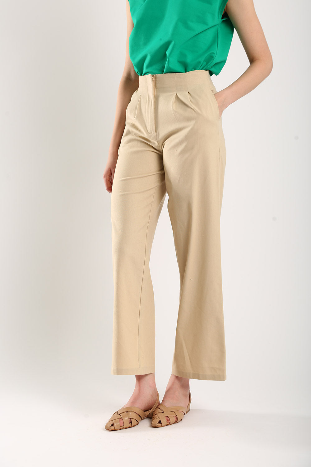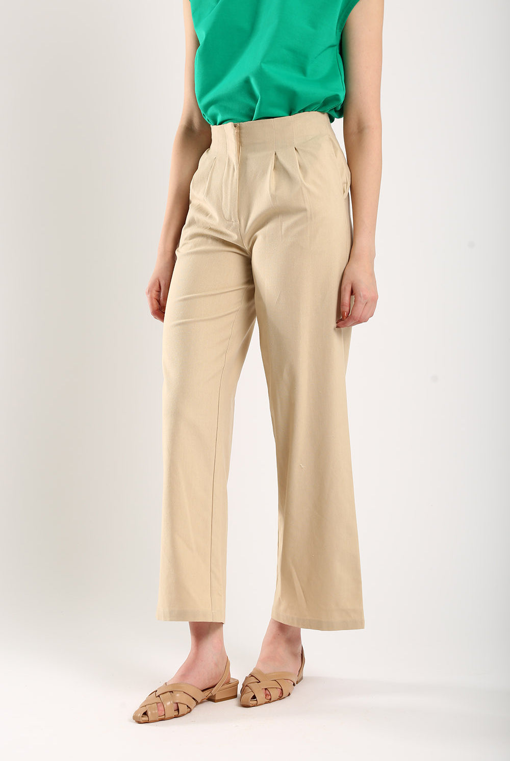 The Lisa Linen Wide Leg Trousers are the perfect blend of comfort and style. Made from a breathable linen blend, they are ideal for warm weather and everyday wear. Designed with a high-rise waist and tailored pleats, these trousers create a flattering and polished silhouette. The wide-leg cut ensures ease of movement while giving a relaxed and elegant look. With a concealed side zipper and functional side pockets, they offer both practicality and sophistication. Their neutral tone makes them versatile and easy to pair with your favorite tops, whether for work or casual outings.