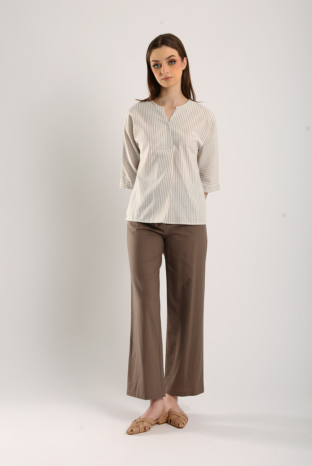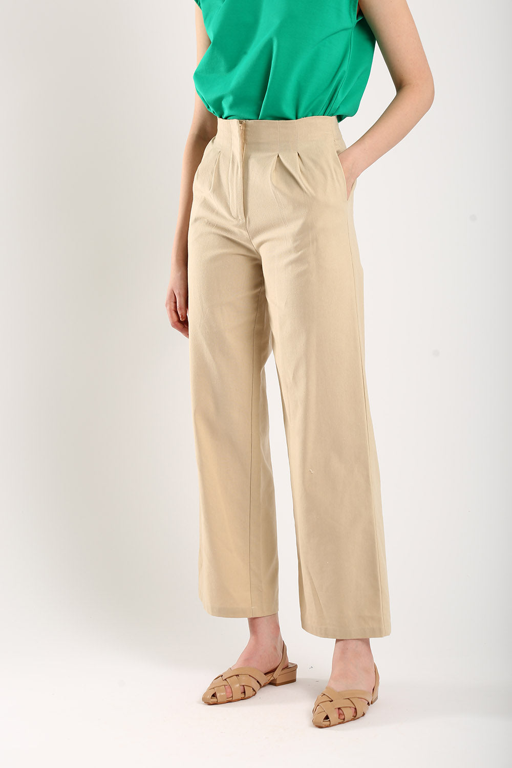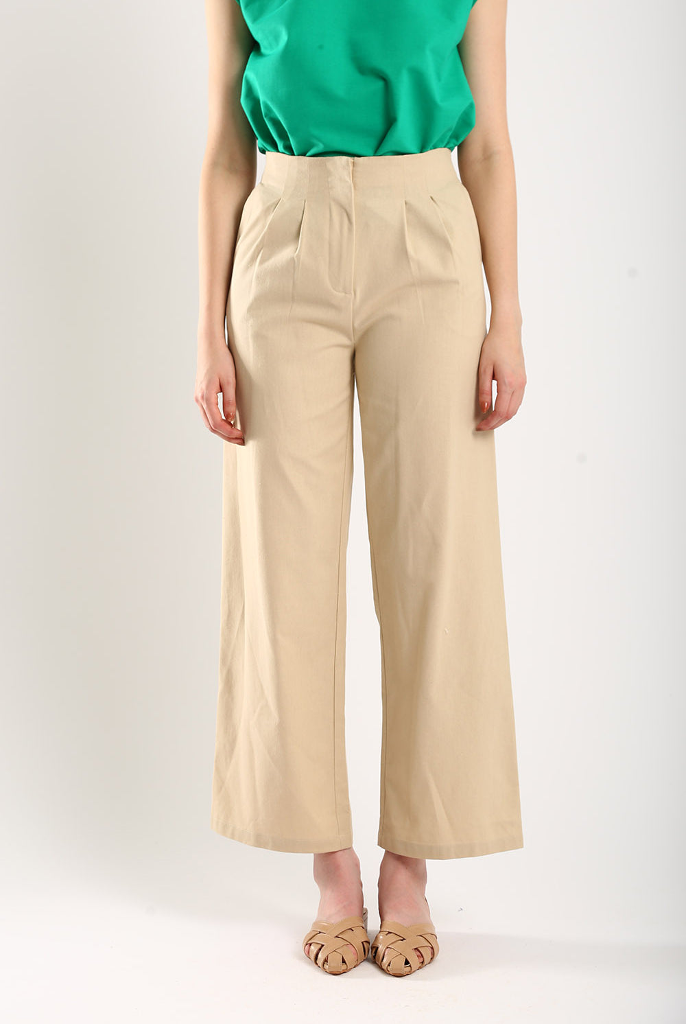 The Lisa Linen Wide Leg Trousers are the perfect blend of comfort and style. Made from a breathable linen blend, they are ideal for warm weather and everyday wear. Designed with a high-rise waist and tailored pleats, these trousers create a flattering and polished silhouette. The wide-leg cut ensures ease of movement while giving a relaxed and elegant look. With a concealed side zipper and functional side pockets, they offer both practicality and sophistication. Their neutral tone makes them versatile and easy to pair with your favorite tops, whether for work or casual outings.