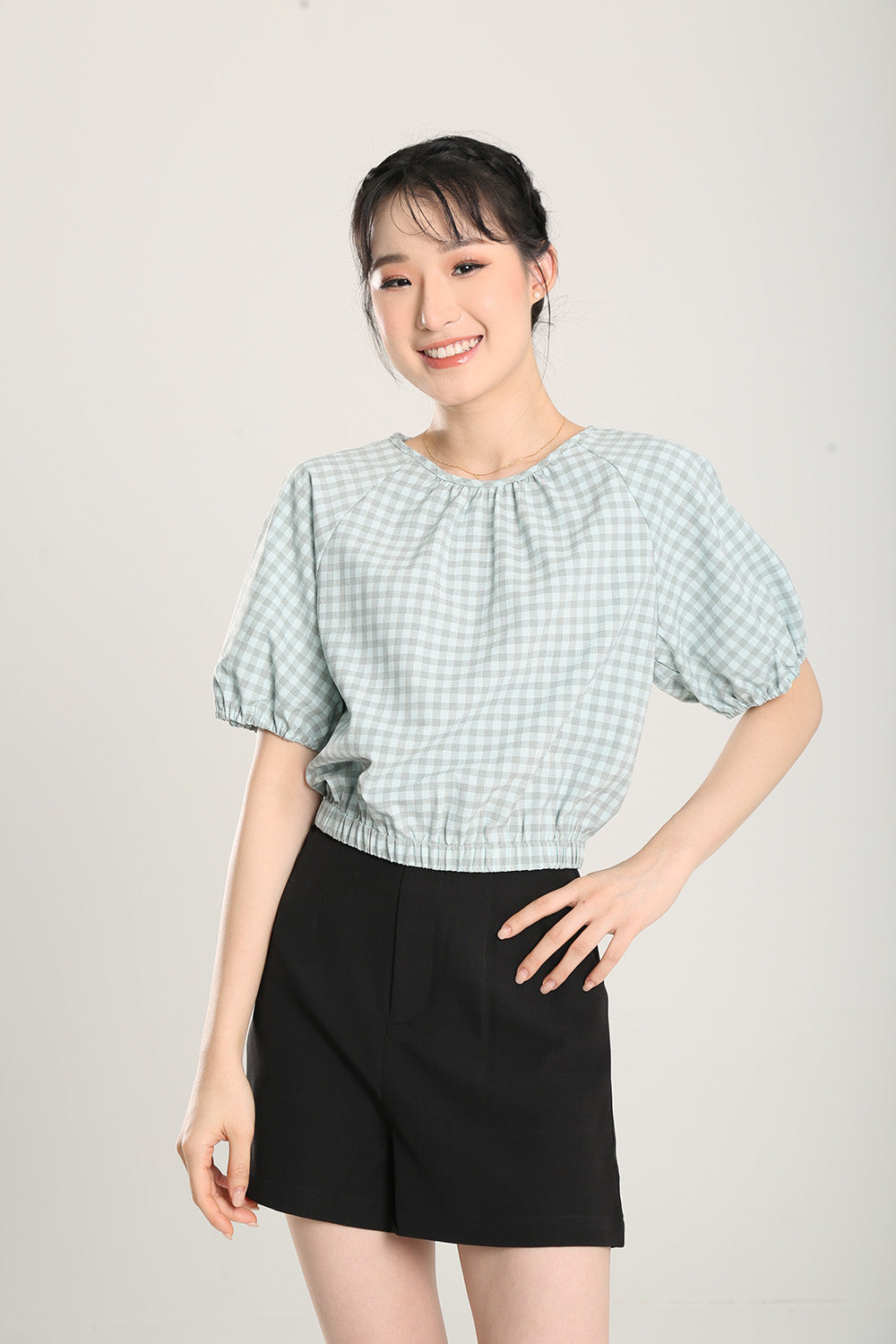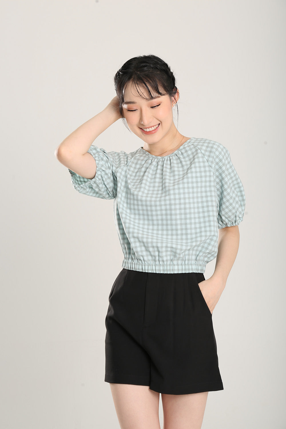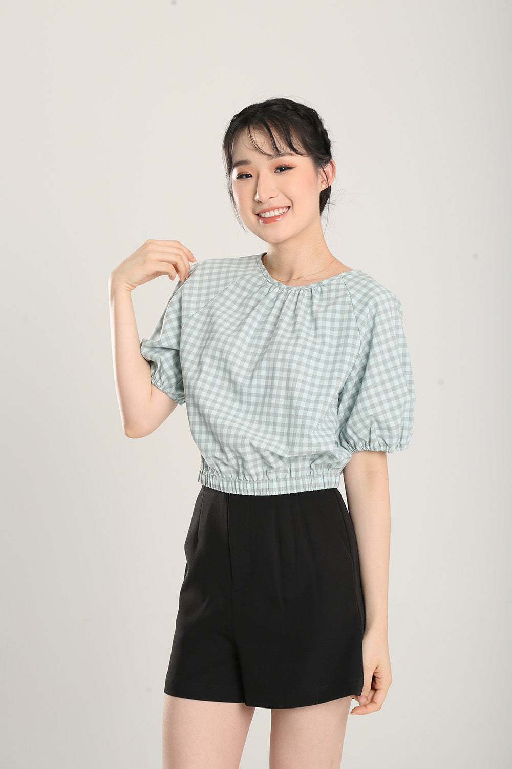 Rania Top in Sage Gingham