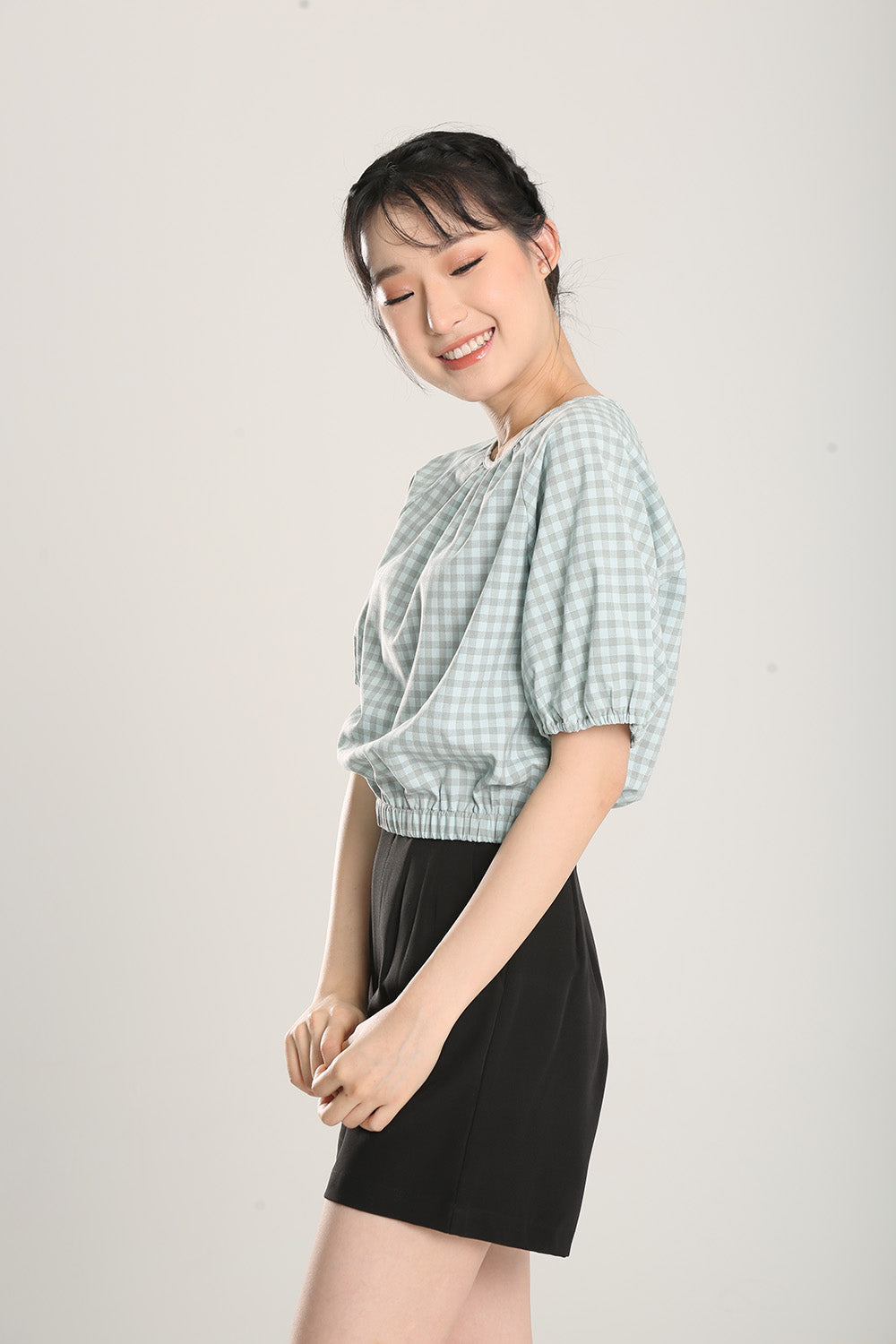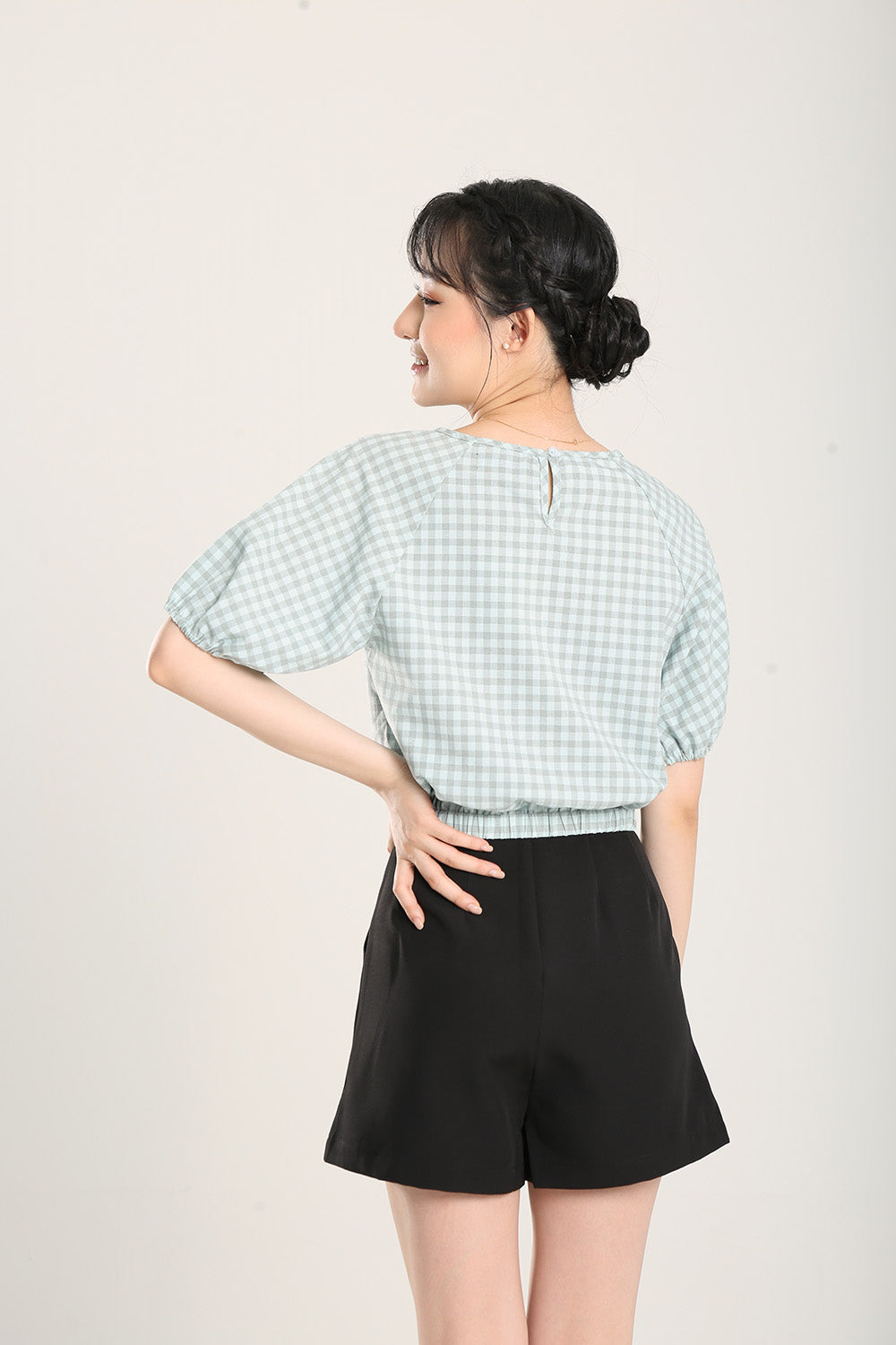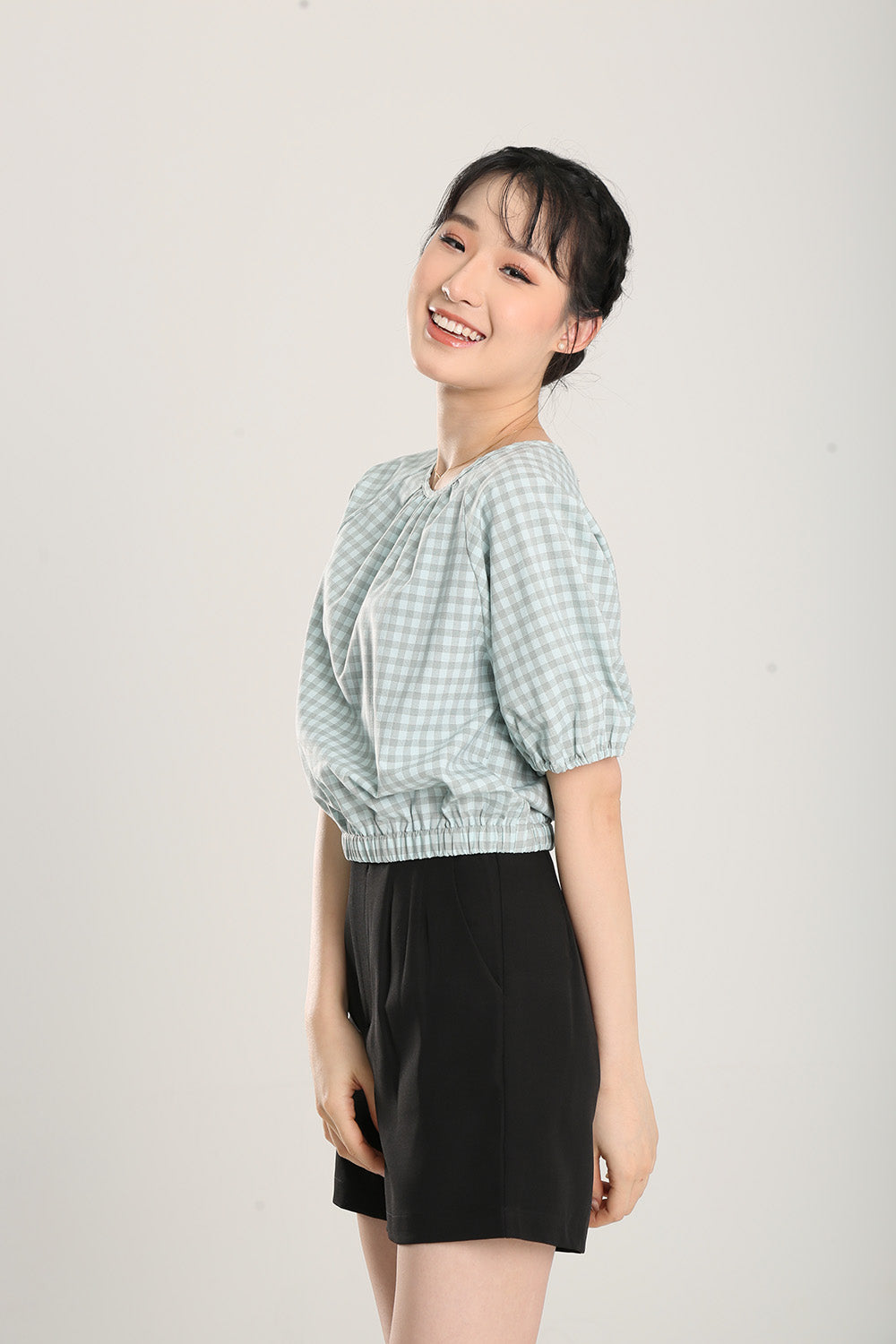 Rania Top in Sage Gingham