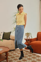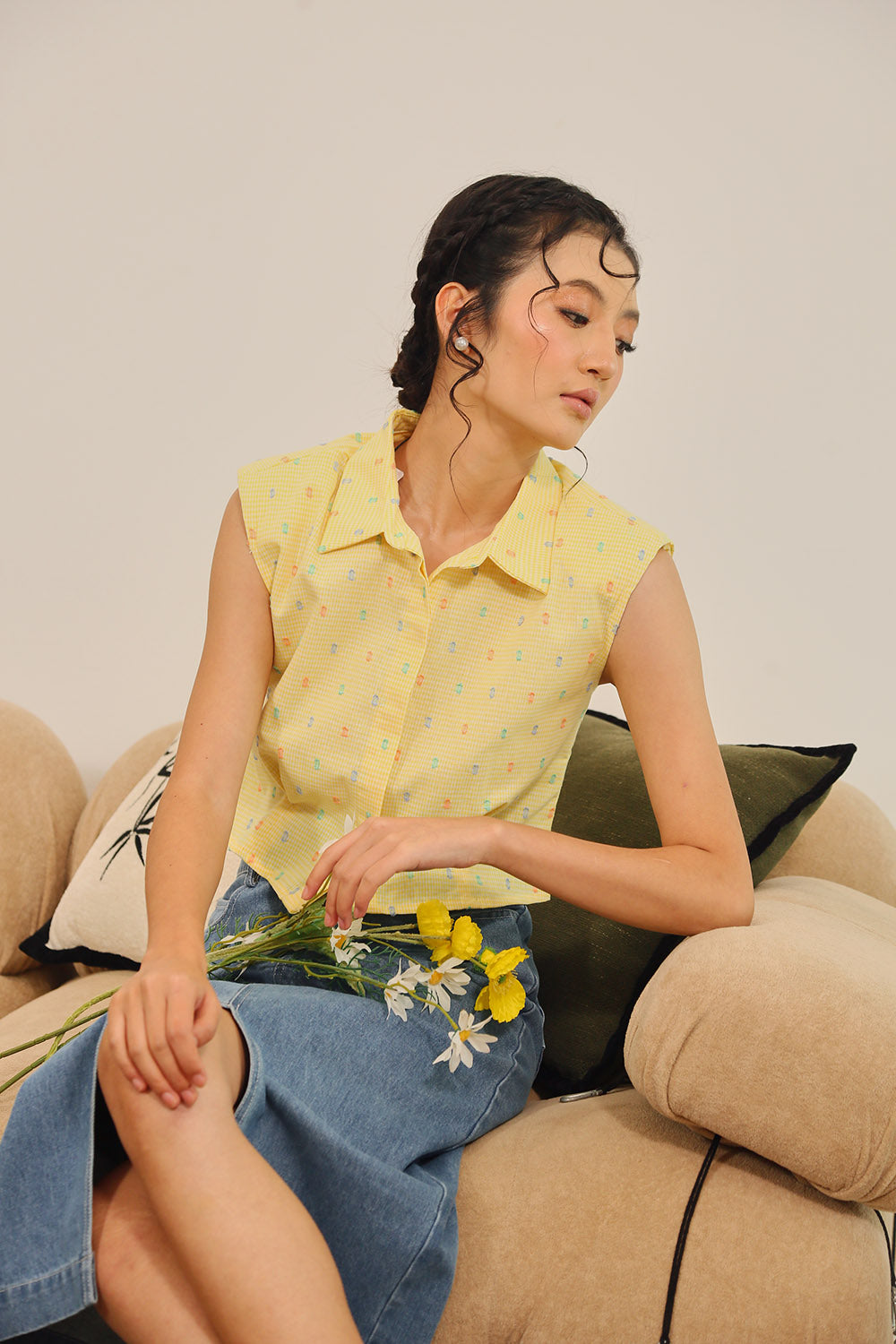 Amina Sleeveless Shirt in Yellow Gingham Top