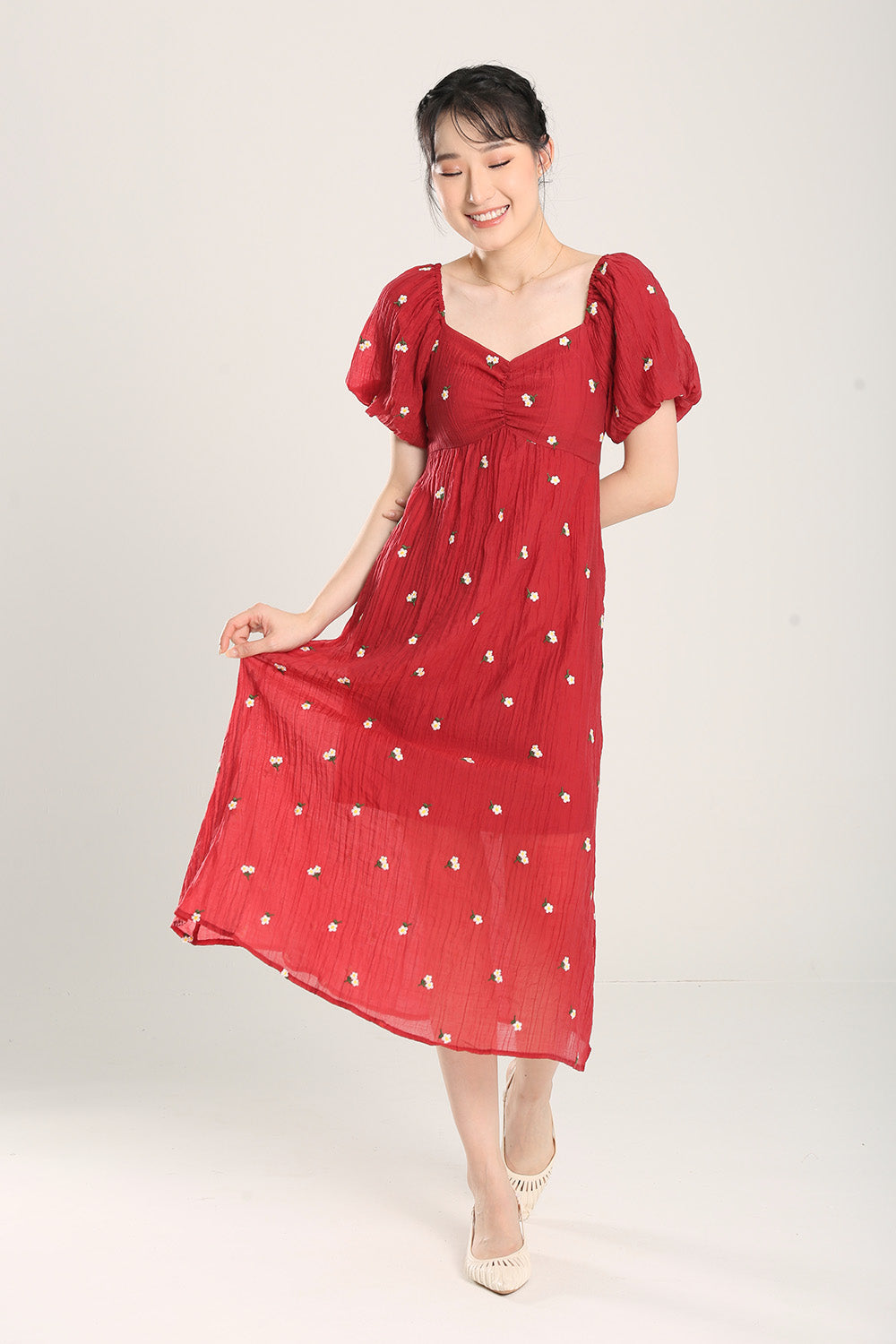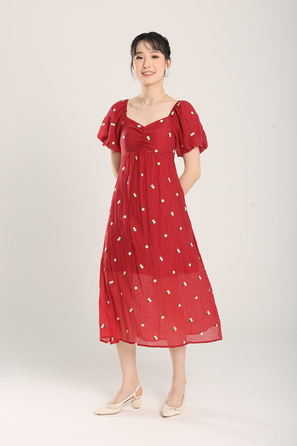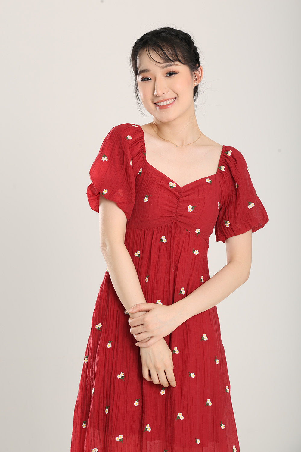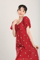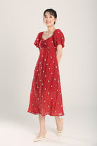 Sasha Floral Embroidered Dress in Red